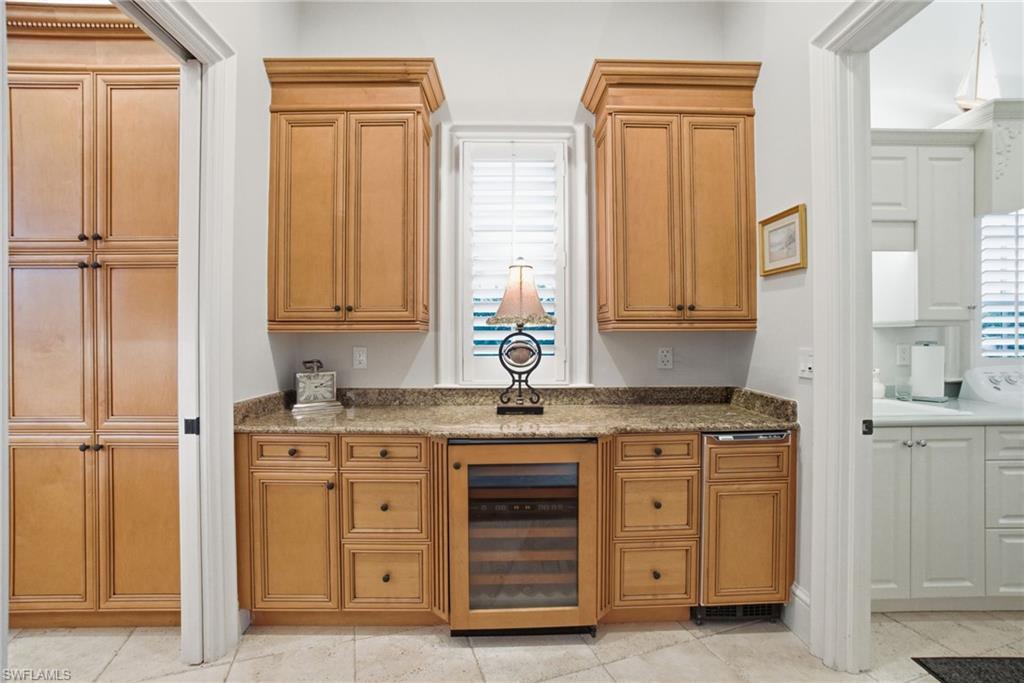 This stunning single-family home in the Estuary at Grey Oaks perfectly situated on the 15th hole offers the perfect blend of luxury, privacy, and entertaining space along with the premier Grey Oaks lifestyle. Featuring 3 bedrooms, 2 full baths, and 2 partial baths, the thoughtfully designed split floorplan ensures privacy for residents and guests alike, while expansive common areas u2014 both indoors and outdoors u2014 create an ideal flow for gatherings and everyday living. Step inside to find elegant wood flooring throughout, enhanced by sophisticated architectural details including ceiling beams and graceful arched doorways. A premium Sonos surround sound system elevates the entertainment experience in every room.The gourmet kitchen is a chefu2019s dream, centered around a massive peninsula perfect for casual meals and entertaining. High-end appliances include a built-in paneled Sub-Zero refrigerator, Professional-grade Viking 6-burner gas range with double oven, a new paneled Bosch dishwasher, a new GE Monogram microwave, a Dacor warming drawer, an additional prep sink, and a dedicated butleru2019s pantry complete with a wine fridge and extra ice maker.The luxurious primary suite boasts breathtaking wide golf course views, french doors opening directly to the pool, a spa-like en-suite bath with dual sinks, two generous walk-in closets, and an extra half bath convenient to the pool area. A private coffee bar with sink and beverage fridge adds everyday indulgence.The second bedroom suite offers similar luxury with dual sinks, a separate jacuzzi soaker tub, private water closet with bidet, walk-in closet, its own coffee bar with sink and beverage fridge, and direct private access to the garage. The third bedroom that the current owner has configured as a stately library features direct pool access and a cozy gas fireplace for added charm.Outside, the recently renovated caged 49-foot lap pool and spa is the centerpiece of resort-style living, complete with new pool lighting, gas pool heater, gas fireplace, and a fabulous outdoor kitchen equipped with grill, prep sink, and refrigerator u2014 perfect for al fresco dining with panoramic golf course views.Additional highlights include impact resistant windows and doors, a newer 2019 roof, custom landscape lighting, and a spacious garage with two full bays plus a dedicated golf cart space, epoxy flooring, and custom storage.This exceptional residence combines timeless elegance, modern upgrades, and prime location u2014 a rare opportunity in one of Naplesu2019 most sought-after communities. Grey Oaks has amazing amenities, including a 30,000 sq. ft. Wellness Center and Spa, resort pool, three golf courses, two clubhouses, three restaurants, a new pickleball center, bocce courts, tennis facilities, and a vibrant social scene. Ideally located just minutes from Naplesu2019 pristine beaches, downtown, shopping, and dining, this home offers the perfect balance of luxury, comfort, and convenience.