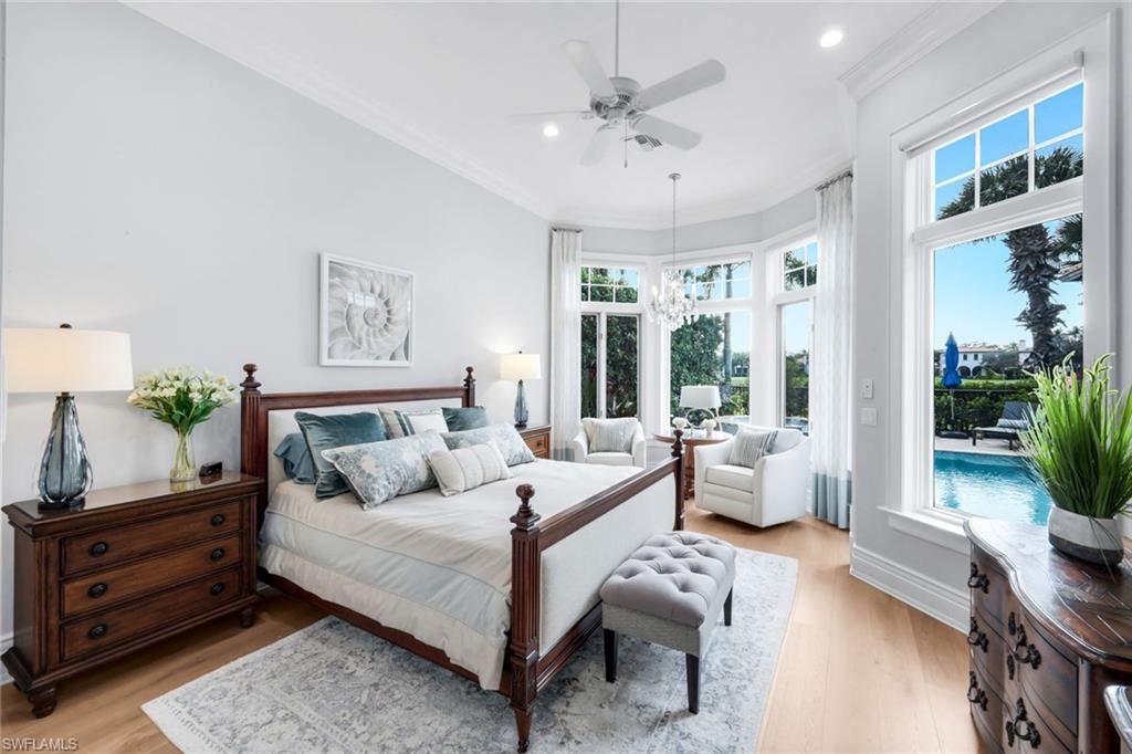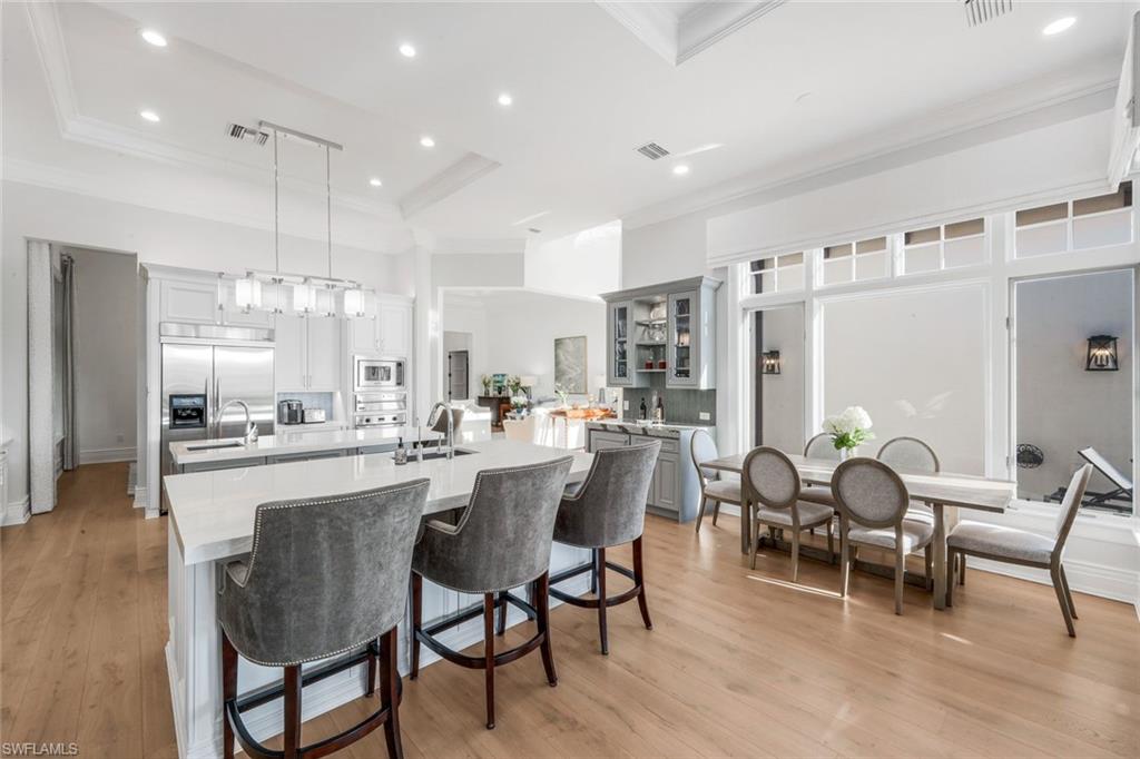 Located within the distinguished Estuary enclave of Grey Oaks Country Club, this exceptionalMarsh Wren Lane residence offers 3,460 square feet under air and 5,170 total square feet ofrefined living space. Built in 2007, the home features Three Bedrooms plus a Den, Three fullBaths, and two half Baths, thoughtfully designed for both comfort and entertaining. This property includes a two car garage as well as a single car garage -which makes it unique! Recent enhancements Elevate the interior, including brand new wide-plank white oak flooring throughout, a complete interior repaint, a new Lutron system which controls new LED Can lights and decorative light fixtures as well as landscape lighting. The redesigned kitchen showcases an updated configuration with a new bar area, creating a seamless flow for gatherings. The primary suitehas been enhanced with a fully renovated spa-inspired bath, complemented by abundantcustom storage and closets throughout the home. The outdoor area includes a new grill and an outdoor fireplace with plenty of room to entertain and enjoy the magnificent Sunsets! Additional upgrades include a Whole-house generator, new roll-down screens, hurricane shutters, new Kinetco Reverse Osmosis system, new tankless water heater, an Updated ADT Security system and mini-split air conditioning systems in both garages. Set within one of Naplesu2019 most prestigious private golf communities, residents enjoy world-class amenities, championship golf, dining, fitness, and an unparalleled lifestyle in a secure, beautifully maintained setting. This is truly a special property!