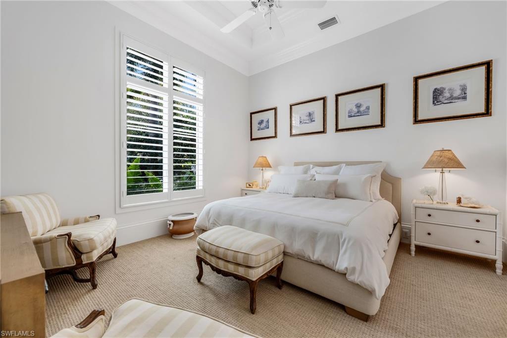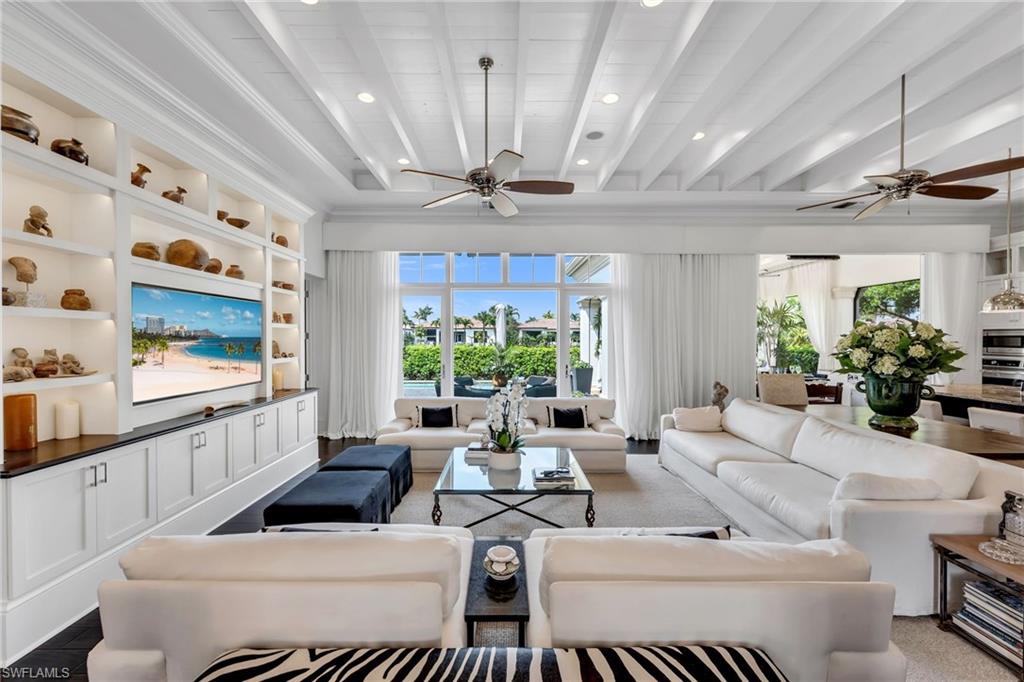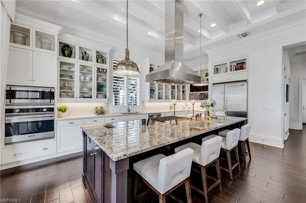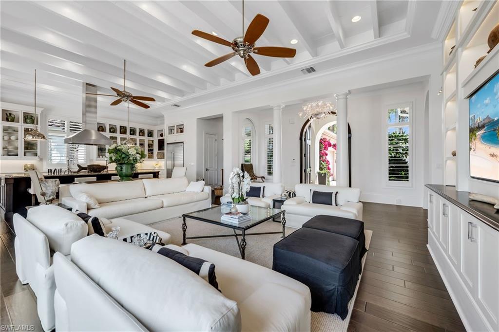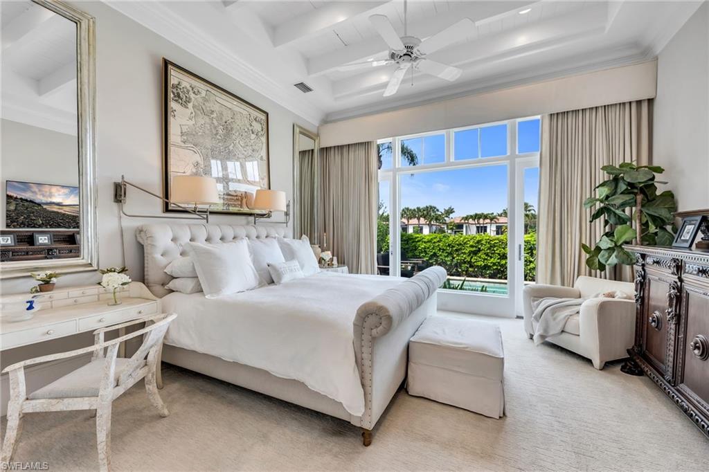 Thoughtfully designed by Stofft Cooney Architects and masterfully built by Diamond Custom Homes, this exceptional residence in Torino at Grey Oaks reflects a refined, open-concept lifestyle where sophisticated design meets effortless entertaining. Upon entry, the great room floor plan reveals a sense of volume and flow, enhanced by rich espresso wood flooring, bespoke architectural detailing, and abundant natural light through impact windows and doors.The main living spaces evoke the ambiance of a boutique European retreat, with the great room and dining area opening seamlessly to the outdoors through expansive sliding glass doors. Custom built-ins, distinctive ceiling details, espresso wood flooring, and softly draped, full-height white curtain panels lining the walls create a layered, refined aesthetic, while curated finishes offer warmth and understated elegance.At the heart of the home, the chefu2019s kitchen is both beautiful and highly functional, featuring custom glass-front cabinetry, an expansive island for preparation and gathering, and thoughtful details for the culinary enthusiast, including integrated knife storage and a discreet countertop chute. A suite of high-end appliances and a well-appointed pantry complete the space.The primary suite offers a serene and private retreat, enhanced by custom architectural detailing, French doors, and generous dual walk-in closets. The spa-inspired bath is finished in exquisite marble, with dual vanities, a marble-clad shower with mosaic inlays, and refined designer touches.Two additional guest suites provide comfort and flexibility, each with well-appointed baths, while one may also serve as a stylish office or den. Plantation shutters, custom cabinetry, wood flooring, bespoke built-ins, and designer wall coverings contribute to the homeu2019s cohesive character.Outdoor living is equally compelling. The expansive screened lanai is designed as a natural extension of the interior, complete with automated screens, motorized awnings, and a beautifully appointed outdoor kitchen. Draped in soft white curtains, the space offers a relaxed, resort-like setting for al fresco dining and entertaining.Modern conveniences include a whole-house generator, tankless gas water heater, automated sunshades, and updated systems. Located within Torino, a natural gas community, the residence also offers a two-car garage.Grey Oaks is one of Naplesu2019 most prestigious private golf communities, offering three championship golf courses, two clubhouses, and four dining venues. Residents enjoy a 30,000-square-foot Wellness Center with spa services, tennis, pickleball, bocce, and a vibrant social calendar. Ideally located near downtown Naples, the Gulfu2019s white-sand beaches, and exceptional shopping and dining, Grey Oaks delivers a lifestyle defined by ease, connection, and understated luxury. This is a one of a kind Torino residence...welcome home!