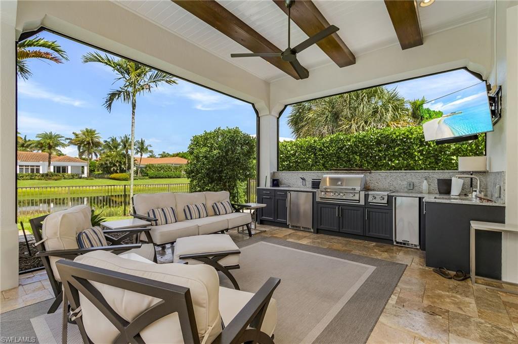 Meticulously maintained and perfectly positioned on a premium water lot with a picture-perfect lake view, this exceptional Bregante model residence is located within the prestigious, gated community of Grey Oaks. Flawless and elegant best describe this traditional villa home with a modern flair, offering expansive, unobstructed water views that create a serene and private backdrop for everyday living.Thoughtfully renovated, the home features polished travertine flooring throughout the main living areas and a beautifully redesigned chefu2019s kitchen sure to impress. Appointments include Sub-Zero and Wolf appliances, granite counters and backsplash, soft-close cabinetry, double ovens, a natural gas cooktop, two refrigerated drawers, a wine cooler, and an oversized island ideal for entertaining. The spacious family room is accented by a beamed ceiling with sliding glass doors opening seamlessly to the outdoor living area.The primary suite is a private retreat overlooking the lake, highlighted by bespoke walk-in closets and a spa-inspired bathroom with marble flooring, a spacious walk-in shower, premium fixtures, and glass enclosures. Additional features include a private office with wood flooring and dedicated fiber-optic connectivity, upgraded guest bedrooms and baths, new carpet and wood flooring, elegant dining room chandelier, fresh interior paint, updated washer and dryer, ceiling fans, and a climate-controlled, custom-finished two-car garage with epoxy flooring and space for a golf cart. A whole-house generator and automatic roll-down hurricane shutters provide added peace of mind.Outdoor living is exceptional, with a custom outdoor kitchen, heated pool with fountain jets, spa, and a picture-window screen enclosure designed to fully capture the magnificent lake views. Professionally designed landscaping further enhances the homeu2019s curb appeal and outdoor experience.A full golf membership is available, granting access to Grey Oaksu2019 championship golf courses and its renowned Traditions Club amenities, including resort-style pools, upscale dining, fitness and wellness facilities, tennis, pickleball, and a vibrant social lifestyle. Ideally located just minutes from downtown Naples, beaches, shopping, dining, and cultural attractions, this residence represents a rare opportunity to own a premium water-lot home in one of Naplesu2019 most sought-after communities.