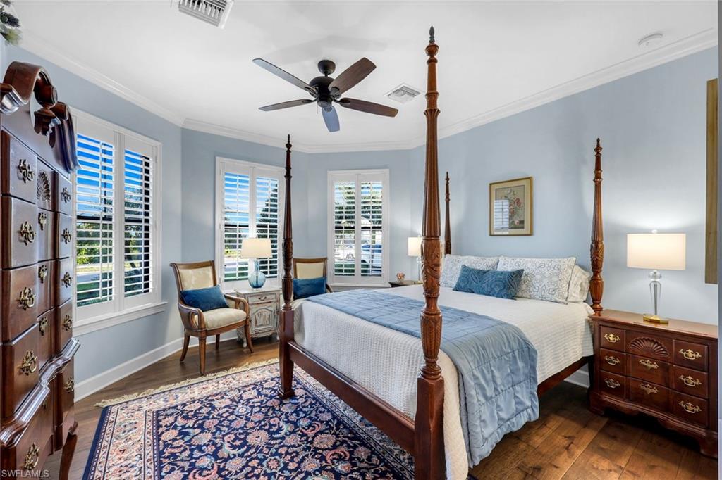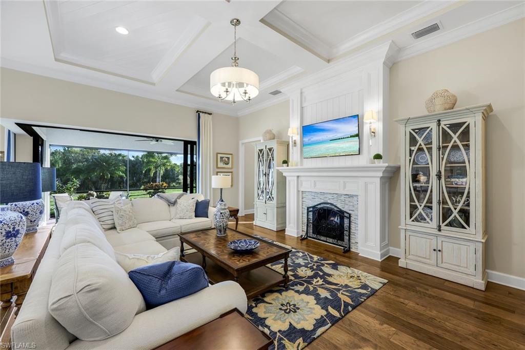 Stunning Pinnacle Model with Exceptional Upgrades ThroughoutDiscover refined living in this beautifully appointed Pinnacle model, offering 3 bedrooms + den, 3 baths, and an oversized 3-car garage extended by 4 feet with an epoxy floor. Designed for both elegance and comfort, this home features an open-concept floor plan enriched with premium finishes at every turn.Step inside to find tray ceilings, crown molding, custom window treatments, and plantation shutters that elevate each space. Gorgeous wood flooring flows throughout the main living areas and bedrooms, with tile in the baths and laundry room. The den/home office showcases French doors and wood inlay ceiling details, which continue into the great room and lanai for a cohesive, upscale design. A beautiful fireplace adds warmth and ambiance, creating a welcoming focal point in the main living area.The gourmet kitchen is a true showpiece, boasting quartz countertops, upgraded KitchenAid appliances, and a wine baru2014ideal for both everyday living and effortless entertaining. Zero-corner sliders open wide to the screened lanai and extended paver patio, offering seamless indoor-outdoor living perfect for gatherings or quiet relaxation. There is plenty of room to add your own custom pool if desired.Retreat to the serene primary suite, highlighted by a shiplap accent wall that adds charm and character to the space. The suite is complemented by a spacious, beautifully designed bathroom, offering the perfect blend of comfort and luxury.Additional features include impact windows and doors as well as a whole house generator for year-round peace of mind.Located within a highly amenitized community, residents enjoy an exceptional lifestyle with tennis, pickleball, bocce, and a vibrant food and beverage program, including a restaurant and outdoor bar. A fabulous resort-style pool anchors the social hub of the community. Every homeowner is a social member, with the added benefit of off-season golf access or the option to purchase a full golf membership.This home combines thoughtful upgrades, timeless style, and an extraordinary community lifestyleu2014crafted to impress even the most discerning buyer.