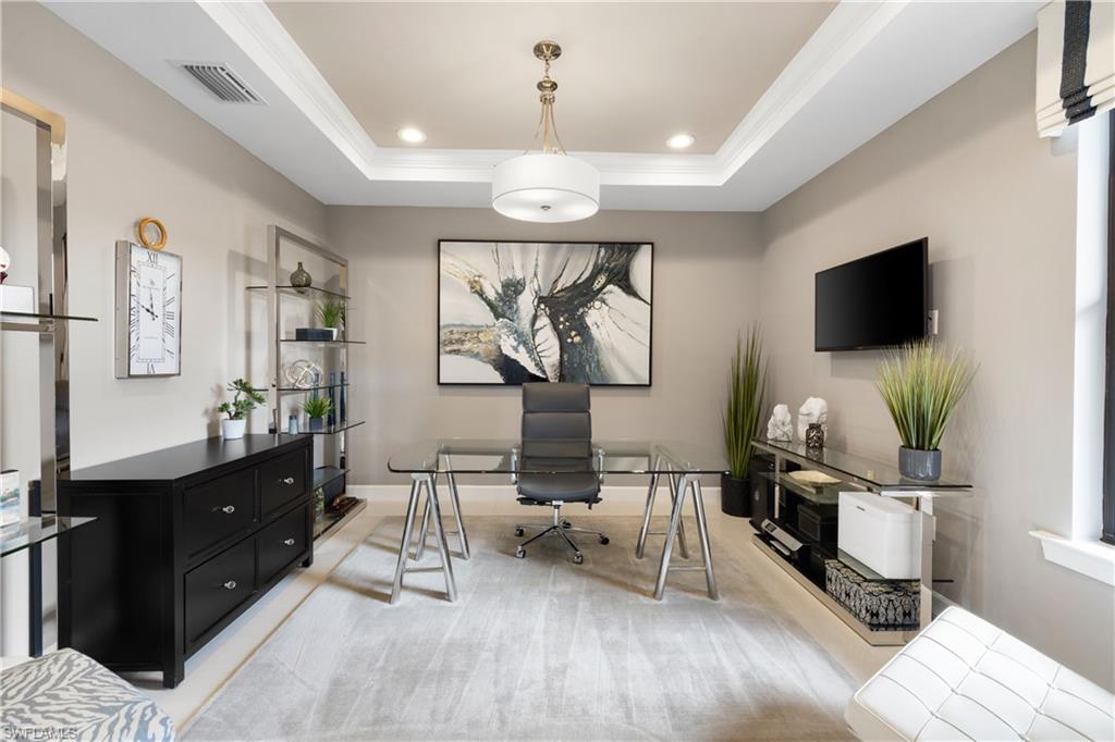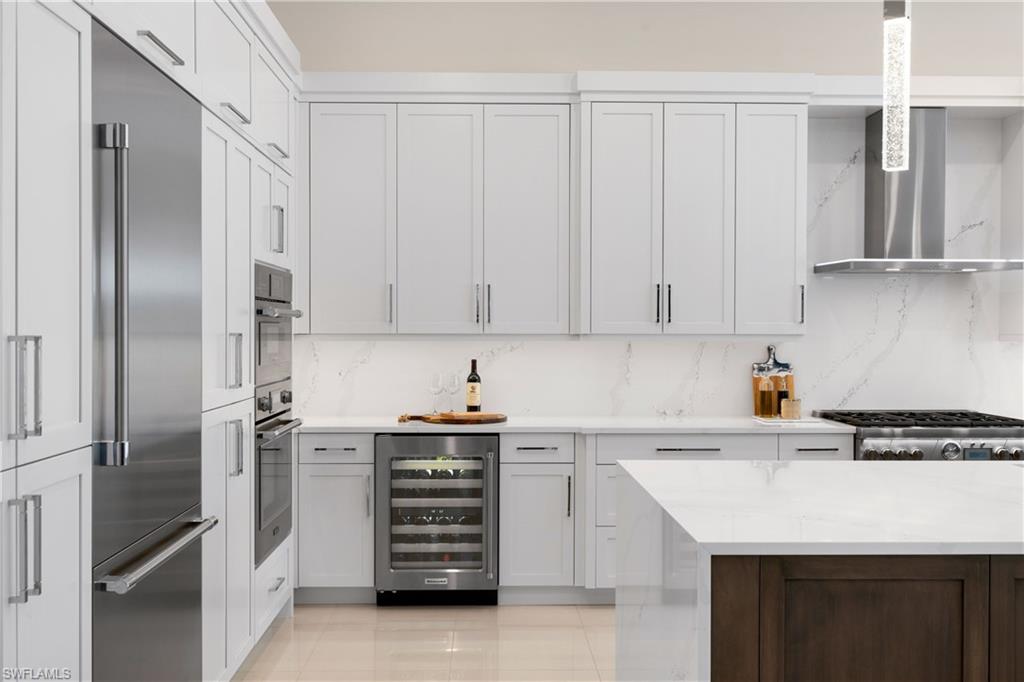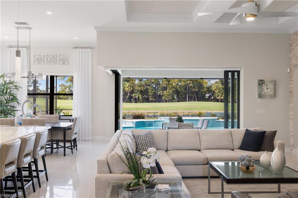 A true showpiece of modern luxury, this one of a kind Pinnacle model in Greyhawk has been reimagined through more than $400,000 in high end designer renovations, creating a residence that is as sophisticated as it is effortlessly livable. Every inch of the home has been thoughtfully curated with top tier materials, refined craftsmanship, and timeless design. The all new custom kitchen serves as the heart of the home, showcasing Thermador appliances, 48 inch shaker cabinetry, dual pantries with pullout inserts, quartz countertops and backsplash, a waterfall island, and a Galley sink and faucet system, a chefu2019s dream. The great room impresses with a stacked stone feature wall, custom built ins, and LED lit floating shelving, all opening through zero corner impact sliders to a breathtaking outdoor oasis. The expansive lanai features travertine flooring, a full outdoor kitchen, StormSmart hurricane screens, and a heated saltwater pool with LED fountain lighting, all overlooking tranquil sunset water and golf views. Inside, elegant details abound including custom wood accents, coffered ceilings, designer lighting, remote controlled window treatments, and upgraded finishes throughout. The primary suite offers a California Closets system with integrated lighting and a fully renovated spa bath clad in Italian Bianco Dolomite porcelain tile with quartz countertops, a freestanding soaking tub, and a seamless glass shower. Each bathroom and the laundry room have been upgraded with quartz surfaces, upgraded fixtures, and modern tilework. Additional upgrades include a whole house Generac generator, air and water filtration systems, new impact glass windows and doors, Nest smart thermostats, and a comprehensive ADT security system with outdoor cameras. The extended four foot garage is finished with epoxy floors, quartz topped cabinetry, and insulated doors with attic ventilation. Perfectly positioned on one of the communityu2019s most private lots with no homes in front or behind, this property offers unmatched serenity and style. Greyhawk residents enjoy resort style amenities including a lagoon pool and spa, tennis and pickleball courts, fitness center, full service restaurant and bar, and a social golf membership to The Golf Club of the Everglades. This home is a masterclass in design and craftsmanship, one of the finest offerings ever presented in Greyhawk.