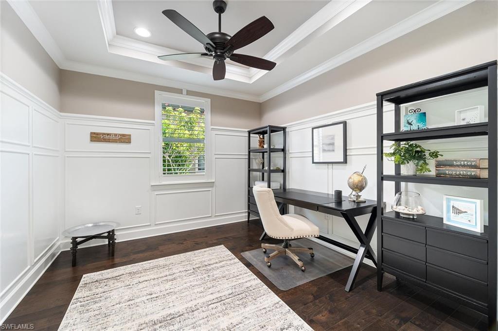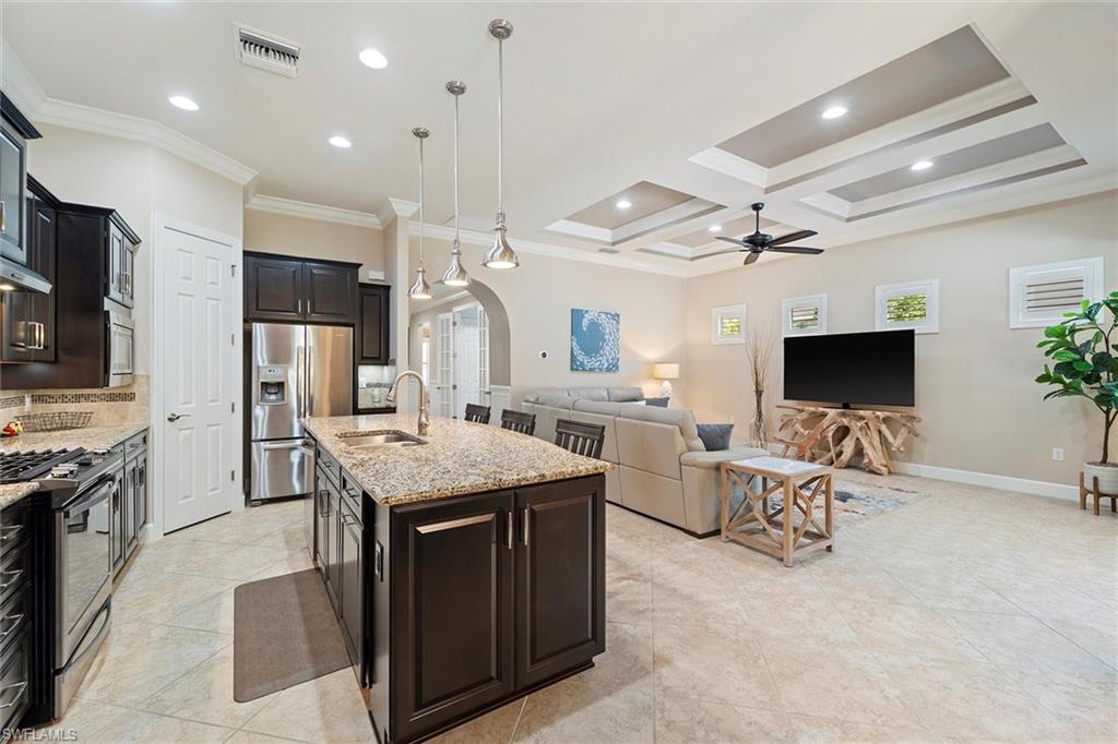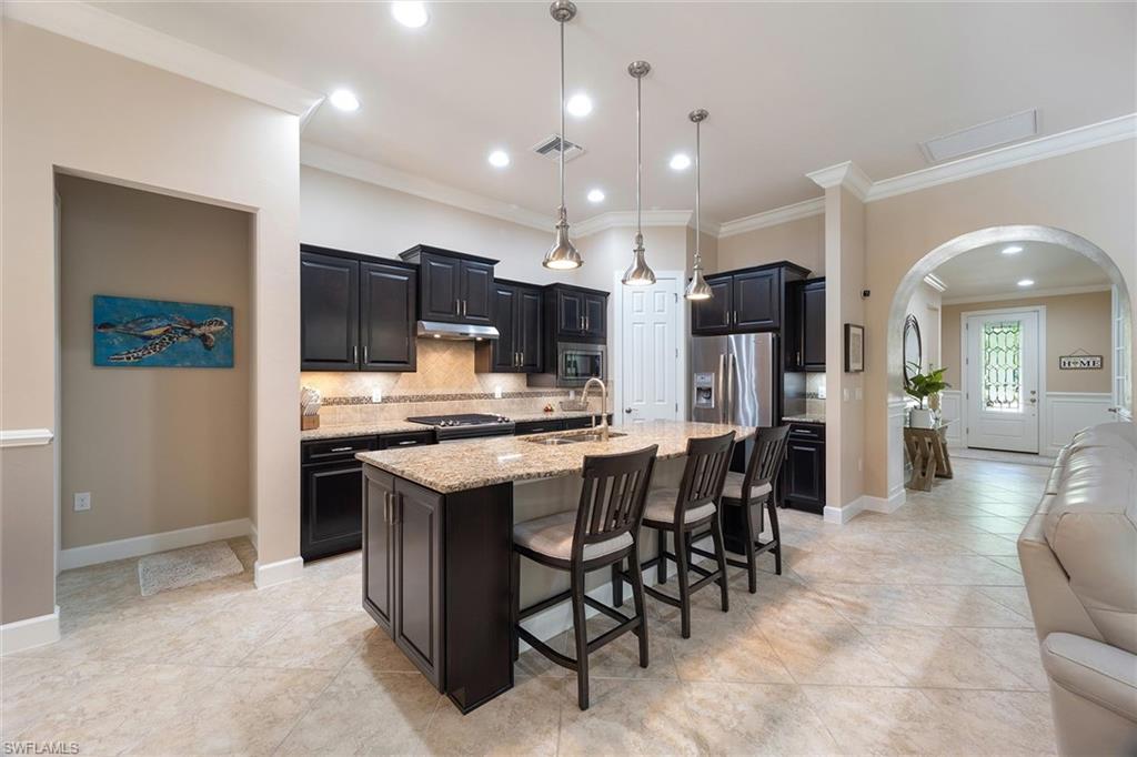 Welcome to this beautifully maintained three-bedroom, two-bath home offering 2,036 square feet of living space on a private lot. Built in 2016, this residence combines thoughtful design with modern upgrades for comfortable living and entertaining. Go inside to find elegant millwork details throughout the home, enhancing its character and charm. The spacious floor plan flows seamlessly, creating a warm and inviting atmosphere. The heart of the property is the saltwater pool with heater, complemented by solar panels for energy efficiency, ideal for year-round enjoyment. Additional highlights include two-car garage plus golf cart bay with stacking capability, open, light-filled living areas, and a private lot with serene outdoor space. This home has it allu2014style, comfort, and functionalityu2014set in a desirable location. Residents of Greyhawk enjoy two clubhouses with dining, resort and lap pools with spa, a tiki bar, state-of-the-art fitness center, card rooms and a fire pit. Recreational amenities include bocce, pickleball and tennis, led by a full-time sports director. A lifestyle director curates a year-round calendar of events. With no community development district fees, no special assessments, and low homeowners association and golf fees, Greyhawk offers value and choice with social or full golf memberships available.