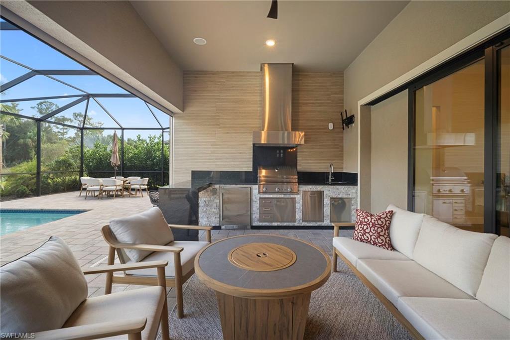 AVAILABLE FOR NOW AND THRU SEASON 2026. Social membership and access to court amenities / clubhouse INCLUDED. Escape winter in this luxury single family home which is turnkey furnished and ready for you to enjoy! There is plenty of space in the 'Pinnacle' floor plan home which includes 3 bedrooms, den/office, 3 full bathrooms, 3 car garage, laundry/mud room, outdoor kitchen, pool and spa in an enclosed lanai! There in plenty of space to entertain or you can grab some beach chairs and head to one of many local beaches for the day. The prestigious Greyhawk Community offers resort-style living with amazing amenities such as the clubhouse, pool and outdoor bar with eating area, tennis courts, pickleball courts, bocce courts, and a state-of-the-art fitness center. Plus, the added security of a guard-gated community.