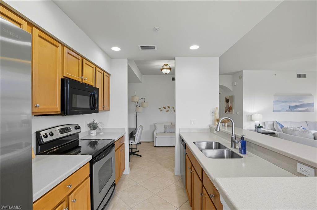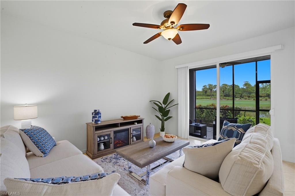 Step into this beautifully appointed first-floor Brookside model in the prestigious Heritage Bay Golf & Country Club. Featuring all-new furniture, a new water heater, and a newer A/C, this 2-bedroom + flex space for office, 2-bathroom home is completely move-in ready for either full-time or seasonal residents looking for an Active lifestyle with access to world-class amenities at an affordable price. An extra storage closet is perfect for beach gear, while your covered parking adds convenience and peace of mind. With its ground-floor location, youu2019ll enjoy the ease of no stairs or elevator wait times.Take in sweeping views of the Cypress Tee #13 and 14th fairway, creating a serene backdrop for morning coffee or evening relaxation from your private lanai with a no-see-um screen offering protection from the outside.Life at Heritage Bay offers an unbeatable blend of luxury, recreation, and community. Your bundled golf membership includes access to 27 holes of championship golf, an aqua driving range, and full-service locker rooms. Stay active with an incredible tennis and pickleball program or enjoy bocce ball, and a full-service fitness center and a clubhouse with a sauna. Relax and recharge at the resort-style pool, one of the 5 satellite pools, or meet friends at the Cabana poolside bar and grill for a casual bite.The vibrant Grille Room features indoor and outdoor dining, plus a lively bar, while the community calendar of activities ensures thereu2019s always something fun and social to enjoy.This home is the ideal blend of comfort, convenience, and a true resort lifestyle u2014 making it a rare opportunity in one of Naplesu2019 most desirable golf and country club communities. Once you have made Heritage Bay home, you will never want to leave, but when you do, you are just minutes away from top medical facilities, shopping, and dining. Come see why so many have chosen Heritage Bay as their home away from home!