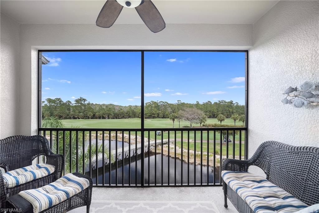 TOP FLOOR `Ashbury` Terrace condo at Heritage Bay, where your golf membership to 27 holes of championship golf is INCLUDED with purchase! Enjoy panoramic golf, water & preserve views from your private balcony in this fully TURNKEY, move-in ready condo! Featuring 2 bedrooms, 2 baths, and an outside storage locker for your golf clubs, bikes, and beach gear, the Ashbury is a traditional layout with the guest bedroom and kitchen in the front, and the dining/living room and master bedroom in the back, with amazing views from both! With sleek, modern white furniture and updated fans and light fixtures, crown molding, large diagonal tile, stainless appliances, and a fully stocked kitchen... you won't have to do anything other than bring your personal items! Heritage Bay features a stunning 27-hole Lewis-Azinger designed golf course and aqua driving range. The grand clubhouse offers diverse dining options, elegant event spaces, and a lively social scene. Have a bite to eat in The Grille Room- a casual indoor/outdoor bar & dining area, with an incredible southern view of the 27th green. Enjoy reciprocal play with 50+ clubs from May 1-October 30. Members can also enjoy a resort-style pool area with heated spa & 'The Cabana' poolside bar & grille with a full service kitchen. The community also includes a top-notch tennis program with 7 har-tru clay courts, pickleball & bocce courts, and a state-of-the-art fitness center. With a calendar full of events and activities, Heritage Bay ensures a vibrant and luxurious lifestyle for its members. Whether you're a golf enthusiast or simply looking for serene views and luxury living, Heritage Bay offers it all.