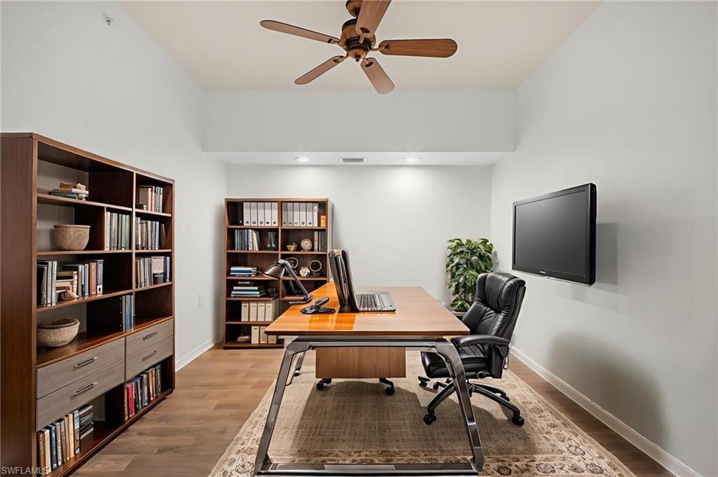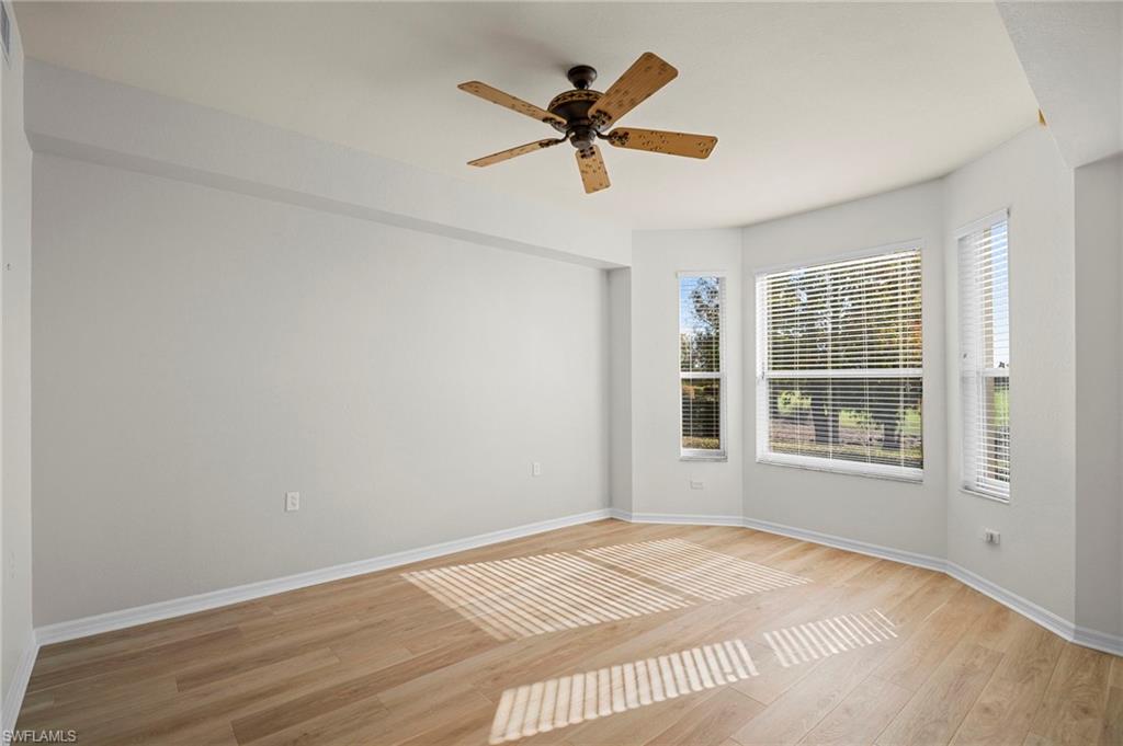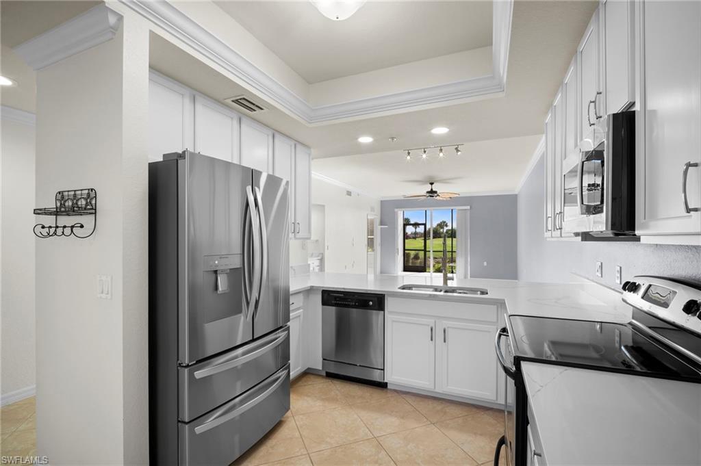 Very nicely updated Barrington model Veranda condo with southeastern lake & golf green views! The Barrington features 2 bedrooms, 2 baths, a den, a one car detached garage and both a front and back screened lanai! This condo has been well upgraded, including single level Quartz countertop and white kitchen cabinets, luxury VP flooring in both bedrooms and the den, newer AC, new fans and light fixtures, freshly painted walls and more! Heritage Bay features a stunning 27-hole Lewis-Azinger designed golf course and aqua driving range. The grand clubhouse offers diverse dining options, elegant event spaces, and a lively social scene. Have a bite to eat in The Grille Roomu2014 a casual indoor/outdoor bar & dining area, with an incredible southern view of the 27th green. Members can also enjoy a resort-style pool area with heated spa & 'The Cabana' poolside bar & grille with a full service kitchen. The community also includes a top-notch tennis program with 7 har-tru clay courts, pickleball & bocce courts, and a state-of-the-art fitness center. With a calendar full of events and activities, Heritage Bay ensures a vibrant and luxurious lifestyle for its members. Whether you're a golf enthusiast or simply looking for serene views and luxury living, Heritage Bay offers it all.