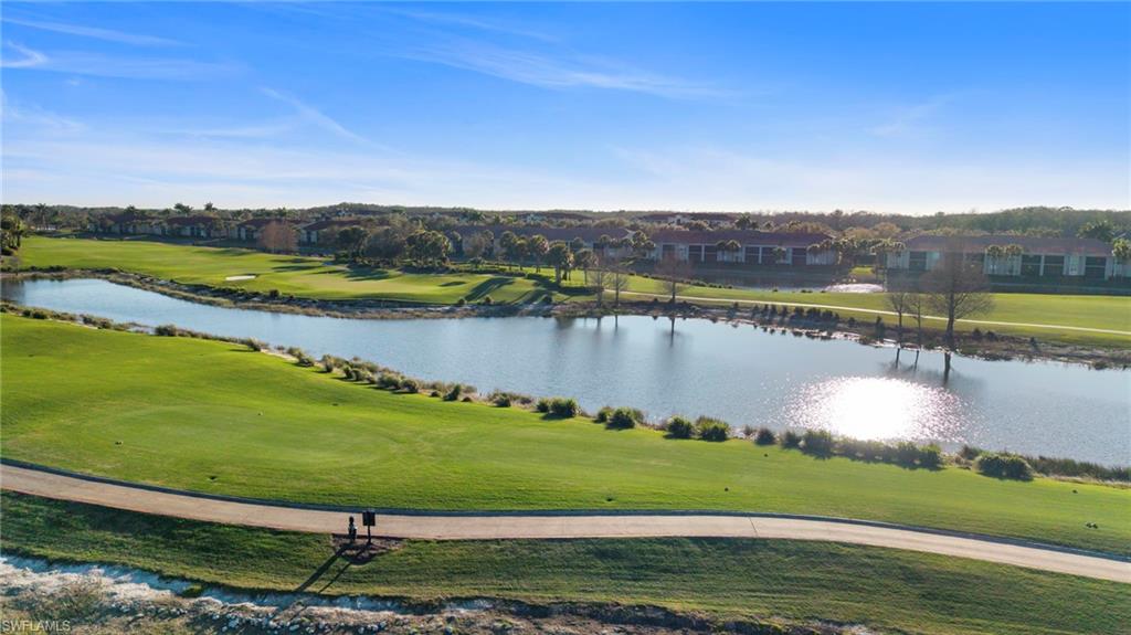 You will enjoy an absolutely gorgeous SUNRISE view of a lake and multiple holes of golf with this move-in ready, first floor `Barrington` model Veranda condo in Heritage Bay, the absolute best bundled golf community in Naples! The Barrington features 2 bedrooms + den and 2 bathrooms, with both a front and back lanai! This condo is tastefully decorated and painted, with modern fans and light fixtures, and being sold TURNKEY furnished with a short list of exclusions, and FULL golf membership included with purchase! A massive list of upgrades include a BRAND NEW A/C installed last week, all NEW white shaker kitchen cabinets with quartz countertops, luxury laminate wood flooring in both bedrooms and the den, fully tiled front and back lanais, front lanai sun shades and noseeum screens. Heritage Bay features a stunning 27-hole Lewis-Azinger designed golf course and aqua driving range. The grand clubhouse offers diverse dining options, elegant event spaces, and a lively social scene. Have a bite to eat in The Grille Room- a casual indoor/outdoor bar & dining area, with an incredible southern view of the 27th green. Members can also enjoy a resort-style pool area with heated spa & 'The Cabana' poolside bar & grille with a full service kitchen. The community also includes a top-notch tennis program with 7 har-tru clay courts, pickleball & bocce courts, and a state-of-the-art fitness center. With a calendar full of events and activities, Heritage Bay ensures a vibrant and luxurious lifestyle for its members. Whether you're a golf enthusiast or simply looking for serene views and luxury living, Heritage Bay offers it all.