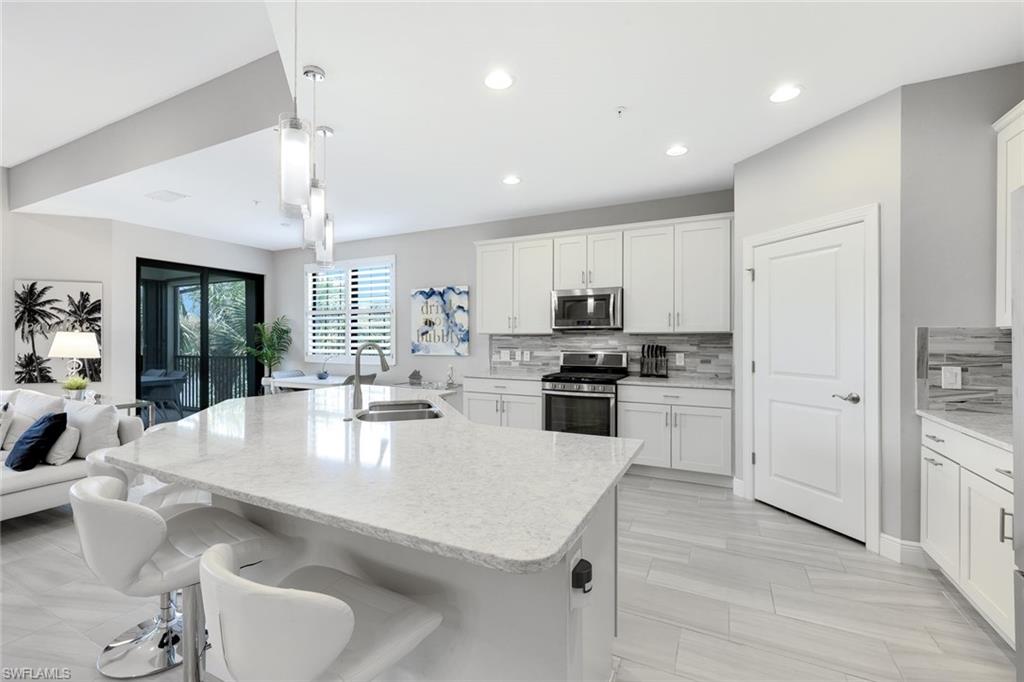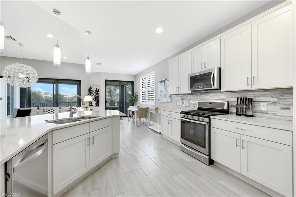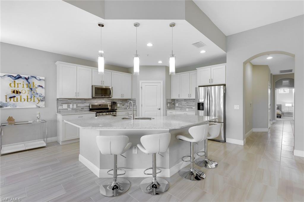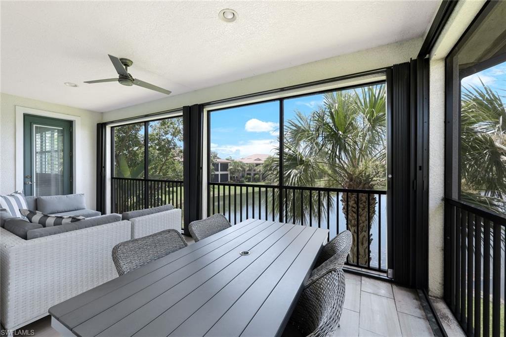 This sophisticated, upgraded and oh so spacious coastal coach Montserrat Model from u201cWCIu201d in LaMorada in Naples is the perfect year-round residence or seasonal getaway! It is also a great rental opportunity as it has consistently been a highly sought after seasonal rental. It's southwest exposure makes it feel so light and bright! Upon entry, you will be taken with the fabulous view and the open floor plan. This home offers THREE bedrooms PLUS a den, a large great room combining the kitchen, dining and living areas, A PRIVATE ELEVATOR, AND so much more. The screened lanai will be a favorite spot to relax all winter long. This is the perfect place to spend your early morning or late afternoon while enjoying the changing colors of the sky. The kitchen boasts a large island, stainless appliances, plenty of storage space, modern white cabinetry, and a walk-in pantry. The large primary bedroom is the perfect retreat to begin or to end your day. The finishes in the ensuite primary bathroom are tasteful and elegant; highlights include separate sink areas, a frameless walk-in shower with floor to ceiling tile and PLENTY of space for two! Guests will enjoy private quarters with additional bedrooms privately tucked away on the opposite side of the home from the living area/primary suite. The guest bathroom features a shower/tub combination, perfect for children and grandchildren. The private elevator allows for second-floor living (no one above you and PRIME LAKE VIEWS) without having to be concerned about carrying items up and down the stairs. This unit is a HOME with so much space, smart and tasteful finishes and PLENTY of space. In addition to the incredible indoor living space, LaMorada offers so much more - a 24 hour secured entry gate, a spectacular amenity center (complete with a resort style pool, a restaurant a fitness center and multiple lounging areas for family and friends to enjoy together), and a manicured community where you can safely bike and walk for miles. The location of LaMorada, along Immokalee Road is fabulous with easy access to world class dining, shopping, downtown Naples, the famous Naples coastline, the SWFL International airport and SO MUCH MORE!