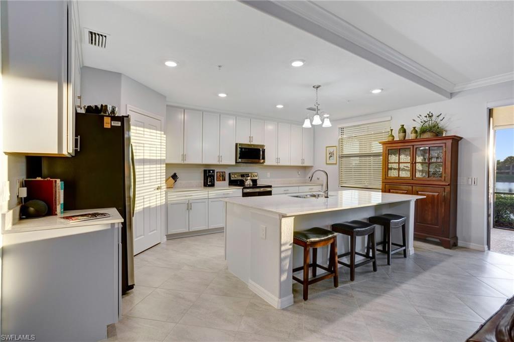 Experience Elevated Lakefront Living in LaMorada!! Discover the perfect blend of luxury and tranquility in this stunning 3-bedroom, 2-bathroom coach home, ideally situated within the highly sought-after gated community of LaMorada in North Naples. Designed with an open-concept layout that lives like a single-family home, this residence offers over 1,700 square feet of meticulously maintained living space.Serene Sunset Views & Modern Elegance. Step inside to find a bright, airy interior featuring high ceilings, crown molding, and premium finishes like porcelain tile. The chef-inspired kitchen is a centerpiece for entertaining, complete with quartz countertops, custom cabinetry, and breakfast bar. The expansive screened lanai provides the ultimate backdrop for relaxation, offering breathtaking westerly lakefront views that showcase Southwest Floridau2019s world-renowned sunsets every evening.Resort-Style Amenities & Lifestyle. Living in LaMorada means every day is a vacation. Residents enjoy access to the 13,700-square-foot lakefront clubhouse, Club LaMorada, featuring:Dining: An 80-seat lakeside restaurant and poolside bar for alfresco meals and cocktails.Wellness: A state-of-the-art fitness center, aerobics/yoga studio, and private spa treatment room.Recreation: Lighted Har-Tru tennis courts, pickleball, and bocce ball courts.Leisure: A resort-style pool with lap lanes, a private movie theater, and a culinary arts studio for cooking demonstrations and wine tastings.Conveniently located off Immokalee Road, you are just minutes from the vibrant dining and shopping at Founders Square, North Naplesu2019 premier hospitals, and the pristine sugar-sand beaches of the Gulf. With no CDD fees and low maintenance requirements, this coach home represents the pinnacle of `lock-and-leave` luxury.Hurricane-impact windows and doors throughout for maximum peace of mind.Large screened-in lanai with picture-frame screening to maximize lake views. Private attached 2-car garage with additional guest parking nearby.