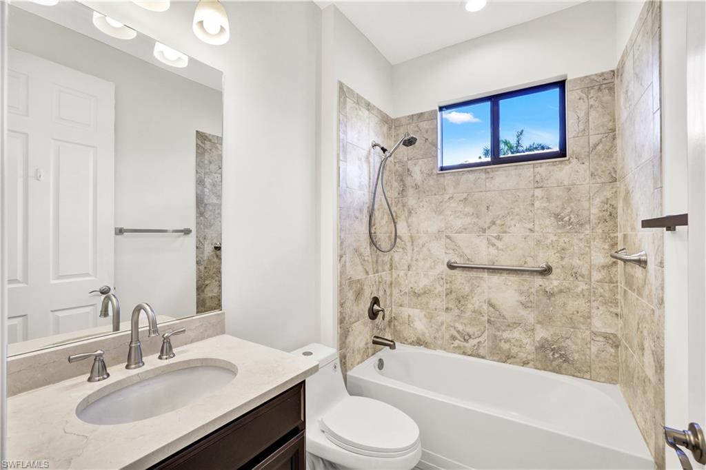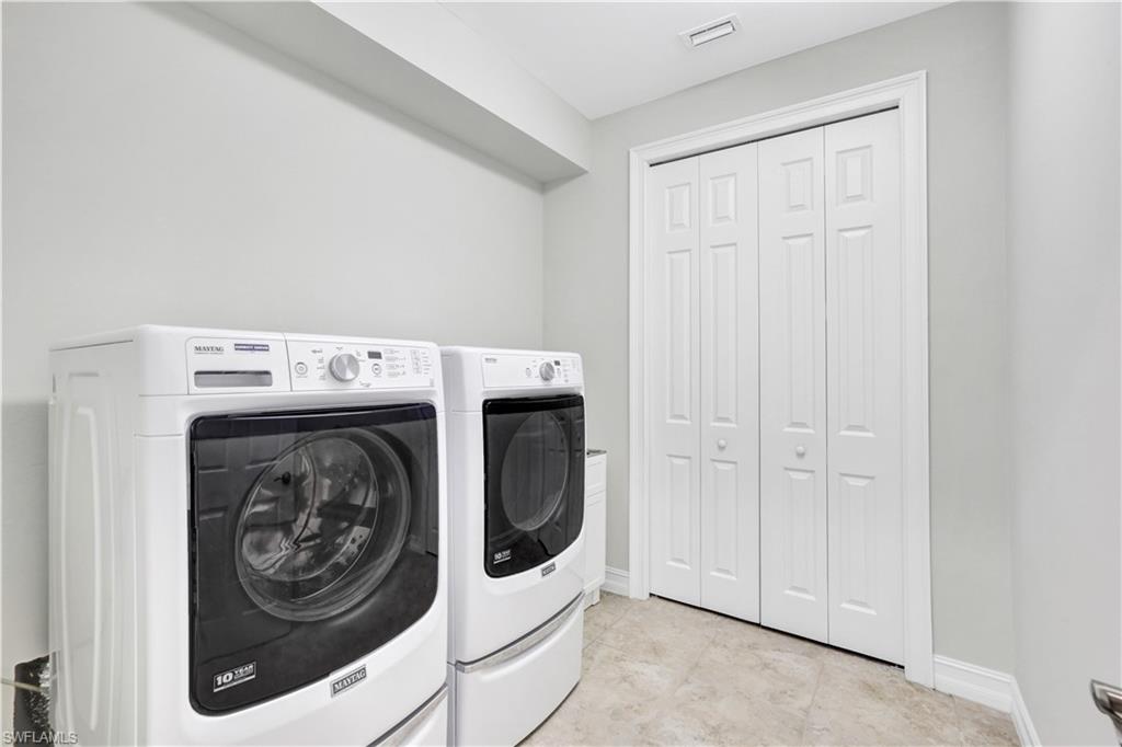 Discover this beautifully maintained 3-bedroom + den, 3-bath Wheaton floor plan in the heart of North Naples. The open layout includes a walk-in pantry, upgraded backsplash, impact windows and doors, and convenient lanai access from the primary suite, complete with crown molding, tray ceiling, dual walk-in closets and dual sinks. Enjoy sunset views from a unique lot overlooking water and preserve, with no future homes behind. Nestled on a quiet cul-de-sac, the extended lanai is perfect for entertaining, featuring a custom salt water pool with sun shelf, spa, pool heater, and BRAND NEW Pentair pool system! Equipped with $50,000 paid-off Tesla solar panels, power wall battery, and 30-amp electric car hookup, this home keeps energy costs low and provides peace of mind during outages. Located in a private, gated community with extremely low HOA fees, 1621 Songbird is ideal for full-time living or seasonal retreat. Just 25 minutes to RSW Airport, 20 minutes to Mercato & beaches, and minutes from dining and shopping. Schedule your showing today!