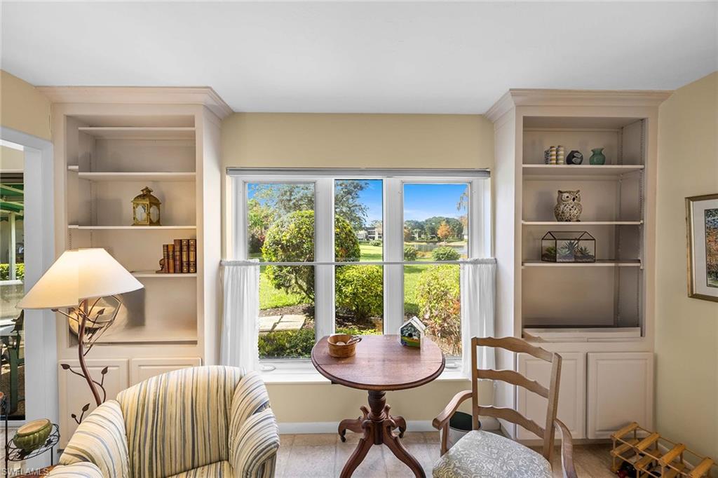 Welcome to this bright and meticulously maintained corner garden residence in the gated community of Naples Bath and Tennis. This rare offering is the only residence with a private outdoor area featuring a covered awning for exclusive enjoyment, offering peaceful views of the lake, mature trees and lush landscaping that define the communityu2019s serene character. Bonus that the seller has already paid the HOA assessment. This two-bedroom, two-bath first-floor residence comes partially furnished and features seamless entry, timeless tile flooring, custom built-ins and a kitchen with ample storage and a thoughtfully integrated built-in desk. The open-concept living area flows into a glass-wrapped dining space, while all windows and sliding doors have been updated with hurricane-impact glass for enhanced safety and energy efficiency. Included is one assigned parking space and abundant guest parking. In Flood Zone X500, outside high-risk flood areas, and remained untouched by recent storms. Larger pets welcome with approval. Minutes from the Gulf, shopping, dining and top-rated schools. Ideal for seasonal, full-time or investment use, subject to association guidelines.