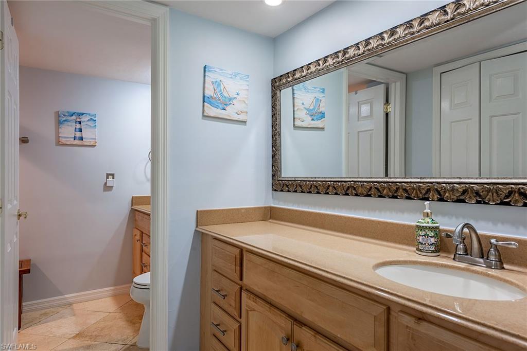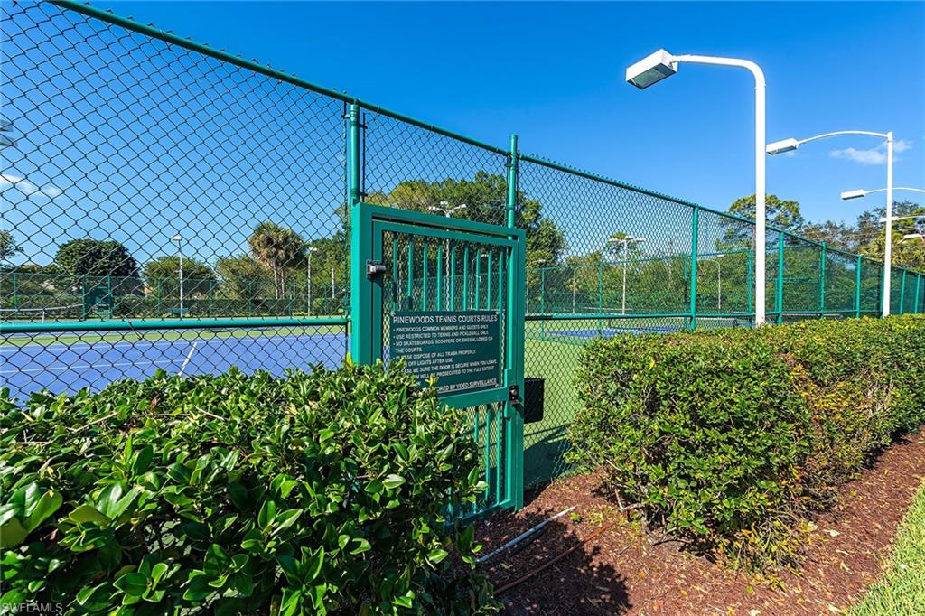 Experience relaxed coastal living in this updated Pinewoods condominium in the heart of North Naples. Offering approximately 1,472 square feet, this two-bedroom, two-bath residence blends modern comfort with timeless appeal. The bright kitchen features a breakfast nook, generous pantry and dining area with a built-in bar. Enjoy marble flooring throughout, newer appliances and a new roof replaced about three years ago. The spacious living area opens to a glass-enclosed lanai overlooking a tranquil lake, ideal for morning coffee or evening sunsets. The primary suite includes a walk-in closet and lanai access, while the guest suite provides a separate retreat. Pinewoods residents enjoy two pools, a spa, and tennis and pickleball courts in a low-density, serene community. Ideal as a full-time residence or seasonal retreat, this home also offers strong rental potential. Minutes from beaches, fine dining and shopping, it captures the best of North Naples living.