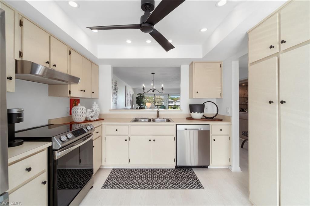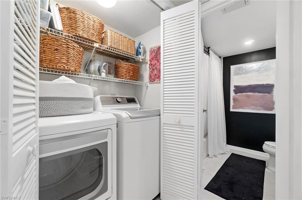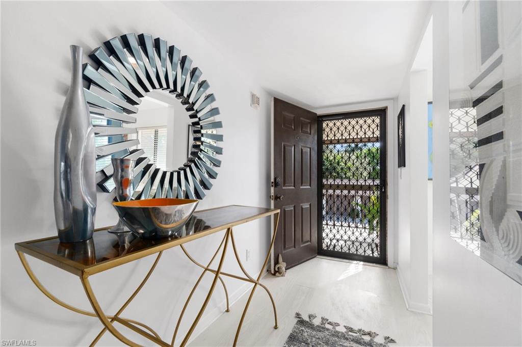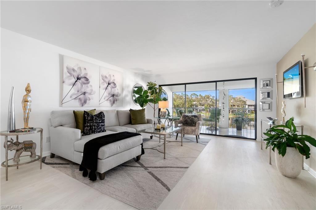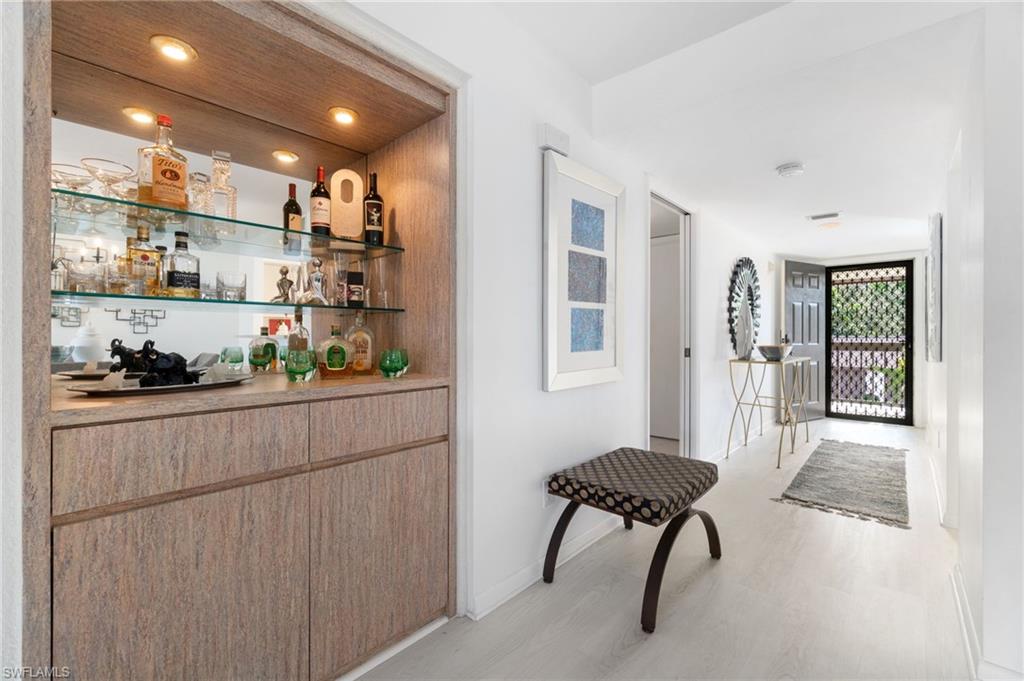 Situated in the serene Pinewoods community of North Naples, this delightful condominium offering approximately 1350 square feet of comfortable living space. Roof is aprox. three years old, brand new water heater, updated LVP flooring and more. This two-bedroom, two-bath residence welcomes you with a bright and airy design and thoughtful amenities ideal for both relaxation and entertaining. Step into a well-appointed kitchen that combines functionality with cozy charm, featuring a generous pantry and a breakfast nook, perfect for casual meals. Adjacent, the dining area offers a built-in bar, making it a great gathering spot for friends and family. The open layout flows seamlessly to the living spaces, all bathed in natural light, creating an inviting ambiance throughout. The primary bedroom is a restful retreat, complete with a walk-in closet and sliding doors that lead to the screened lanai with tranquil lake view. The guest suite ensures comfort and privacy, thoughtfully designed with a sliding door separating the bedroom and bathroom. The community boasts two pools, a relaxing spa, and both tennis and pickleball courts, ensuring endless opportunities for recreation and socializing. The low density setting means fewer crowds and more tranquility. Plus, with the beach just under two miles away, along with quick access to shopping, fine dining and downtown Naples, you're perfectly positioned to enjoy coastal living at its finest.