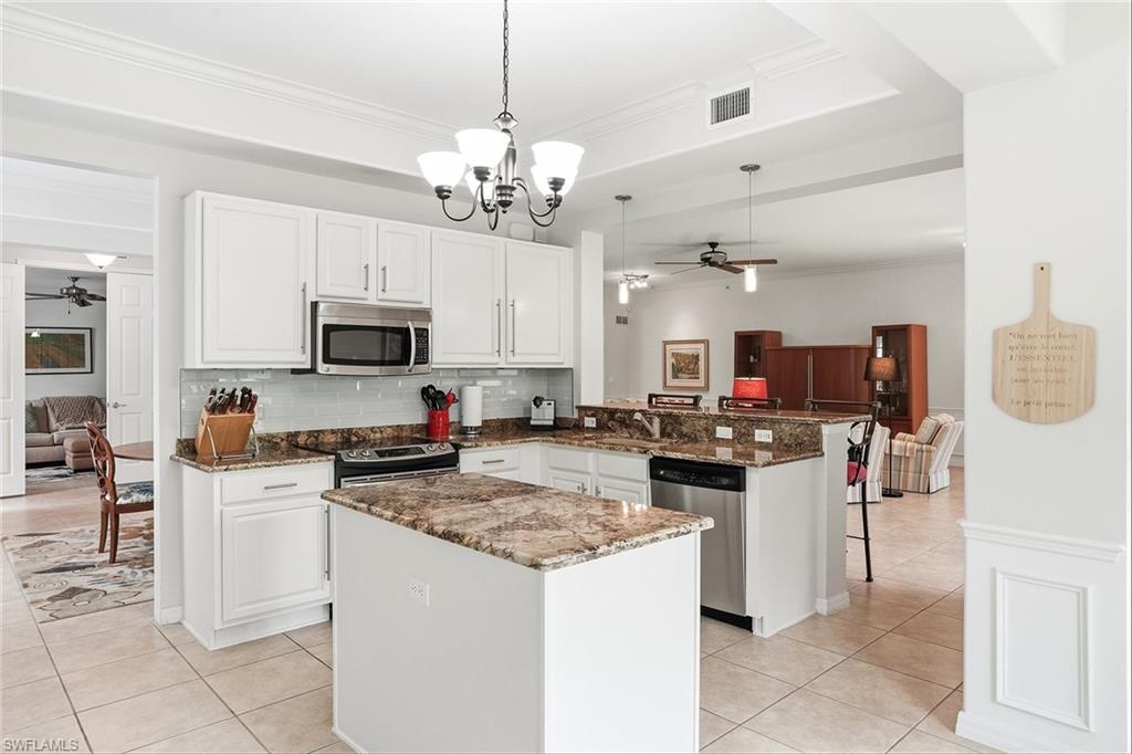 Full Golf Membership deeded which is an exceptional value for avid golfers (membership may be sold and converted to sports or social if desired). 12026 Covent Garden Ct is a sophisticated 2 bedroom plus den, 2-bathroom home located in the prestigious community of TwinEagles in Naples, Florida. Boasting 2,367 square feet home exudes comfort, offering a serene retreat. Step inside to discover a meticulously designed interior, with plantation shutters, trim work and crown molding. The open-concept layout seamlessly blends the living and dining areas, creating a perfect flow for entertaining and relaxation. The heart of this home is enhanced with beautiful trim work, white cabinetry in the kitchen complementary granite countertops, a stylish backsplash, and an oversized center island with a wine refrigerator. Your primary bathroom is complimented with a separate tub and shower, dual vanities, and a walk-in closet, providing ample storage and organization. TwinEagles is one of the finest communities in SWFL. Enjoy 1,115 acres of natural tranquility, 2 Championship Golf Courses the Talon Course designed by the Nicklaus Group, and The Eagle Course designed by Steve Smyers. New Clubhouse, bocce Courts, Himalayan putting green, Fitness Center, Tennis, pickleball courts, resort pool and tiki bar.