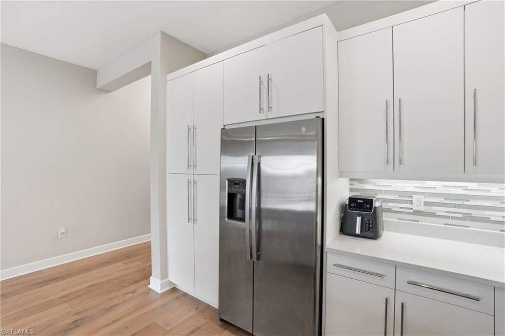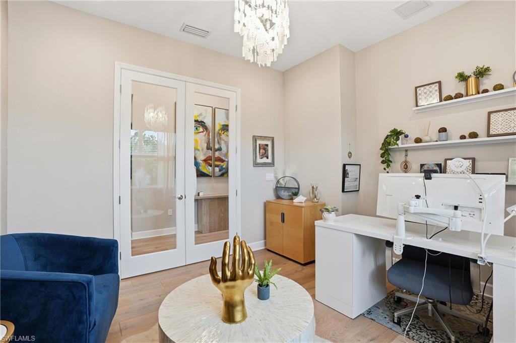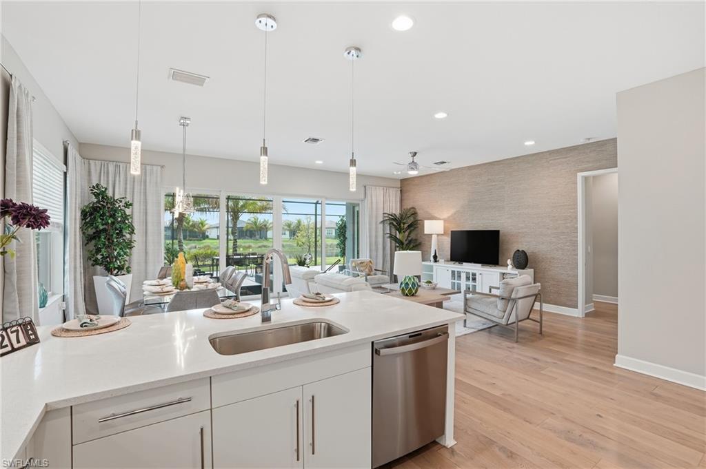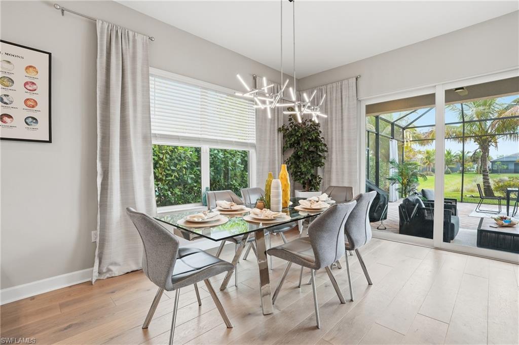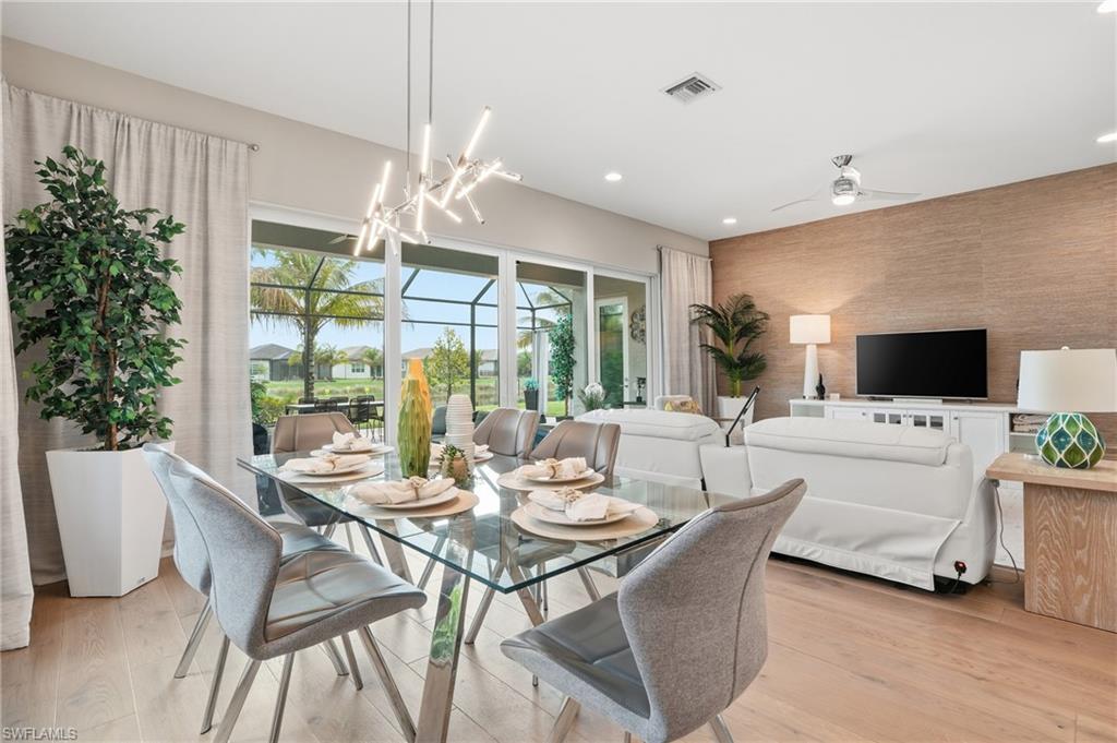 Built just three years ago and thoughtfully upgraded with over $100,000 in premium enhancements, this residence stands apart from standard builder offerings and features hurricane-impact glass throughout for added peace of mind. The moment you walk in, you notice how beautifully done and light-filled this home is bright, welcoming, and easy to live in. Nothing feels tight or overdone; it just flows. The kind of home where you can picture living here full-time or spending time seasonally, surrounded by the people you love. The living space opens right out to the extended lanai and lake, which is really where this home shines. This is where mornings start with coffee outside, dinners stretch a little longer because no oneu2019s in a rush to leave, and friends, family, and guests feel instantly at home. The lake gives you space and privacy, and being on a corner lot means youu2019re not looking into someone elseu2019s windows. Inside, the layout just makes sense. Youu2019ve got three bedrooms plus a den, so everyone has their own space. The den works perfectly as a home office, hobby room, or extra sleeping space when visitors come down from up north. With three full bathrooms, hosting is easy, even when the house is full. The kitchen has already been upgraded, including natural gas cooking, so youu2019re not walking in thinking about projects. Wide-plank white oak wood flooring, custom finishes, and thoughtful details throughout reflect a home where the work has already been done and done well. The primary suite feels like a true retreat, complete with custom closet systems that make daily living simpler, not more complicated. The split floor plan adds another layer of privacy, with the primary suite set apart from guest spaces. Even the garage has been elevated, featuring air-conditioning and epoxy flooring, ideal for storage, fitness gear, bikes, golf equipment, or simply keeping everything clean and organized. What really sets this home apart is how low-maintenance life feels here. Valencia Trails is a newer 55+ community designed for people who want to stay active, social, and engaged without feeling obligated to do it all. Thereu2019s a large dog park, miles of walking trails, multiple pools, and a beautiful clubhouse that includes a cooking studio, spa, billiards room, indoor and outdoor bars, and a banquet hall with shows and events. Add pickleball, tennis, and a wide variety of clubs and activities, and itu2019s easy to fill your days exactly how you want or keep them as full or relaxed as you choose.And soon, a back gate directly out to Vanderbilt Beach Road will make getting in and out effortless whether youu2019re heading to dinner, the beach, or meeting friends and family.This isnu2019t just a place to live itu2019s a home that supports how you want to spend your time now. Whether itu2019s just the two of you or a house full of visitors escaping winter, everything has its place, everyone has space, and life here feels easy.