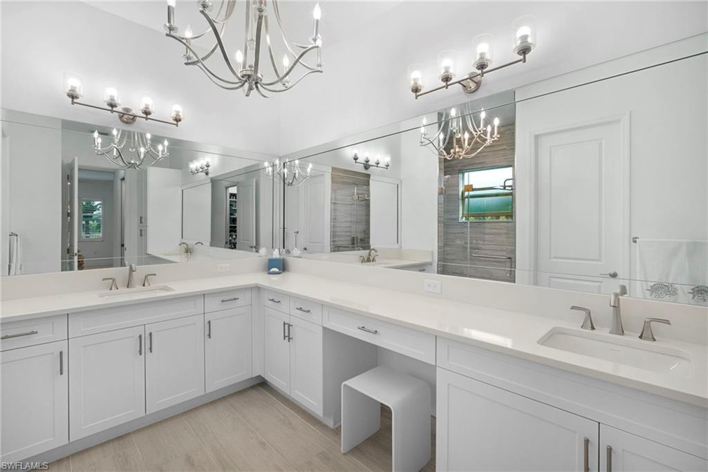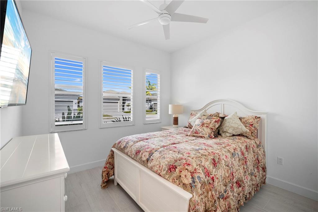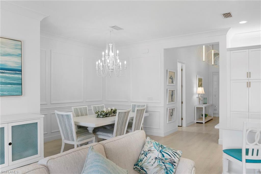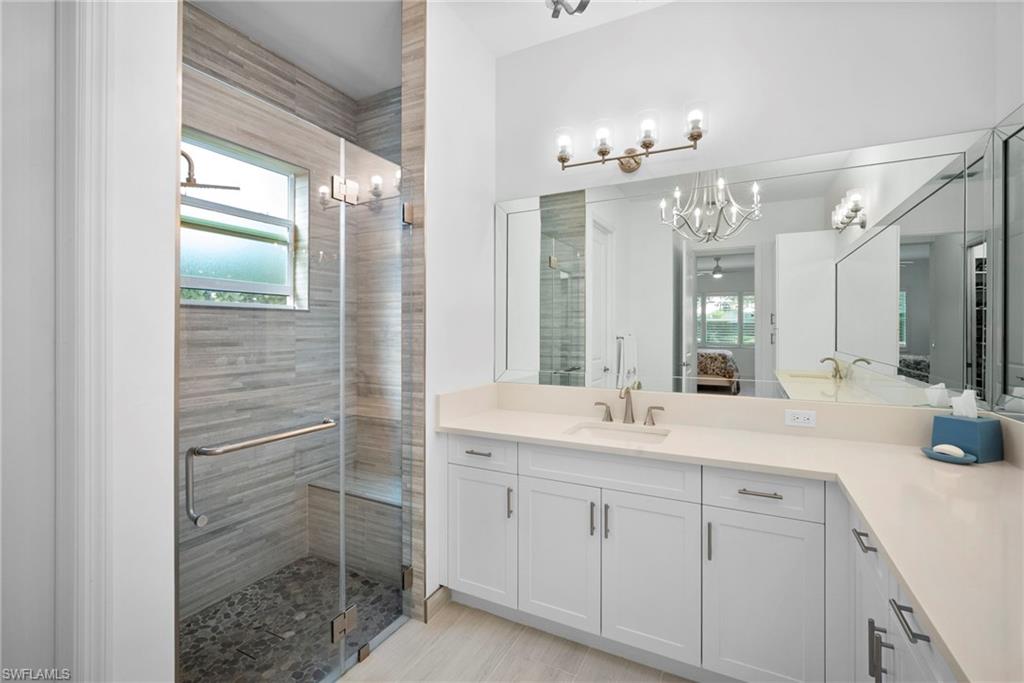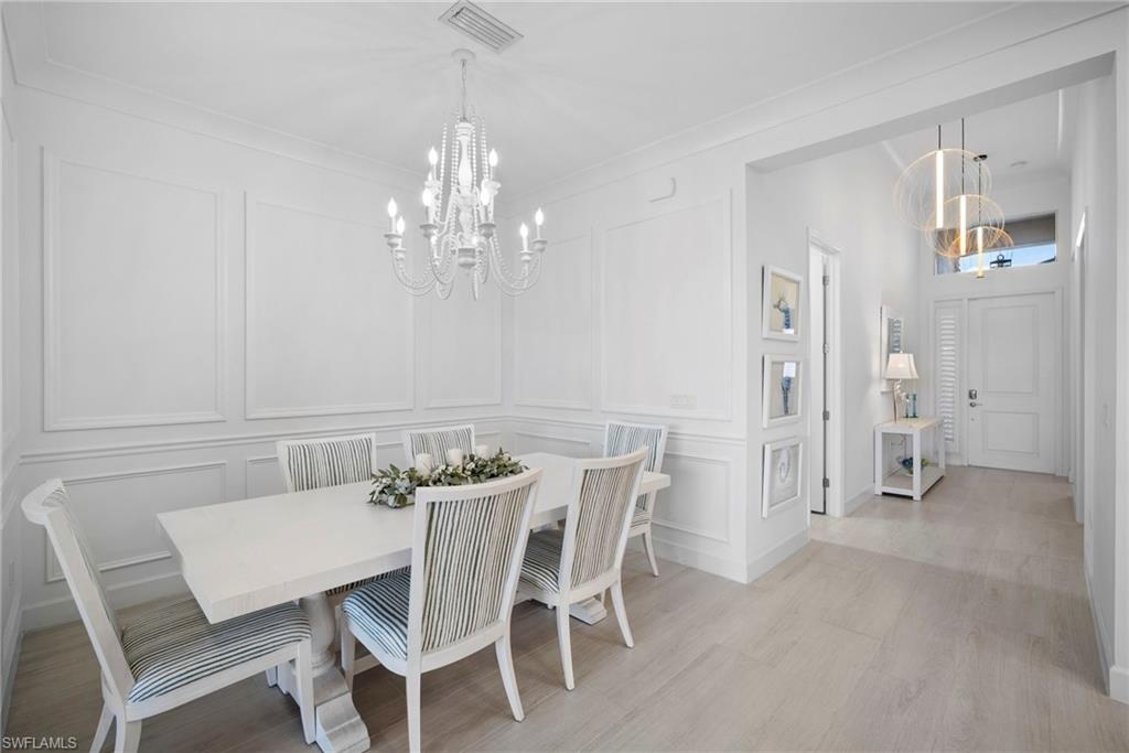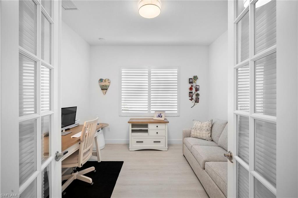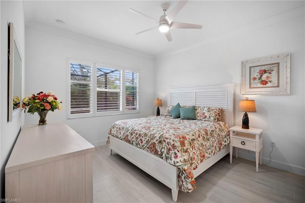 Welcome to this beautifully upgraded Flamingo floorplan in Valencia Trails, Naplesu2019 premier natural gas community. Situated on a desirable corner lot, this 2-bedroom plus den, 2-bath residence offers a bright, open layout designed for both everyday comfort and effortless entertaining. The home features new tile flooring throughout, enhancing the clean coastal aesthetic and providing durability with easy maintenance. The spacious great room flows seamlessly into the chefu2019s kitchen, complete with natural gas cooking, quartz countertops, abundant cabinetry, and an oversized island ideal for gathering with family and friends. The versatile den provides the perfect space for a home office, media room, or additional guest accommodations. The primary suite is a private retreat with custom closets and a well-appointed bath, while plantation shutters throughout add both style and functionality. Step outside to your private resort-style lanai featuring a gas-heated pool and spa and a fully equipped outdoor kitchen, creating the ultimate space for year-round indoor-outdoor living. Valencia Trails is a natural gas community located just minutes away from shopping and dining and provides a new standard of 55 plus living by offering an exciting vacation-inspired lifestyle that rivals the finest resorts. The opulent 42,000 sq. ft. Clubhouse and Lifestyle Complex offers hundreds of exciting events including Broadway style shows, matinees, cocktail parties and galas. A full-time, on-site lifestyle staff ensures that there is something for everyone to enjoy.