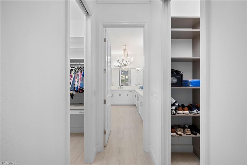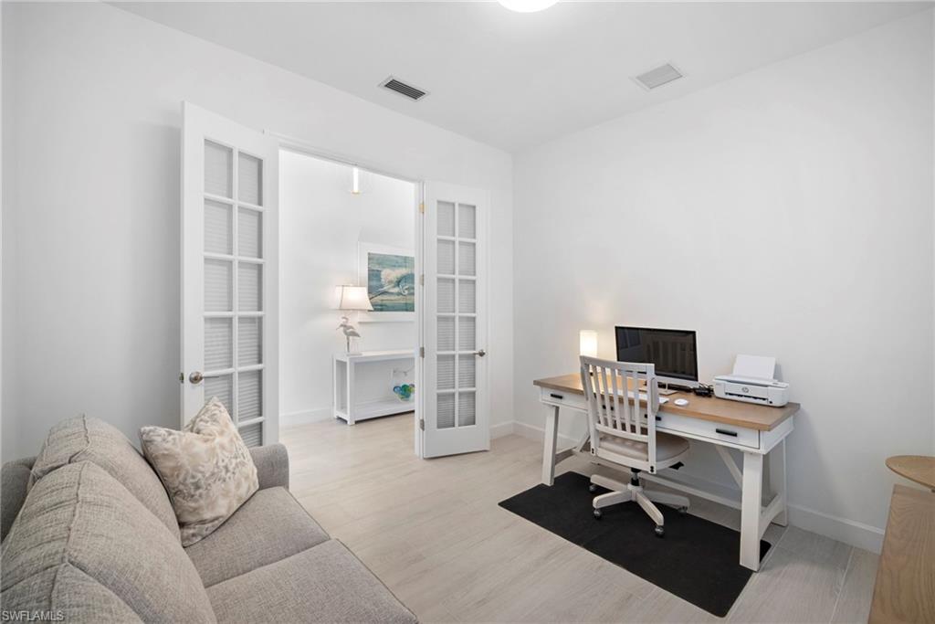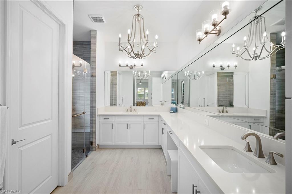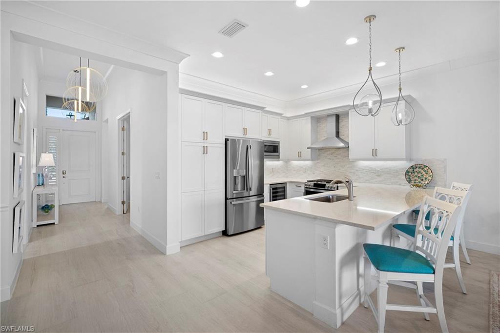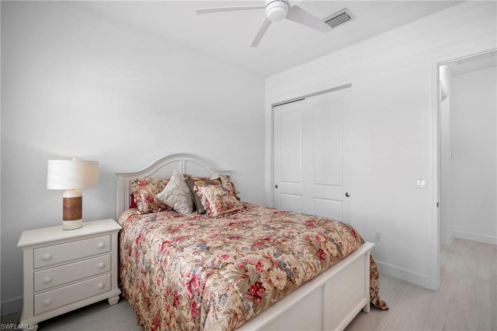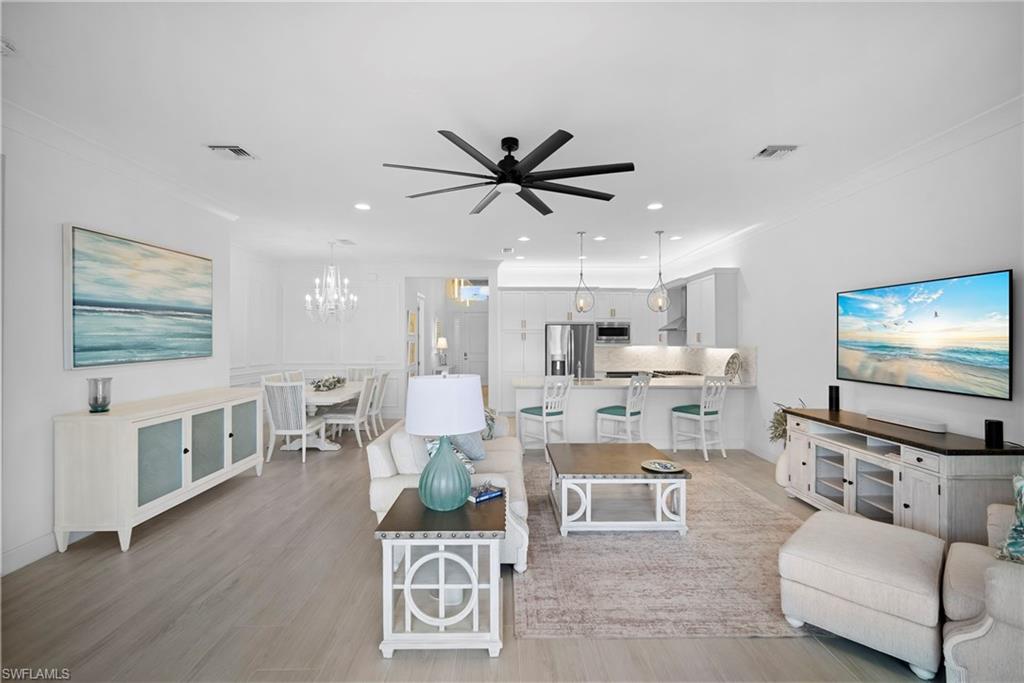 Welcome to this beautifully upgraded Flamingo floorplan in Valencia Trails, Naplesu2019 premier natural gas community. Situated on a desirable corner lot, this 2-bedroom plus den, 2-bath residence offers a bright, open layout designed for both everyday comfort and effortless entertaining. The home features new tile flooring throughout, enhancing the clean coastal aesthetic and providing durability with easy maintenance. The spacious great room flows seamlessly into the chefu2019s kitchen, complete with natural gas cooking, quartz countertops, abundant cabinetry, and an oversized island ideal for gathering with family and friends. The versatile den provides the perfect space for a home office, media room, or additional guest accommodations. The primary suite is a private retreat with custom closets and a well-appointed bath, while plantation shutters throughout add both style and functionality. Step outside to your private resort-style lanai featuring a gas-heated pool and spa and a fully equipped outdoor kitchen, creating the ultimate space for year-round indoor-outdoor living. Valencia Trails is a natural gas community located just minutes away from shopping and dining and provides a new standard of 55 plus living by offering an exciting vacation-inspired lifestyle that rivals the finest resorts. The opulent 42,000 sq. ft. Clubhouse and Lifestyle Complex offers hundreds of exciting events including Broadway style shows, matinees, cocktail parties and galas. A full-time, on-site lifestyle staff ensures that there is something for everyone to enjoy.