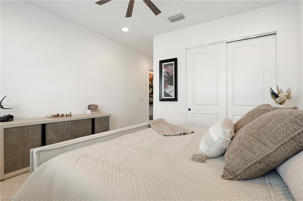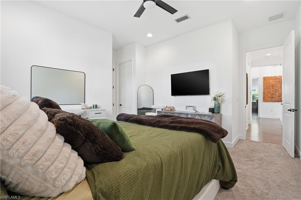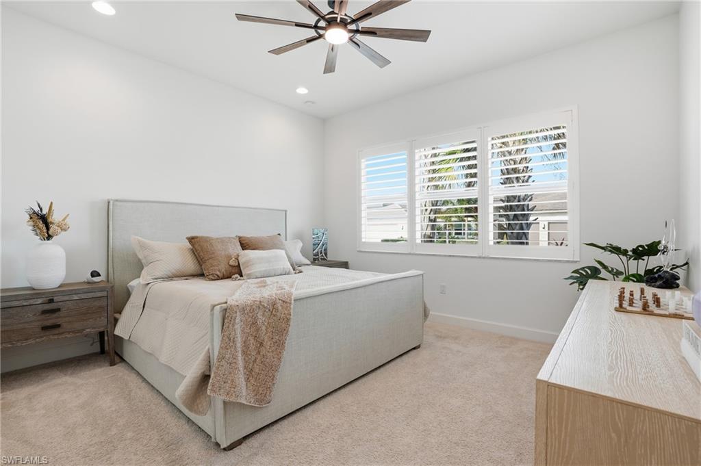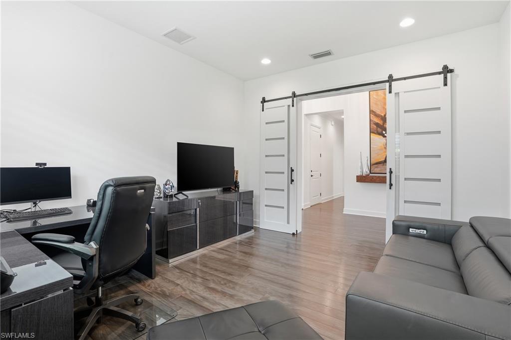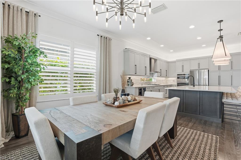 Welcome to a refined residence in the prestigious 55+ community of Valencia Trails, where modern luxury meets effortless livability in the heart of North Naples. Elegantly crafted with a timeless tile roof and a spacious three-car garage, this home impresses from the moment you arrive. Inside, rich wood flooring flows through the main living spaces, complemented by designer tray ceilings and a light, airy ambiance that enhances the homeu2019s sophisticated, contemporary aesthetic.The open-concept layout blends the kitchen, living, and dining areas into one grand entertaining space, highlighted by gas cooking, upscale finishes, and an inviting atmosphere ideal for gatherings of any size. A well-appointed den offers versatility as a private office, media room, or quiet retreat.The luxurious primary suite features plush carpeting, a spa-inspired bathroom, and a beautifully appointed walk-in shower complete with a rain shower head for an elevated experience. Guest bedrooms provide comfort and privacy, making this home ideal for hosting family and friends.A truly expansive covered lanai offers the perfect extension of your indoor living space, enhanced by electric roll-down privacy shades for convenience and comfort. With abundant room to design a custom pool, the outdoor area is ready to transform into your own private sanctuary.Nestled within the sought-after Valencia Trails community, residents enjoy a vibrant lifestyle with an extraordinary clubhouse, resort-style amenities, on-site dining, miles of scenic walking and biking trails, and an endless calendar of activities. All of this is set just minutes from world-class dining, shopping, golf, and the pristine Gulf beachesu2014providing the ultimate North Naples experience.