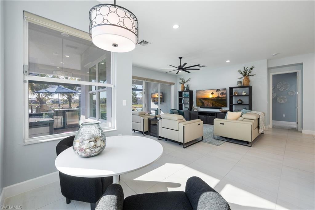 Welcome home to refined resort-style living in Valencia Trails, one of Naplesu2019 premier 55+ gated luxury communities. This west-facing residence offers breathtaking sunset views and an exceptional blend of elegance, comfort, and effortless Florida living. OFFERED FURNISHED FOR YOUR IMMEDIATE ENJOYMENT!Designed for indoor-outdoor enjoyment, the outdoor living space is a true private retreat featuring a sparkling pool, sun shelf, and spa, along with a beautifully appointed outdoor kitchenu2014perfect for evening entertaining, sunset dinners, and relaxing nights under the stars. Whether hosting guests or unwinding after a day at the beach or golf course, this outdoor living space delivers a resort-like experience at home.Inside, the home showcases thoughtful upgrades throughout and a light, coastal design palette that feels both elevated and timeless. The open living areas are bright and welcoming, offering a seamless flow ideal for everyday living and entertaining alike. Every detail has been carefully maintained, making this home truly move-in ready.A flexible bonus room enhances the homeu2019s versatility and appeal. Intentionally left open, this space can easily transition to suit your needsu2014whether envisioned as a refined home office, wellness studio, media room, guest retreat, or customized with built-ins or a Murphy bed. The flexibility allows the next owner to tailor the home without compromise.The landscaping has been kept simple and low-maintenanceu2014ideal for seasonal residents seeking lock-and-leave convenienceu2014while still offering the option to add personal touches over timeAs a resident of Valencia Trails, enjoy an unparalleled amenity experience anchored by a magnificent grand clubhouse with the on-site Gather restaurant and social lounge. Resort-style and lap pools, pickleball and tennis courts, bocce, and a cutting-edge fitness center support an active lifestyle, while scenic walking trails and a vibrant calendar of social events foster connection and community. Every detail of the neighborhood has been designed to elevate daily living in a sophisticated, welcoming environment.Ideally located in Naples, Valencia Trails provides convenient access to world-class dining, shopping, golf, and Gulf beaches while offering the privacy and luxury of a premier master-planned community.This is an exceptional opportunity to enjoy sunsets, luxury amenities, and effortless Florida living in one of Naplesu2019 most desirable 55+ communities. Schedule your private showing and experience the Valencia Trails lifestyle firsthand.