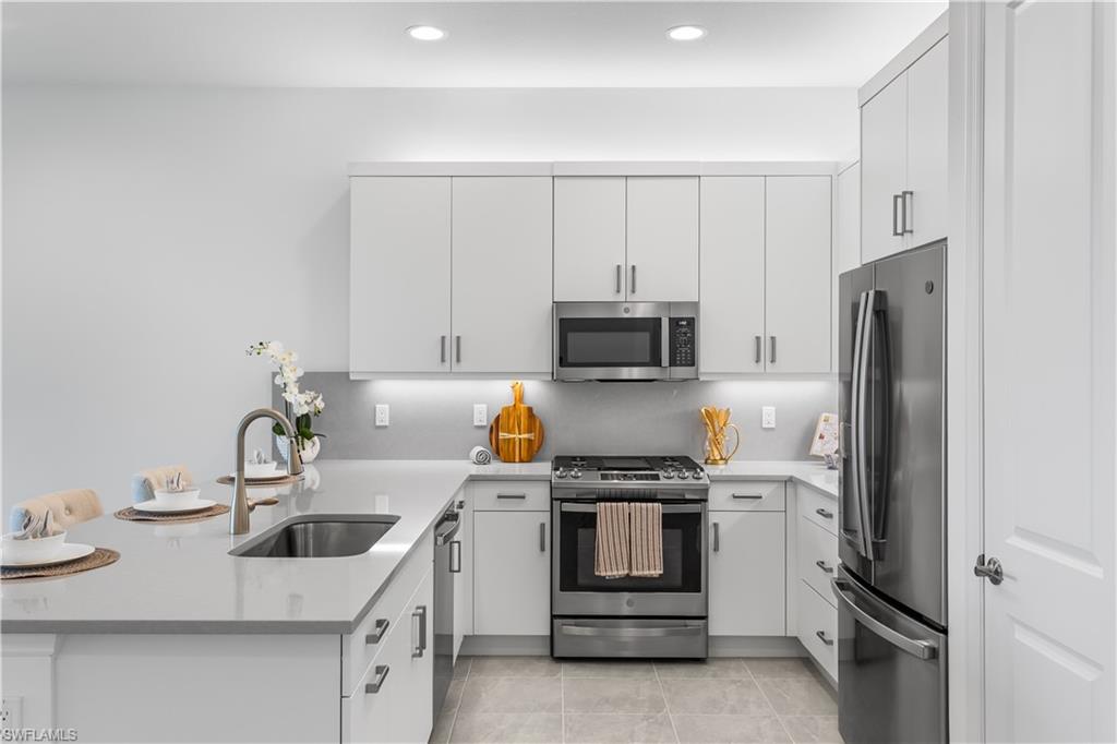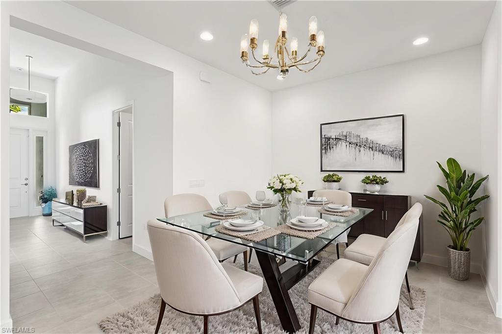 This stunning Flamingo model home offers an unparalleled blend of luxury and comfort in the highly sought-after Valencia Trails, Naplesu2019 premier 55+ community. From the moment you step into the 14-foot-ceiling foyer, you feel an immediate sense of sophistication. The open-concept design seamlessly connects the kitchen and living areas, making it ideal for both everyday living and elegant entertaining. The chefu2019s kitchen is a true showpiece, featuring quartz countertops and backsplash, a natural gas stove, premium stainless steel appliances, and pull-out trash bins. Cabinetry with soft-close functionality and elegant molding adds a touch of refinement, while ample recessed lighting enhances the space. The home is equipped with hurricane doors and windows for peace of mind. Just outside the glass sliding doors is an outdoor area with breathtaking views of the pond and ample space for a custom pool. Beyond your doorstep, Valencia Trails offers world-class amenities that enhance an active, social lifestyle. The impressive 43,000-square-foot clubhouse features a full-service restaurant and bar, a state-of-the-art fitness center, a full-service salon and spa, and multiple recreational spaces, including card rooms, an art studio, and a learning kitchen. For those who love outdoor activities, the community boasts a resort-style pool, a lap pool, a resistance pool, six tennis courts, eight pickleball courts, and scenic walking and biking trails. Even your four-legged companions will feel at home with two dedicated dog parks. This is more than just a homeu2014itu2019s an opportunity to embrace a luxurious, resort-style lifestyle in one of Naplesu2019 most exclusive communities. Homes like this are rare, and demand for Valencia Trails continues to grow. Donu2019t miss your chance to own a piece of paradise. Call today to schedule your private tour and experience the elegance, comfort, and breathtaking lake views for yourself.`