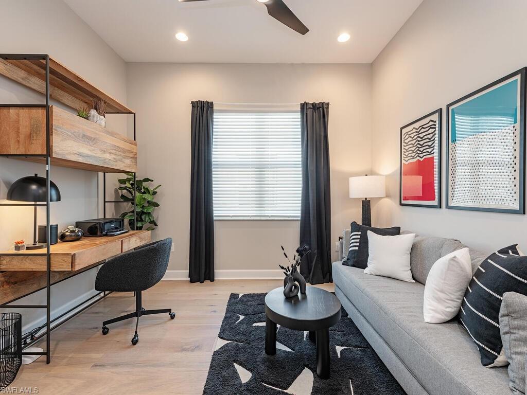 Feel like youu2019re on vacation every day in this light-filled, nearly brand-new Pelican floor plan home, perfectly positioned with a peaceful preserve at the rear and landscaped green space across the streetu2014so your views are open, serene, and never focused on neighboring homes. Mornings begin with coffee on the three-sided picture-screened lanai as the sun rises over the preserve, and afternoons are best spent floating in your gas-heated saltwater pool, soaking in the spa, or enjoying long, relaxed meals alfresco with friends and family. Beyond the lanai, a fenced yard provides the ideal space for a dog run or defined landscaping. Inside, the bright white kitchen features quartz counters and backsplash, a deep single-bowl sink, pendant lighting, and stainless-steel appliances including a gas range. It opens seamlessly to the great room and dining area, creating an inviting, open floor plan ideal for both everyday living and entertaining. Beautiful oak flooring flows throughout the home, complemented by ceiling fans and abundant natural light that creates an airy, welcoming atmosphere. The private primary suite is a true retreat, offering dual closets and a spa-like bath with frameless shower door and lighted mirrors. The flexible layout includes two guest bedrooms, two guest baths, and a den which works well as a home office, media room, or overflow space for visitors. Simple storm prep with impact glass, providing peace of mind year-round. An epoxy-finished garage floor and a prime location with quick & easy access to the Vanderbilt Beach Road entrance complete this exceptional Naples offering. Valencia Trails is more than a communityu2014it's a lifestyle. This exclusive 55+ neighborhood features world-class amenities, including a 43,000 SF clubhouse with gourmet restaurant, poolside bar, resort-style pools, fitness center, pickleball, tennis, bocce, yoga, art studio, cooking classes, spa, dog park & a vibrant social calendar. Now is the time to discover this extraordinary neighborhood where relaxation, recreation, and connection come together.