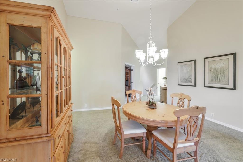 RARELY AVAILABLE 2ND FOOR CARRIAGE HOME WITH DESIRABLE EASTERN LANAI EXPOSURE. Vanderbilt Country club is an exceptional BUNDLED GOLF COMMUNITY with a well-respected golf course & driving range. The tree-lined 18 hole, par course winds through 6,631 yards of beauty and is enhanced by stunning landscape. This well maintained, clean unit offers newer appliances and a breakfast nook opening to a spacious lanai surrounded by nature. The living room/dining room open concept configuration with vaulted ceilings presents a roomy comfortable living space. This second floor home is in a convenient location with a two car garage, plantation shutters, as well as partial furnished. Extra bonus room/den is perfect for overflow company or an office with pullout couch adds to the value of this property. Brand new resort style pool and Bocce courts just completed 8/25, multiple satellite pools, tennis, pickleball, dances. Formal and casual restaurants and most importantly a friendly, fun-loving community enhance the lifestyle of all that come to live and visit. The Terrace bar is adjacent to the pool and island vibe. PT, personal training, with multiple classes, are at your back door. Don't miss out on this one!