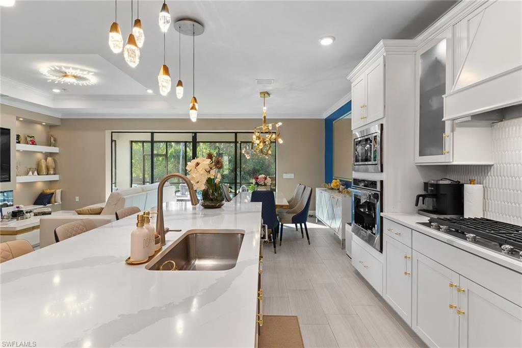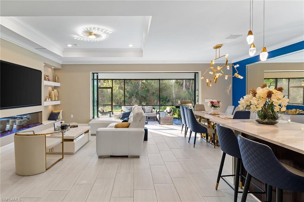 Modern coastal luxury with a designer-finished home in Ventana Pointe. Experience refined modern coastal living in this exceptional, designer-finished residence in the sought-after gated community of Ventana Pointe in Naples. Showcasing over $150,000 in upgrades, this desired Whitestone model offers four bedrooms, a den, 3.5 baths and a versatile loft across 2,894 square feet of thoughtfully designed living space. From the moment you enter, the home impresses with its attention to detail and elevated finishes throughout. The chefu2019s kitchen is a centerpiece, featuring a gas cooktop, upgraded stainless steel appliances, illuminated glass-front cabinetry, and a spacious refrigerator/freezer built-in wine cooler, ideally suited for everyday living and effortless entertaining. Open-concept living and dining areas flow seamlessly, enhanced by custom designer feature wall, an electric fireplace, crown molding throughout and pocket sliding doors leading to the lanai. Motorized exterior screens on all windows add convenience and peace of mind. The first-floor primary suite serves as a private retreat, highlighted by a custom designer accent wall, spa-inspired bath with an extended walk-in shower, smart toilet and a custom-built walk-in closet. Additional luxury touches include fitted closets, designer lighting, tiled and wood flooring throughout. Upstairs, a spacious multi-purpose loft provides flexible living options, ideal as a media room, secondary living area or home office, along with three additional bedrooms and beautifully appointed baths and electric interior blinds Go outside to the extended, enclosed paver lanai overlooking tranquil preserve views. With no homes behind or across the street, the setting offers exceptional privacy and serenity, ideal for morning coffee or evening relaxation. The outdoor space is prepped for a future outdoor kitchen. Additional features include a two-car attached garage with built-in storage, a tankless on-demand water heater, full laundry room with washer and dryer, and designer-installed overhead lighting throughout. Ventana Pointe is a pet-friendly, resort-style community offering a beautiful pool and inviting outdoor gathering spaces, all just minutes from Naples renowned beaches, dining and shopping.