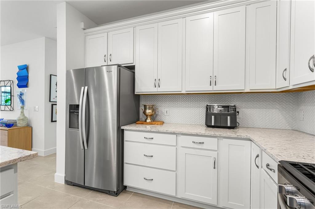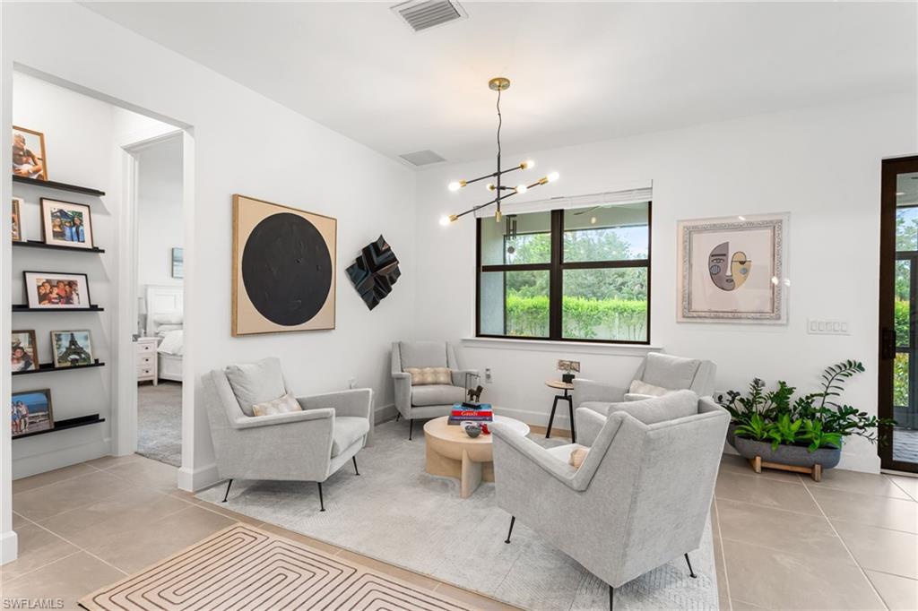 Welcome to Ventana Pointeu2014a gated, boutique community where modern design meets day-to-day convenience. Built in 2023, this Mystique lives large with 3 bedrooms + den, 2 baths, and ~2,214 A/C sq ft on a quiet preserve homesite set well away from the main road and facing a wooded area/golf courseu2014itu2019s exceptionally peaceful and has been kept in like-new condition. Inside youu2019ll find a quartz chefu2019s kitchen with gas range and stainless appliances, a tray-coffered great room ceiling, 8' interior doors, upgraded tile flooring, and full impact-rated windows and doors. The luxury primary suite features a generous walk-in closet, frameless glass shower, and dual sinks. A spacious screened lanai is ready for an outdoor kitchen and future pool/spa. Lifestyle is truly low-maintenanceu2014the HOA handles lawn/landscaping, and with all impact glass you can simply lock the door and go. Practical perks include an inland location with no mandatory flood insurance (buyer to verify), remaining builder/structural and appliance warranties, fiber-optic internet, and a resort-style community pool nearby. Everyday essentials at Founders Squareu2014dining, coffee, fitness, servicesu2014are minutes away, and Naplesu2019 beaches are an easy drive for sunset walks. Schools: BEAR CREEK ELEMENTARY SCHOOL, OAKRIDGE MIDDLE SCHOOL, GULF COAST HIGH SCHOOL