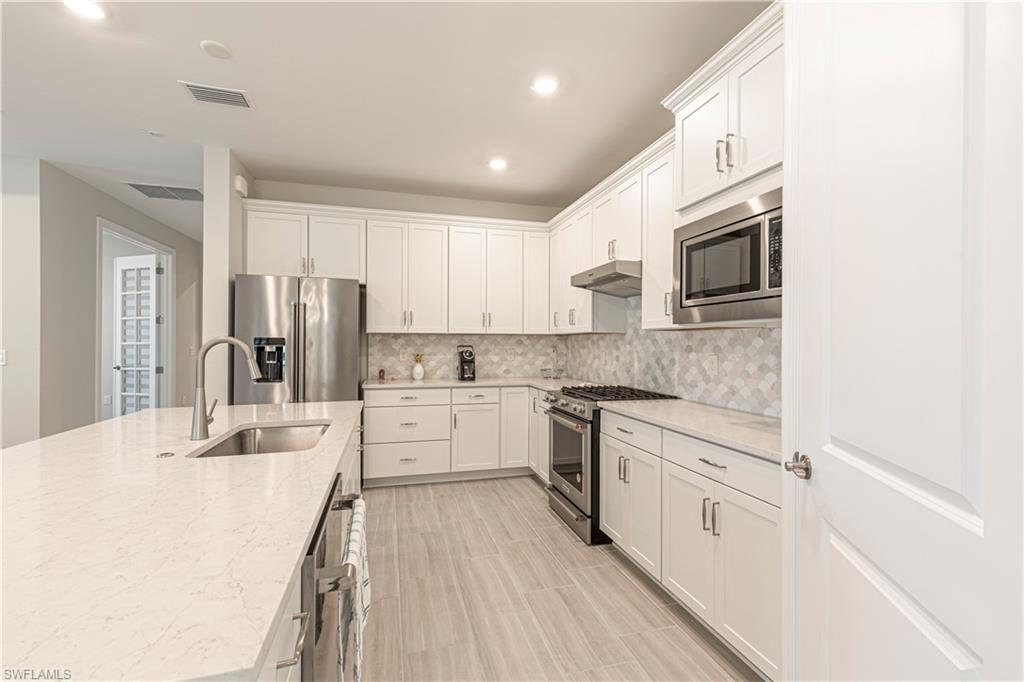 Discover Ventana Pointe, an exclusive enclave of just 77 homesites , offering a perfect blend of comfort and convenience for both empty-nesters and families. As one of the rare natural gas communities in North Naples, Ventana Pointe offers efficient, modern living in an intimate setting. The Mystique floor plan showcases an inviting open-concept design with 3 spacious bedrooms, a versatile den, and 3 full baths, including a private ensuite in one of the guest bedrooms. The gourmet kitchen is equipped with stainless steel appliances, elegant quartz countertops, and smart home technology for effortless living. Enjoy your private backyard in your large, covered lanai, perfect for entertaining or personalizing with an optional private pool. Residents also have access to the community pool and cabana for additional relaxation and socializing. Ventana Pointe is in a top-rated school district, and is just 10 miles from the stunning Gulf beaches, and less than 10 minutes from premier shopping and dining, including the new Founders Sqaure. It offers luxurious living, rare natural gas amenities, and everyday convenience in sought-after North Naples.