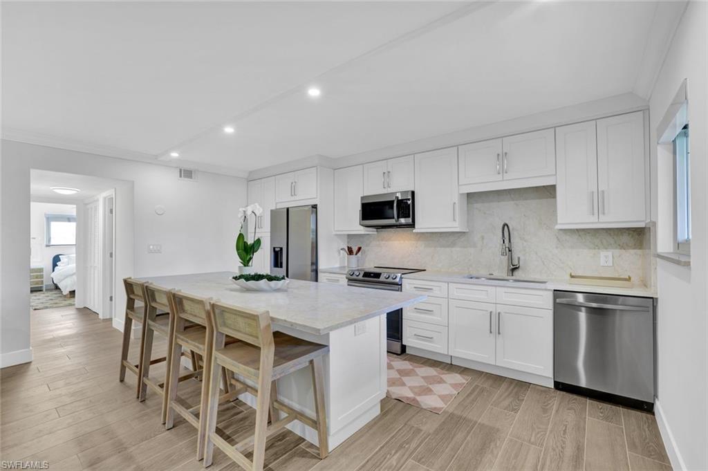 Beautifully remodeled and meticulously maintained end-unit, this 2-bedroom, 2-bath condominium offers exceptional coastal living directly across the street from the beach along prestigious Gulf Shore Boulevard. The light and bright interior features a thoughtfully updated design with a modern kitchen that opens to the living and dining areas, creating an inviting space for both relaxing and entertaining. Impact-resistant windows provide added peace of mind and storm protection. Ideally located in the heart of one of Naplesu2019 most exciting areas of transformation, the property is directly across the street from the upcoming Four Seasons Resort. Just two blocks from Loudermilk Park, residents enjoy easy access to the beach, green space, and outdoor recreation.The surrounding area is being enhanced with streetscape improvements, landscaping, public art, and new dining and retail experiences designed to elevate the pedestrian lifestyle. Enjoy breathtaking sunsets just steps away and take advantage of the luxury restaurants and amenities emerging nearby. All of this is just minutes from the world-class shopping, dining, and charm of Olde Naples, Fifth Avenue South, and Third Street South.