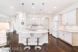 Welcome to your dream home in the highly sought-after community of Artesia/Naples! This stunning single-family home boasts 2 bedrooms, 2 bathrooms, a 2-car garage, and an office, providing ample space for you and your family. Situated on a corner lot on a quiet Cul de sac street, this home offers privacy and tranquility. The primary bedroom features a spacious walk-in closet, perfect for all your storage needs. Step outside to the oversized screened lanai, where you can enjoy outdoor entertaining with friends and family. The great room showcases a tray ceiling with crown molding, adding a touch of elegance to the space. French doors lead you into the den, creating a cozy and inviting atmosphere. The kitchen is a chef's delight, with quartz countertops, white appliances, and a walk-in pantry for all your culinary essentials. The laundry room is equipped with a sink, and cabinets for extra storage, making chores a breeze. Artesia residents enjoy the community clubhouse which features a resort style pool, pickleball and bocce ball courts, fitness room, billiards, movie theater, library, aerobics room, card room and catering kitchen. For the Artesia `fur` persons there is their own park. Move in ready and being offered furnished. Don't miss out on the opportunity to make this beautiful home yours!