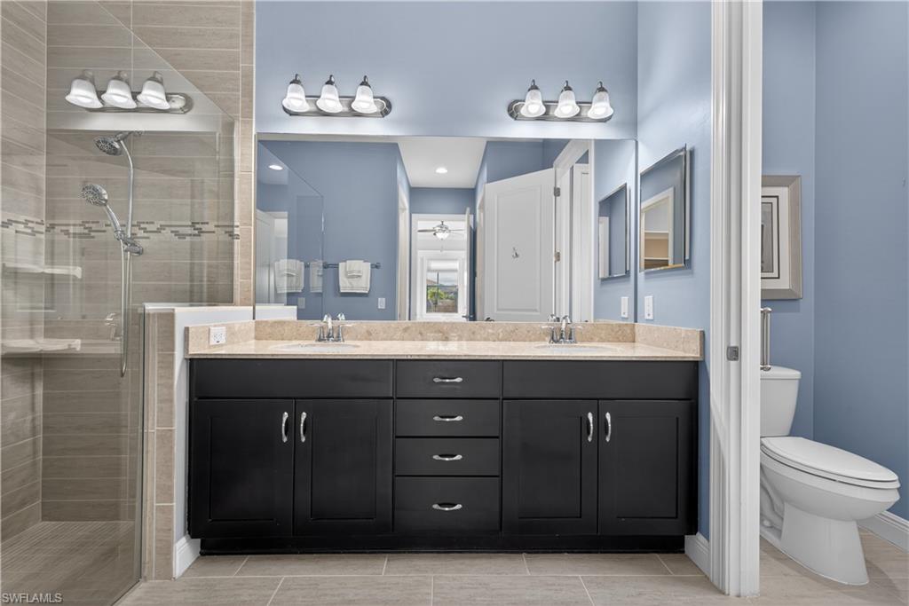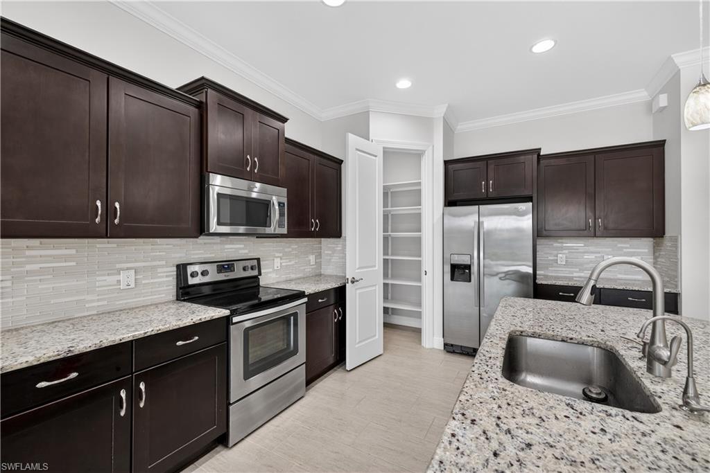 Tranquil Lake Views & Luxury Upgrades await you in this one story 3 bedroom WCI Home with a transferrable flood policy! Designed for comfort and style, this meticulously crafted 3 bedroom + flex room/dining room home boasts elegant hand crafted molding, tile flooring throughout, and lighting that enhance its sophisticated charm. The open-concept layout seamlessly blends indoor and outdoor living, with peaceful lake views from the kitchen, great room, and primary suite. The kitchen is an entertainers dream, featuring a spacious island, granite countertops, stainless steel appliances, tile backsplash, soft-close dovetail drawers, and a walk-in pantry. Wake up to stunning sunrise lake views from your luxurious owneru2019s suite, complete with dual vanities, a private water closet, a tiled walk-in shower with listello, and two large walk-in closets. There is plenty of room for family and friends in the 2 generous sized guest bedrooms. Unwind in multiple outdoor spacesu2014whether on the screened front porch, the large covered lanai (plumbed for an outdoor kitchen with plenty of room for a pool and a spa), or the extended screened lanai enhanced with no-see-um screens for added comfort. For peace of mind, this home is equipped with a security system, impact-resistant doors, windows and a transferrable flood policy for $1083 per year. Nestled amid the serene natural beauty of the Rookery Preserve, Artesia offers a peaceful retreat while keeping you close to downtown Naples and Marco Island. This prime location puts you just minutes from world-class dining, shopping, golf courses, boating, fishing, and the pristine beaches of the Paradise Coast. Enjoy an array of resort-style amenities including a sparkling pool, billiard room, card room, theater, fitness center, and library, plus a full calendar of FUN social activities. Whether you prefer a leisurely stroll or bike ride along the scenic lakes, a competitive game of pickleball, bocce, or spending quality time with your fur babies at the dog park, this 261-acre pet-friendly community has something for everyone. With NO CDD fees and low HOA dues that include FREE cable, high-speed internet, and lawn maintenance, Artesia offers exceptional value in a peaceful yet vibrant setting. The Florida lifestyle awaits you in your like new waterfront retreat!