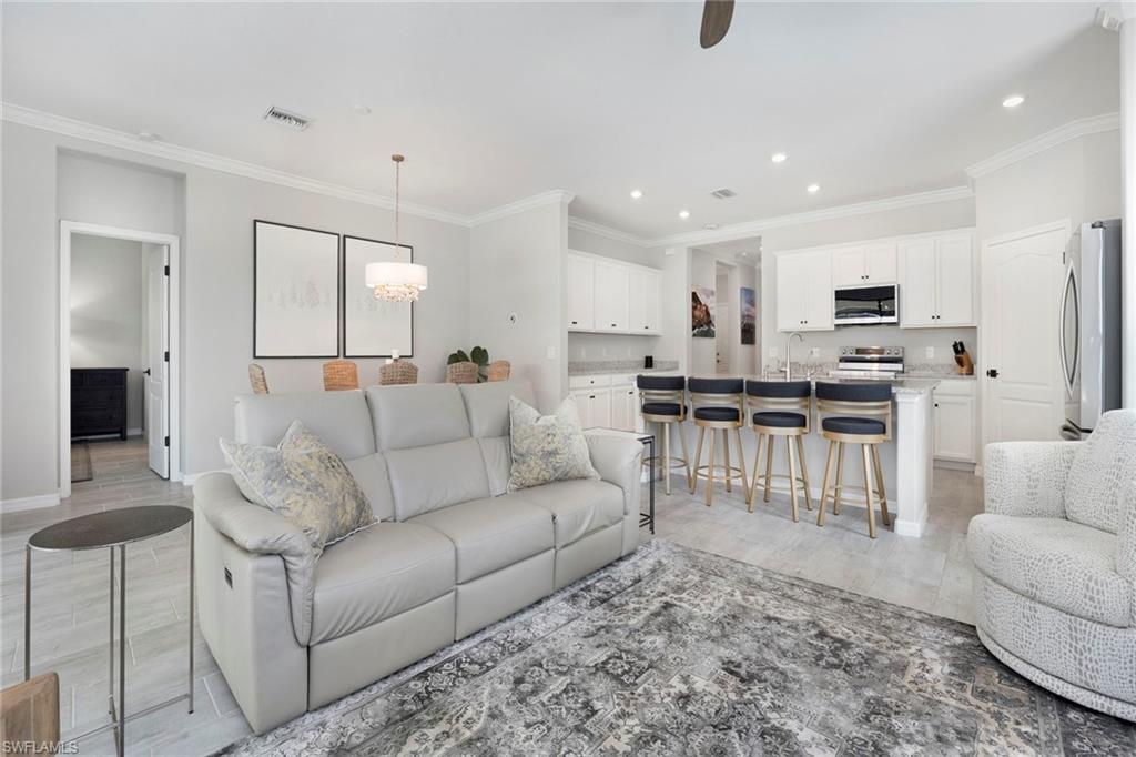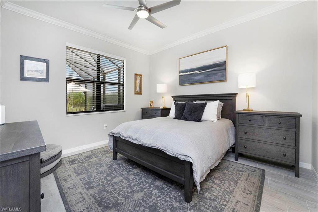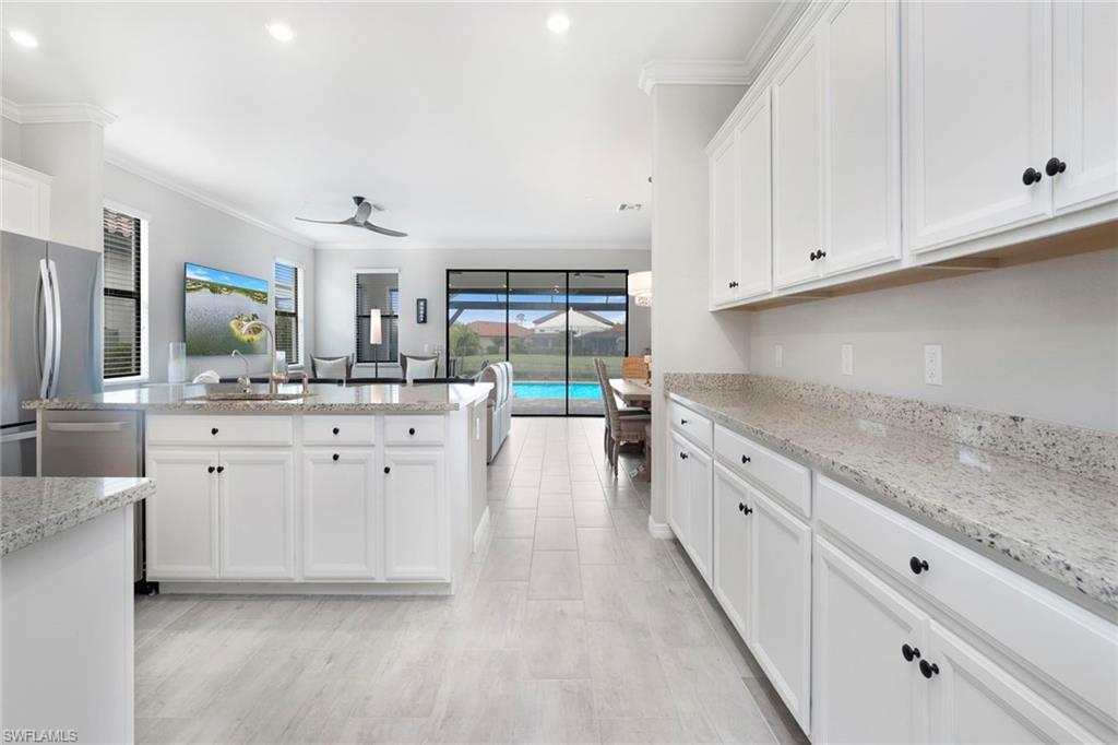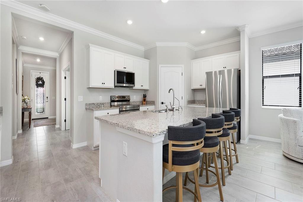 Experience refined living in this immaculate and elegantly appointed Marsala model, offering three bedrooms plus a den (optional fourth bedroom) and three full baths. On a premium homesite, this residence captures stunning lake and nature preserve views, creating a serene backdrop for the most dramatic evening sunsets. Go outside to your private outdoor oasis featuring one of the largest lanais in the neighborhood with an impressive 30 feet deep cage with no-see-um screens. The spectacular 2023 custom-designed pool is the centerpiece, complete with four soothing hydrotherapy body jets and relaxing sun shelf. Inside, the gourmet kitchen is a chefu2019s delight with an oversized breakfast bar, granite countertops, newer premium stainless-steel appliances, stylish dining chandelier and spacious walk-in pantry. The open-concept layout flows effortlessly into the great room, creating a bright, inviting space ideal for gatherings. The luxurious primary suite offers sweeping lake and preserve views, complemented by a spa-inspired bath featuring dual vanities, large walk-in shower, soaking tub, private water closet and dual walk-in closets. Two additional guest rooms, including a private en-suite with full bath, ensure comfort and privacy for guests. Throughout the home, meticulous upgrades elevate every detail, from upgraded interior door hardware and hinges to elegant crown molding, recessed lighting and stylish tile flooring throughout (no carpet). Valuable upgrades include a Culligan water filtration system, a whole-house surge protector, upgraded electrical for generator hook-up, wall-mounted televisions, window blinds throughout, seven ceiling fans and a well-appointed laundry facility. Additional premium features include hurricane shutters for all windows and doors, a durable epoxy-coated garage floor, heavy-duty storage shelving with 800-pound capacity, and an elegant brick paver driveway and entryway. Artesia is one of Naples sought-after upscale gated communities, known for its luxurious amenities and active lifestyle. The definition of peaceful living, Artesia is along the southern and western edges of Rookery Bay, a protected national estuarine reserve, where the community enjoys a rare kind of serenity surrounded by peaceful nature. Just minutes from beaches of Naples and Marco Island, Artesia offers a boutique setting where natural beauty and convenience meet. The modern clubhouse hosts lively community social events and features a resort-style pool, three pickleball courts, two bocce ball courts, billiards, fully equipped gym and movie theater. Residents also enjoy exercise and craft classes, as well as beautiful lakeside walking path and dog parks. Short drive from downtown Naples and Marco Island, this home offers the best of both worlds like a peaceful, luxurious community and proximity to vibrant local attractions. HOA fee includes cable/internet. No CDD fee. Click link for 3D tour and floor plan.