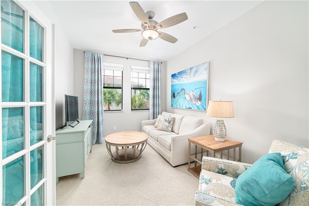 This one owner, oh so spacious second floor furnished carriage home the, St. Andrews Model from `WCI,` is the perfect year-round residence or seasonal getaway! Upon entry, you will be taken with the fabulous view and the open floor plan. Its southern exposure makes it feel so light and bright. You will fall in love with the fabulous view and open floor plan. This home offers 3 bedrooms plus den, a large great room combining the kitchen, dining and living areas, perfect for entertaining. The 28' x 9' lanai will be a favorite spot to relax all winter long. This is the perfect place to spend your early morning or late afternoon hours while enjoying the changing colors of the sky. The wildlife you may see from the lanai, whether in the air or on the ground, are compliments of Rookery Bay Reserve. The kitchen boasts a large island, stainless appliances, plenty of storage via the abundance of cabinets and pantry. The spacious primary bedroom is the perfect retreat to begin or to end your day. The ensuite primary bathroom features a double sink vanity, water closet, frameless walk-in shower, and an enormous walk-in closet. Guests will enjoy private quarters with additional bedrooms privately tucked away on the opposite side of the home. The guest bathroom features a tub/shower combination, perfect for children and grandchildren. Included in the two-car attached garage is a refrigerator/freezer for extra `beverages` and snacks! The Artesia Clubhouse is designed as the community's social and recreation hub; the clubhouse compliments the way you live. Indoors you can stay in shape at the state-of-the-art fitness center, play a rousing game of billiards or gather with friends at the coffee bar for a morning cup of coffee. Outside the clubhouse campus, enjoy a relaxing swim in the resort-style pool, play a spirited game of pickleball, bocce ball or let the dog romp around the dog park. Artesia awaits your arrival - Welcome Home!