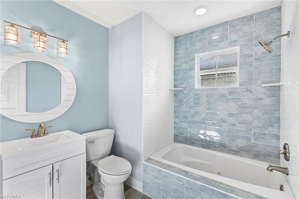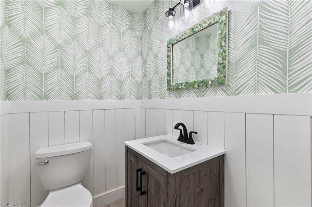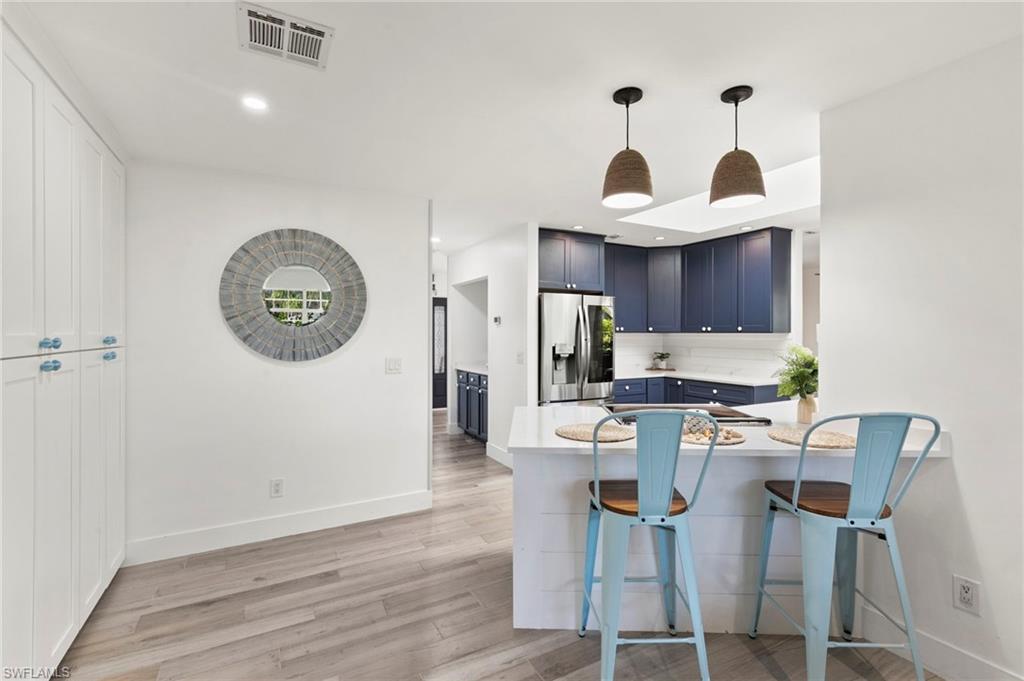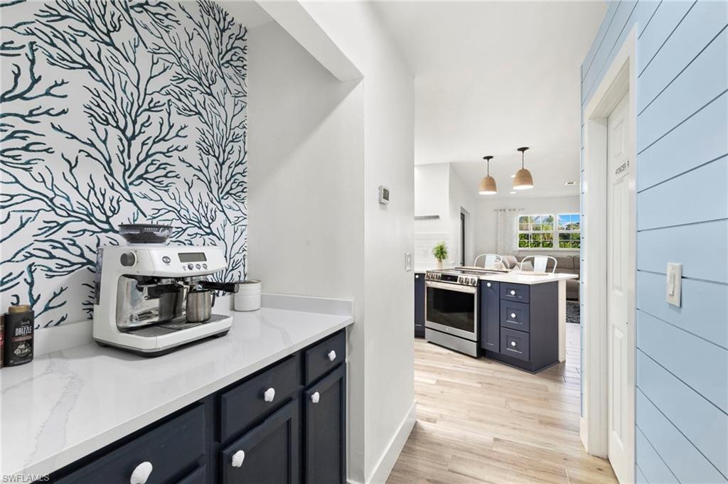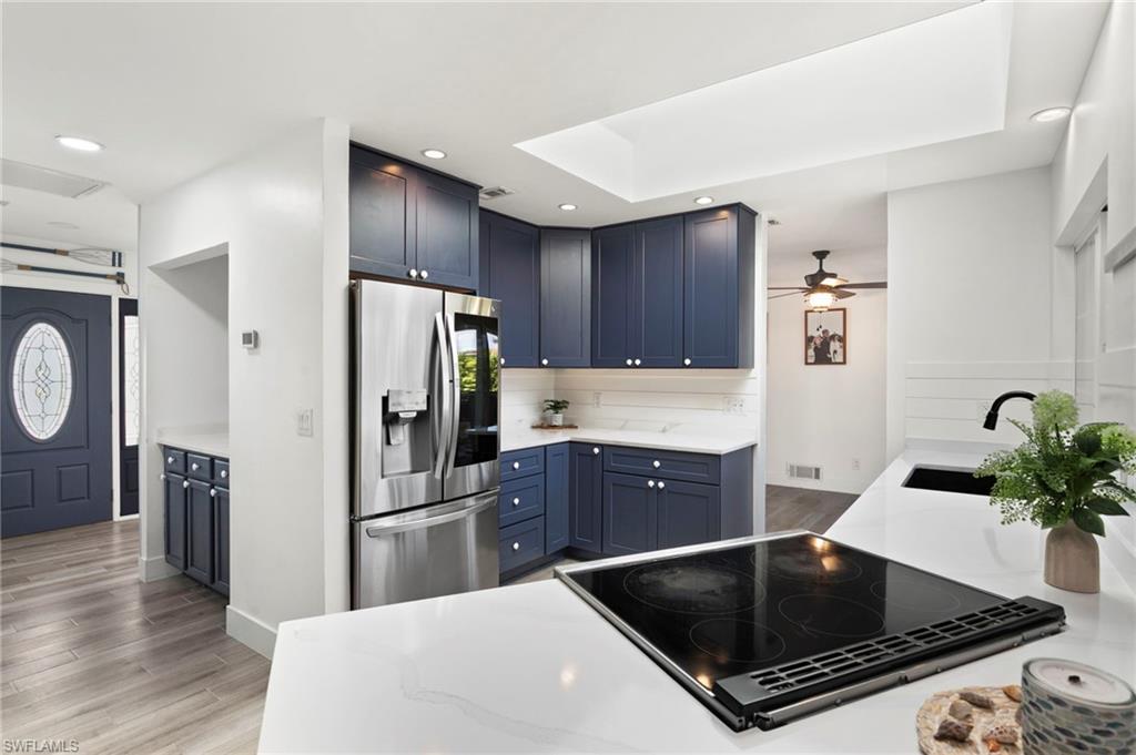 This stunning, fully updated Isles of Capri residence sits on an oversized lot and embodies timeless island charm. Featuring 3 bedrooms, 2.5 baths, and a 2-car garage, this elevated home blends style, comfort, and functionality throughout. Step inside to discover thoughtfully curated coastal details u2014 from classic shiplap accent walls and a custom dry bar to elegant lighting, a kitchen skylight, and new tile flooring that flows seamlessly from room to room. The inviting living area showcases a custom feature wall with an electric fireplace, creating the perfect retreat after a day on the water. The ideal split-bedroom layout ensures privacy, with the primary suite offering lanai access and a beautifully updated en-suite bath complete with dual sinks, a smart mirror, and a walk-in shower. Enjoy outdoor living on the spacious screened lanai, featuring a custom bar u2014 perfect for entertaining or simply soaking in the island breeze. The newly landscaped yard, enhanced with colorful blooms and lush clusia hedges, creates a true tropical oasis. Additional upgrades include a brand-new roof and epoxy-finished garage floor, providing both peace of mind and lasting appeal.