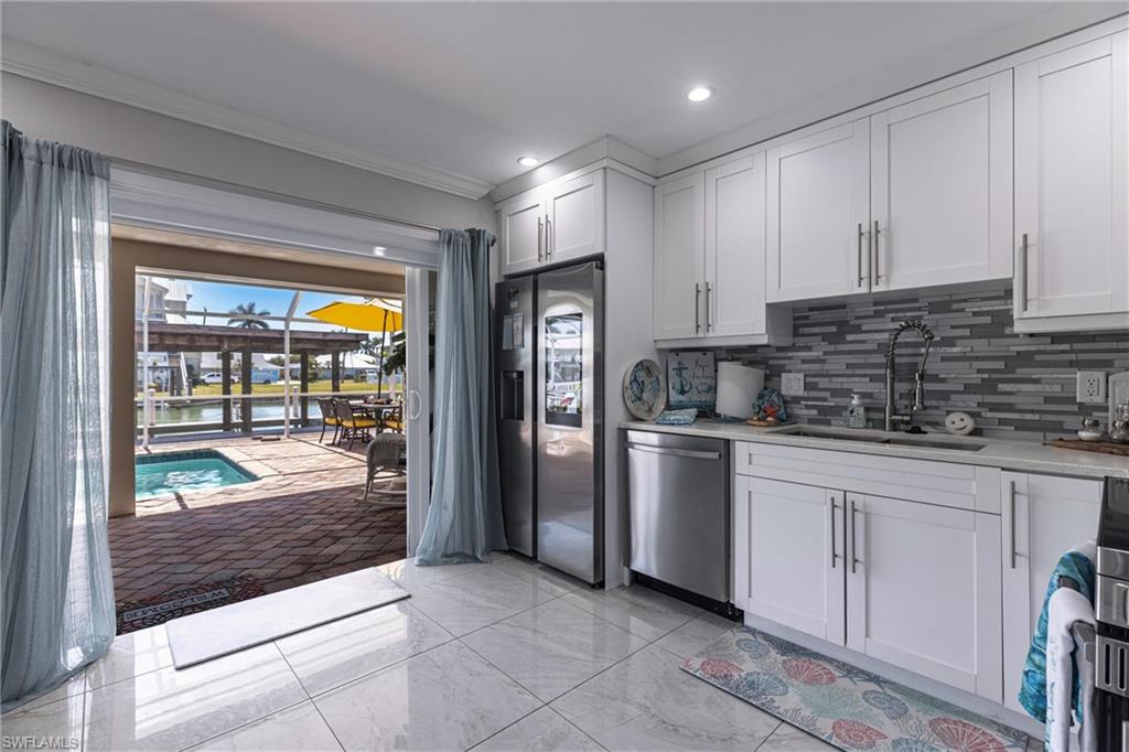 Offered Under Appraised Value! Gulf-Access, Pool home with Deep Water, No Bridges and a Private Covered Dock, placing you in the Gulf of America within minutes. Perfectly Positioned with Southwest Exposure, the property showcases Stunning Sunsets from the Backyard, Pool, and Expansive Paver Patio. Inside, the home features an inviting open floor plan with tile flooring throughout, creating a bright, coastal feel. The updated kitchen includes quartz countertops and newer appliances, ideal for cooking or entertaining. Large windows bring in abundant natural light and highlight the homeu2019s relaxed island ambiance. Enjoy the best of the Florida Lifestyleu2014Fish from your Dock, Cruise to Nearby Islands, or Unwind by the Pool in this Peaceful waterfront community. Located just minutes from Marco Island and a short drive to Naples Beaches, this property offers the Perfect Balance of Privacy and Convenience. Whether you Love Boating, Nature, or Simply Breathtaking Sunsets, this home is a standout opportunity in a highly sought-after location!