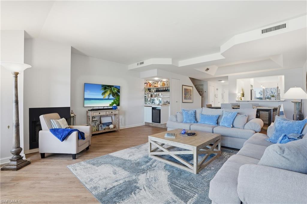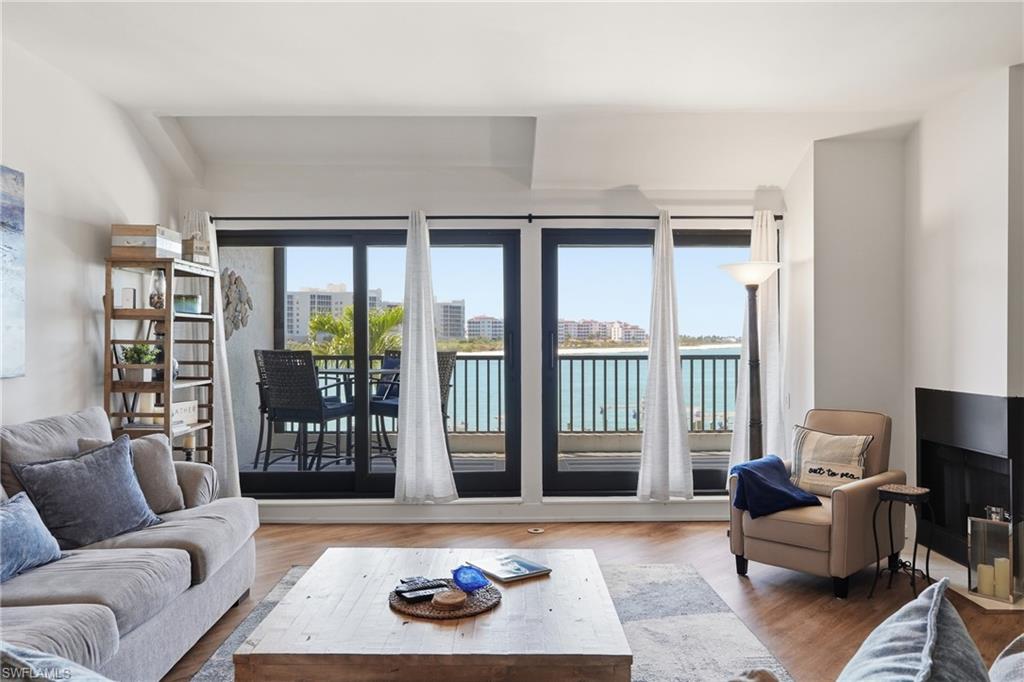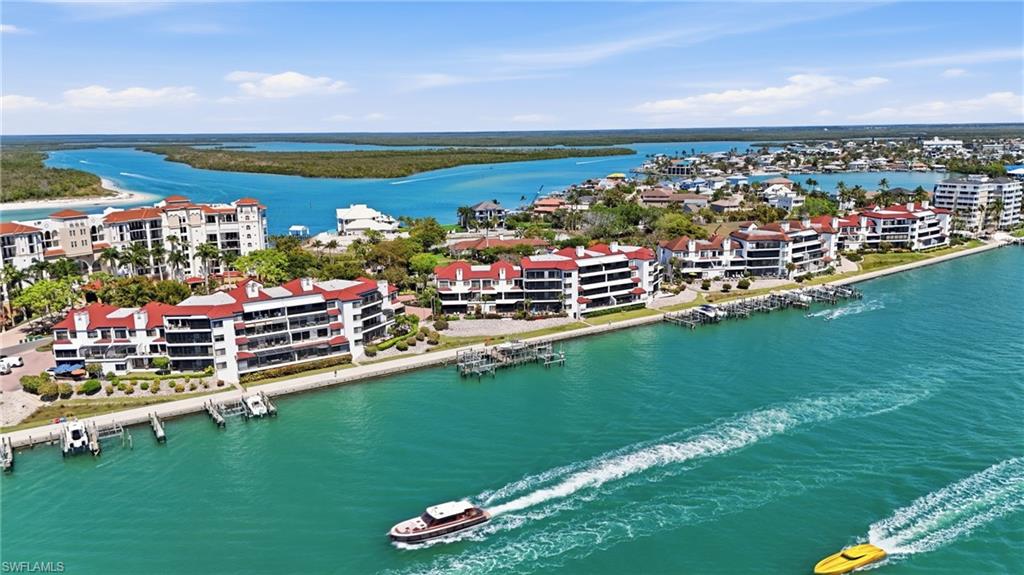 Experience the beauty of Gulf Coast luxury waterfront living at Isles of Capri in this exceptional 2 bedroom, 2.5 bath coastal residence offering breathtaking, panoramic views of the Gulf of Mexico and the Marco River. Located in the highly sought-after La Peninsula community near Marco Island, this light-filled condominium blends elegant design, comfort, and spectacular waterfront scenery. The open-concept living, dining, and kitchen spaces create a seamless flow that is perfect for entertaining or relaxing while enjoying wide-angle water views. Natural light fills the residence, enhancing the tranquil coastal atmosphere. The primary suite is a serene retreat, featuring expansive water views and a spacious ensuite bath with dual vanities, a jetted soaking tub, and a separate walk-in shower, creating a spa-like environment for relaxation. The guest suite, complete with its own private bath, provides exceptional comfort and privacy for visiting friends and family. Step onto the private balcony to enjoy peaceful waterfront livingu2014perfect for morning coffee, sunset cocktails, and watching dolphins and boats pass along the Marco River. With both sunrise and sunset views, the setting is truly unforgettable. Ideally located just minutes from Marco Island and a short drive to downtown Naples, this home places you close to world-class beaches, boating, championship golf courses, fine dining, and upscale shopping. Residents of La Peninsula enjoy a variety of resort-style amenities, including a waterfront community pool and spa, state-of-the-art fitness center, and an amazing clubhouse featuring game and library areas. The community also offers beautifully landscaped walking paths within a gated setting, surrounded by lush tropical landscaping. Nestled within a peaceful coastal community, this residence offers the perfect blend of privacy, luxury, and convenience, making it an exceptional opportunity for full-time living, a seasonal retreat, or a Southwest Florida waterfront investment.