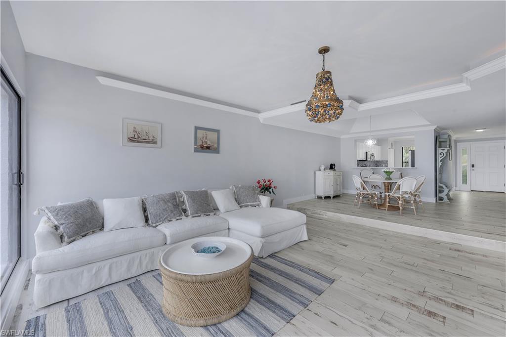 This stunningly revamped 2-bed, 2.5-bath coastal residence captures sweeping vistas of the Marco River and the Gulf of Mexico, offering an incomparable taste of Gulf Coast luxury. Step inside to a light-filled, open-concept design where the living, dining, and kitchen spaces blend seamlesslyu2014ideal for both effortless everyday comfort and stylish entertaining. The gourmet kitchen showcases GE Cafu00e9 appliances, bespoke cabinetry, and refined quartz countertops, achieving the perfect balance of beauty and performance.The expansive owneru2019s suite serves as a serene retreat, treating you to wide-angle water views each morning. Its spa-inspired bathroom features dual vanities, a soaking tub, and a walk-in shower, creating an atmosphere of pure relaxation. The guest suite, complete with its own private bath and generous storage, offers exceptional comfort and privacy for friends and family.Sip your morning coffee or unwind with an evening glass of wine on the private balcony, where sunrises, sunsets, and lush tropical surroundings paint a picture of tranquil waterfront living.Residents of La Peninsula enjoy an array of upscale amenities, including a sparkling pool, soothing spa, state-of-the-art fitness center, contemporary clubhouse with game and library areas, and beautifully landscaped walking paths. Ideally situated just minutes from Marco Island and a short drive to Naples, the property places you close to premier dining, shopping, golf, and world-renowned beaches.Nestled within a peaceful and charming coastal community, this residence delivers the perfect blend of privacy, elegance, and convenience.