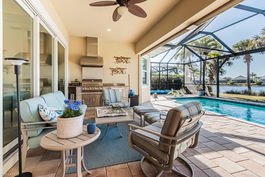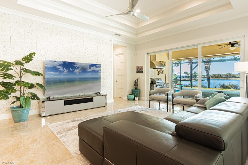 Positioned along one of the most coveted waterfront homesites within Isles of Collier Preserve, this exceptional TURNKEY residence captures breathtaking, uninterrupted long-lake vistas that stretch across open water and deliver spectacular northwest sunset skies each evening. Located at 5065 Tortola Court, the home offers a rare combination of tranquility, privacy, and mesmerizing sceneryu2014where the ever-changing reflections of water and sky become part of daily living.Thoughtfully designed with 2 bedrooms plus a versatile den, 2 full baths, and an additional powder room, the home encompasses over 2,100 square feet of refined interior space. Volume ceilings and expansive glass doors draw in natural light while framing the homeu2019s most remarkable featureu2014the sweeping panoramic lake view that serves as the focal point from the main living areas and primary suite.The outdoor living area is equally impressive, featuring a screened pool perfectly oriented to the northwest, providing front-row seating to Naplesu2019 signature sunset colors shimmering across the water. Whether relaxing poolside or entertaining guests, the expansive open-water backdrop creates an atmosphere of serenity and understated luxury. A gas outdoor kitchen and beverage cooler complete the functionality of the patio.Inside, the kitchen has been enhanced with quality upgrades including new Quartz 3mm counters and backsplash and generous workspace, seamlessly connecting to the main living and dining areas. Cooktop is induction for those that love to cook. Premium flooring selectionsu2014including a tasteful blend of porcelain tile and luxury vinylu2014complement the homeu2019s modern yet comfortable aesthetic. The owneru2019s suite offers a private retreat with dual vanities, and frameless glass shower, while the flexible den is ideal for a home office, media room, or guest overflow.Built in 2015 and meticulously maintained, the residence also includes, lanai, electric hurricane screen, pool, cover to retain heat, a two-car garage and the peace of mind that comes with newer construction. The A/C is new and a heat pump has been added.Residents of Isles of Collier Preserve enjoy an extraordinary lifestyle surrounded by nature and resort-inspired amenities, including a waterfront clubhouse, fitness center, resort and lap pools, pickleball and tennis courts, kayak launch, scenic walking and biking trails, and a community boat dock. All of this is just minutes from downtown Naples, Naples Bay, pristine Gulf beaches, fine dining, shopping, and marinas.A rare opportunity to own a waterfront home defined by one of the communityu2019s most beautiful and expansive long-lake views, where every sunset becomes a daily masterpiece.
