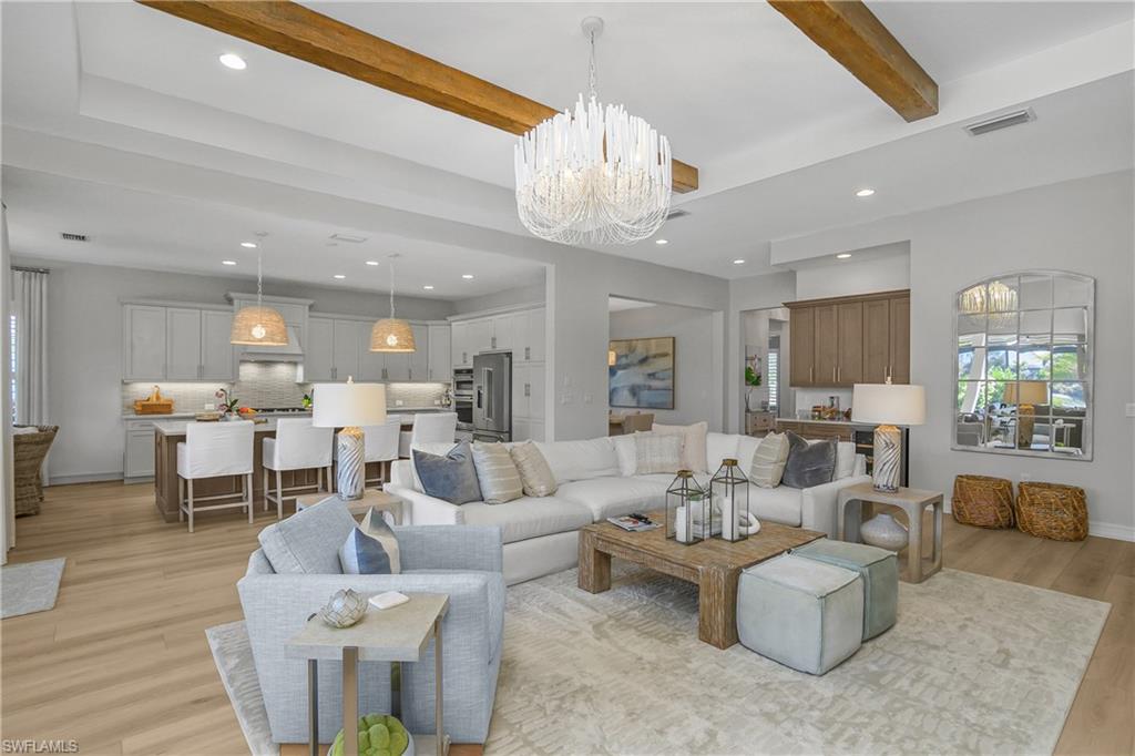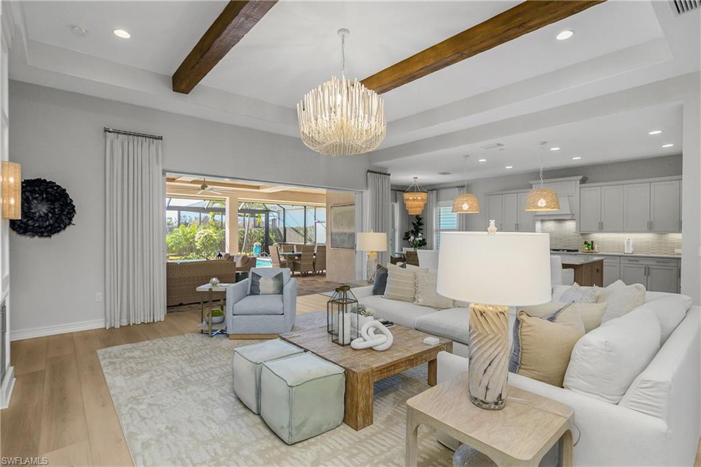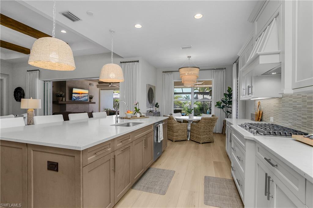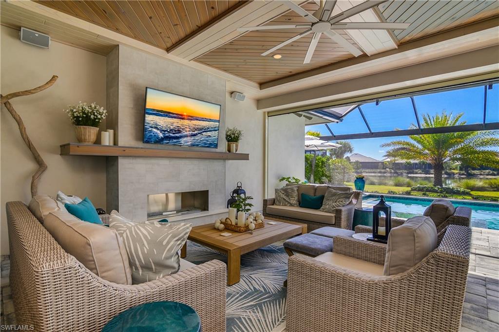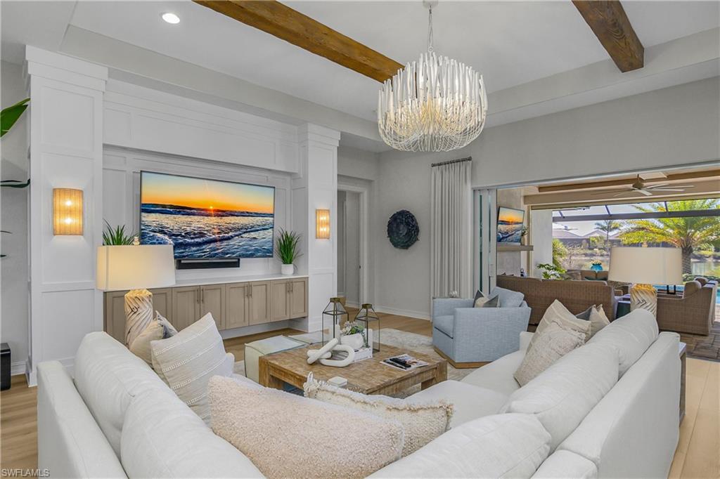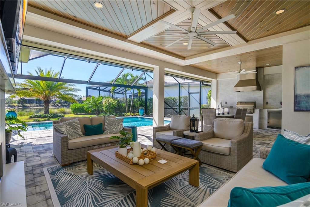 Welcome to perfection! Many updates inside and out. Custom millwork, new flooring, fixtures and window treatments, nothing has been left to do except to move in and enjoy. A Large corner lot, nearly half an acre, offers a Semi-Circle Driveway accented with beautiful landscaping and mature trees. A spacious family room is warm and accented with Custom wood beams, it merges nicely with the Island kitchen, that offers breakfast bar space, and dinette. Beautiful formal dining space seats 8! A large owner's suite provides two walk-in-closets with built-ins, a walk in shower, soaking tub. Guest bedrooms are generous in size, accented with shiplap detail. Expansive covered outdoor space features dining and casual seating areas, an outdoor kitchen with gas grill, gas fireplace and a beautiful pool and spa overlooking the lake. This home provides a cohesive design and feel. The Isles has been developed on more than 2400 acres nearly half dedicated to Natural Habitats. Residents enjoy Luxury Amenities at the Isles Club. The Clubhouse was modeled after the original Naples Beach Hotel of the late 1800's! The Overlook Bar and Grill is located on the water's edge. Pickleball and tennis and bocce ball courts, Kayaks and Paddle boards are provided. There is a lap and community pool and spa, sauna, modern full size fitness center, yoga and more! ICP is ideally located less than 5 miles from downtown 5th Ave and the beaches, Hamilton Harbor and more. Low HOA fees make this one of the premiere locations in all of Naples.