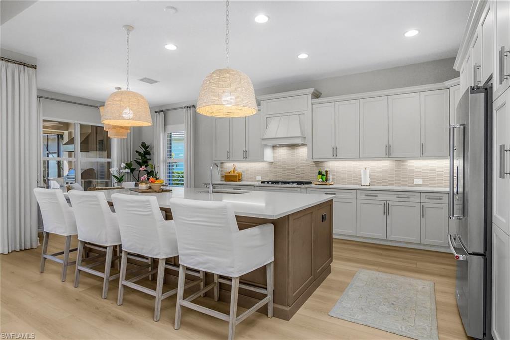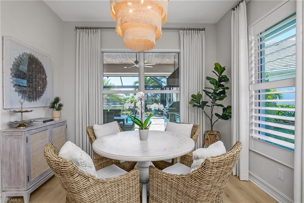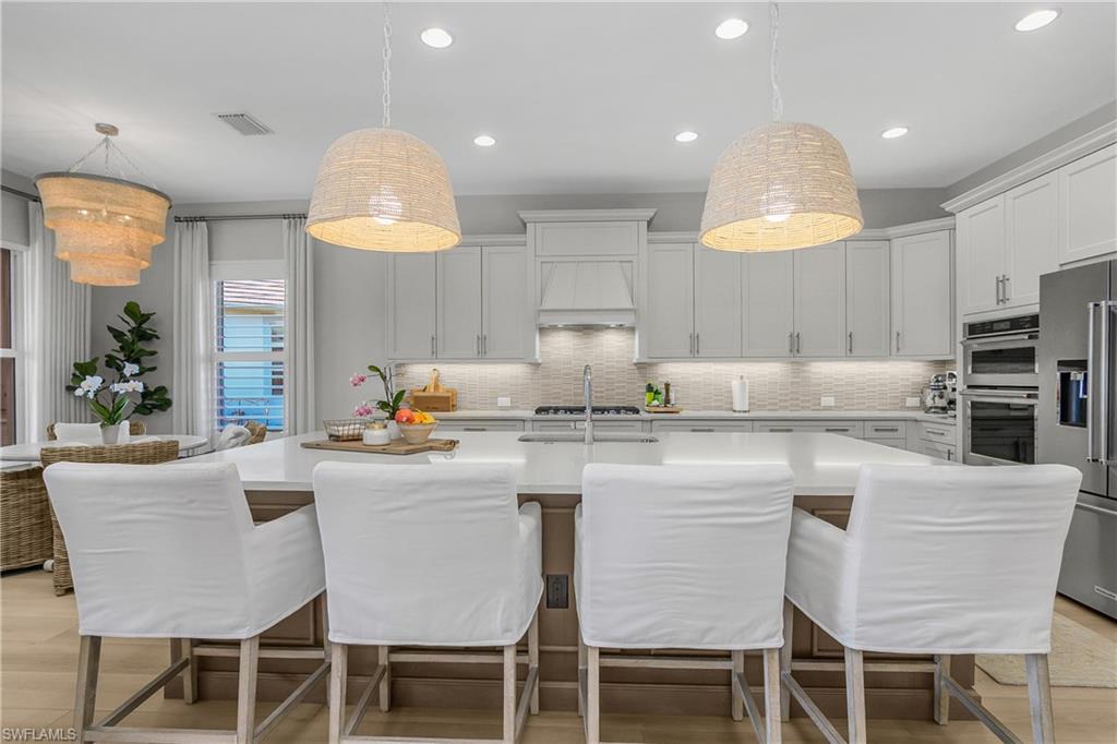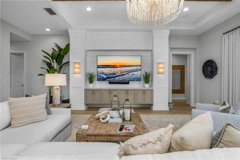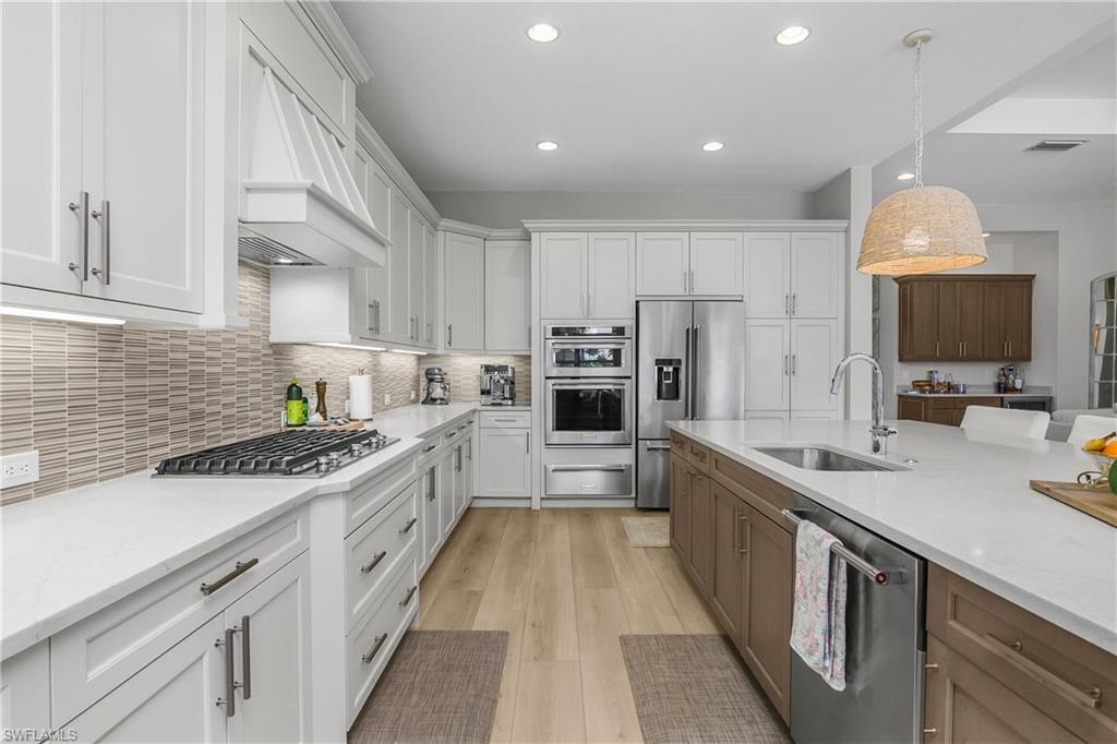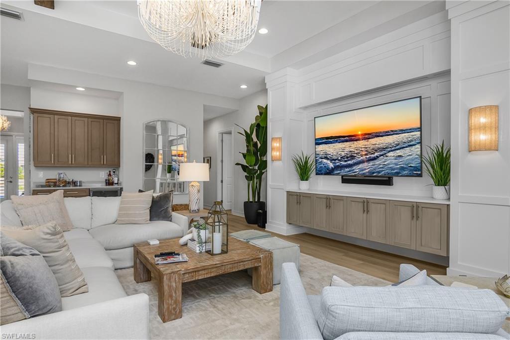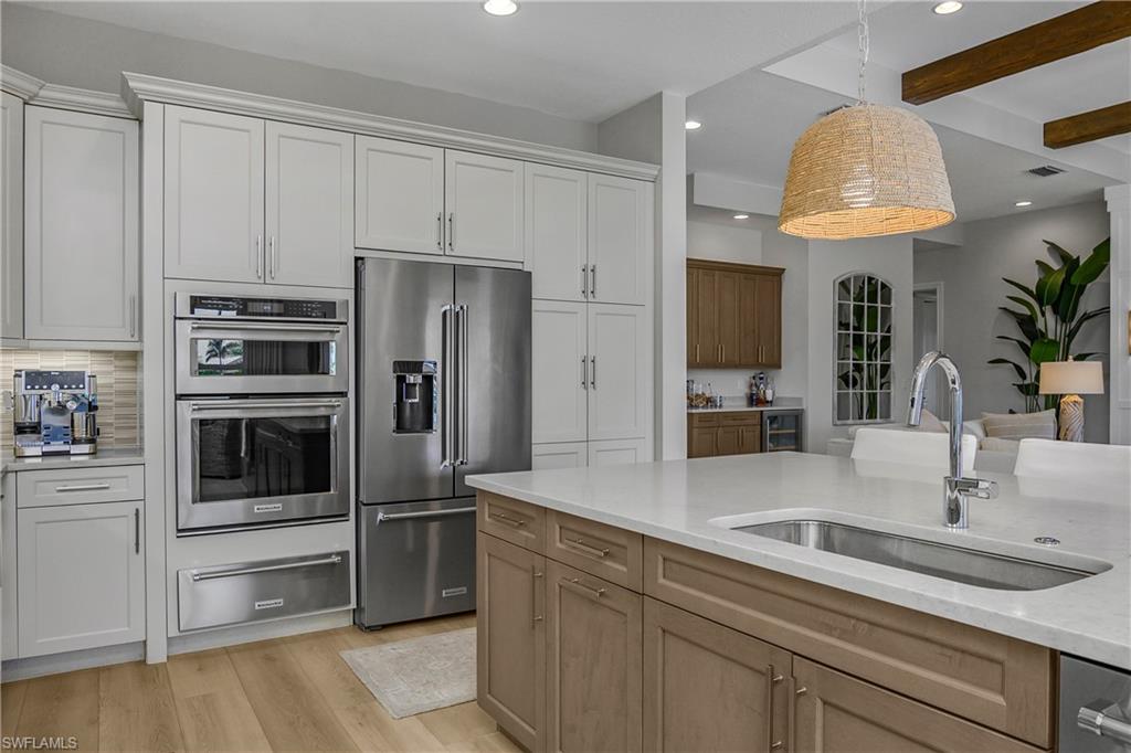 Welcome to perfection! Many updates inside and out. Custom millwork, new flooring, fixtures and window treatments, nothing has been left to do except to move in and enjoy. A Large corner lot, nearly half an acre, offers a Semi-Circle Driveway accented with beautiful landscaping and mature trees. A spacious family room is warm and accented with Custom wood beams, it merges nicely with the Island kitchen, that offers breakfast bar space, and dinette. Beautiful formal dining space seats 8! A large owner's suite provides two walk-in-closets with built-ins, a walk in shower, soaking tub. Guest bedrooms are generous in size, accented with shiplap detail. Expansive covered outdoor space features dining and casual seating areas, an outdoor kitchen with gas grill, gas fireplace and a beautiful pool and spa overlooking the lake. This home provides a cohesive design and feel. The Isles has been developed on more than 2400 acres nearly half dedicated to Natural Habitats. Residents enjoy Luxury Amenities at the Isles Club. The Clubhouse was modeled after the original Naples Beach Hotel of the late 1800's! The Overlook Bar and Grill is located on the water's edge. Pickleball and tennis and bocce ball courts, Kayaks and Paddle boards are provided. There is a lap and community pool and spa, sauna, modern full size fitness center, yoga and more! ICP is ideally located less than 5 miles from downtown 5th Ave and the beaches, Hamilton Harbor and more. Low HOA fees make this one of the premiere locations in all of Naples.