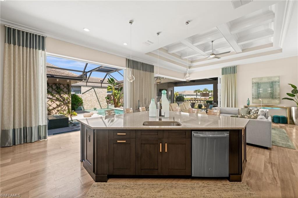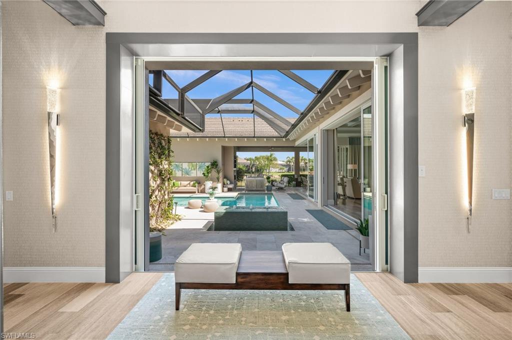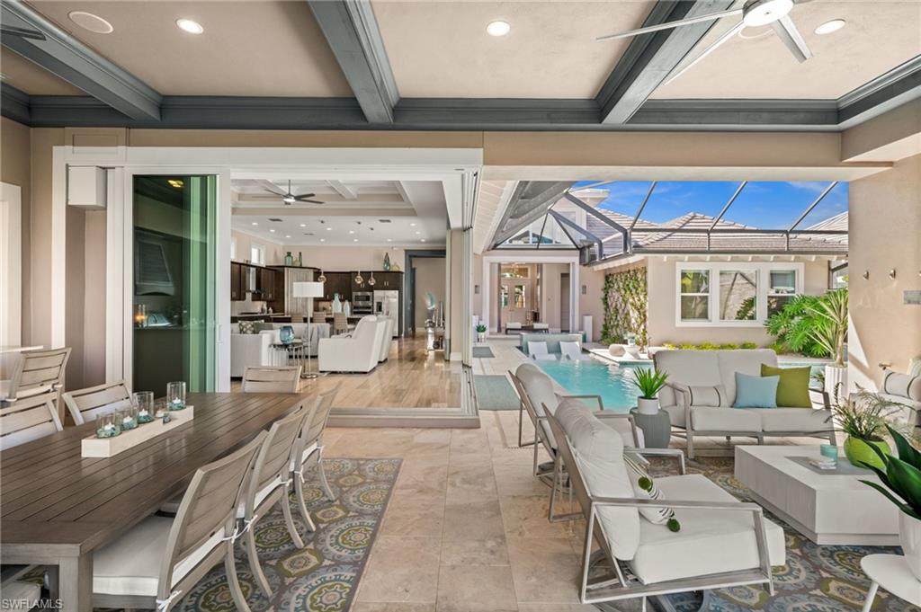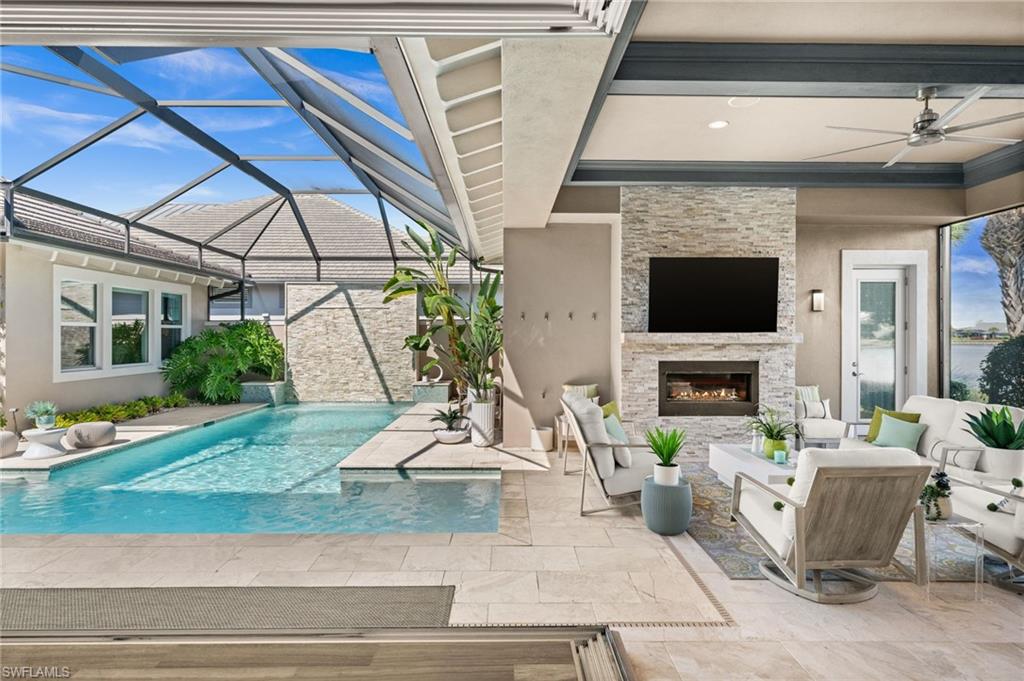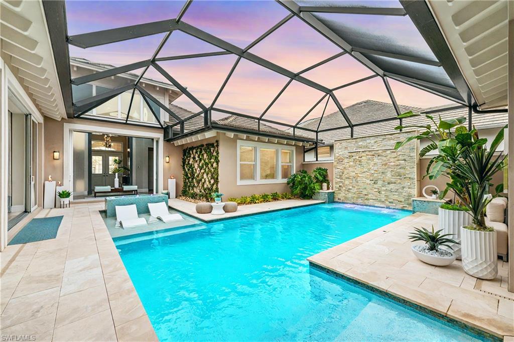 Where Lifestyle, Location & Luxury Converge.Discover refined coastal living in this designer residence in The Isles of Collier Preserveu2014recently recognized as one of Naplesu2019 most sought-after communities. Professionally designed landscaping and ambient lighting introduce this elegant Papyrus model courtyard estate, WITH BRAND NEW A/C, where indoor and outdoor living blend seamlessly around a private saltwater pool and lanai oasis.Step through double doors into soaring 20-foot ceilings and an open, airy layout filled with natural light. The homeu2019s elevated finishes include custom flooring, crown molding, solid-core paneled doors, and hurricane-impact sliders that open to panoramic lake views framed by picture-window lanai screens.Designed for entertaining, the chefu2019s kitchen features a gas cooktop, walk-in pantry, and under-cabinet lightingu2014flowing effortlessly to the great room and outdoor kitchen bar. The lanai offers a tranquil retreat with heated saltwater pool, cascading waterfall, modern tiki lighting, and a stone-front fireplace, all enhanced by a Sonos sound system with indoor/outdoor speakers.The primary suite is a private sanctuary with French doors, coffered ceilings, dual walk-in closets (with built-ins, seating, ironing board, and safe), and a spa-inspired bath featuring dual sinks, a large walk-through shower with dual heads, and decorative walls. A guest ensuite includes custom blackout shades, while the detached casita offers an additional full suite with bath and walk-in closetu2014ideal for visitors or extended stays.Function meets design with an air-conditioned, epoxy-floored two-car garage, plus a separate one-car garage with slat-wall and bike storage.Residents enjoy award-winning resort amenities at The Isles Clubu2014a resort and lap pool, fitness center, pickleball and tennis courts, bocce, pet park, and The Overlook Bar & Grill overlooking scenic waterways. With miles of kayak and hiking trails and convenient access to downtown Naples, 5th Avenue, Rookery Bay, and the Naples Botanical Garden, this home offers the perfect balance of luxury, nature, and proximity to everything Naples has to offer.