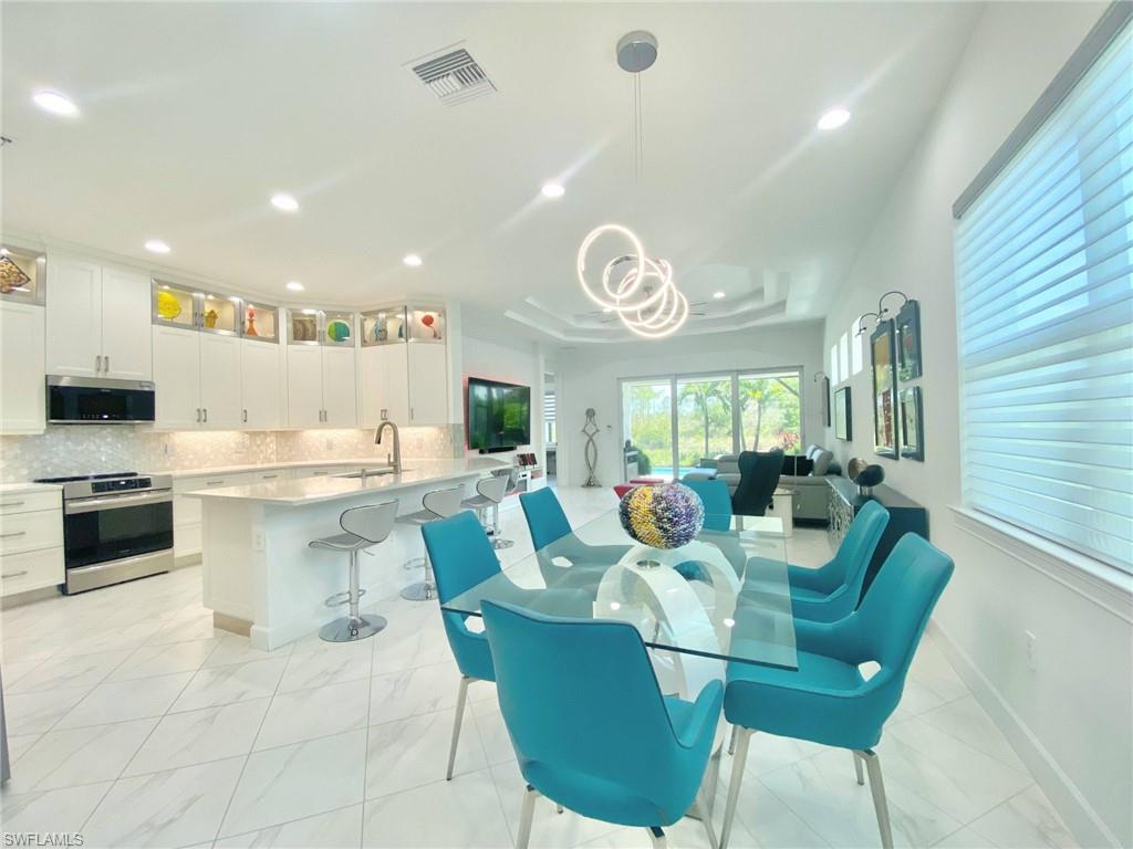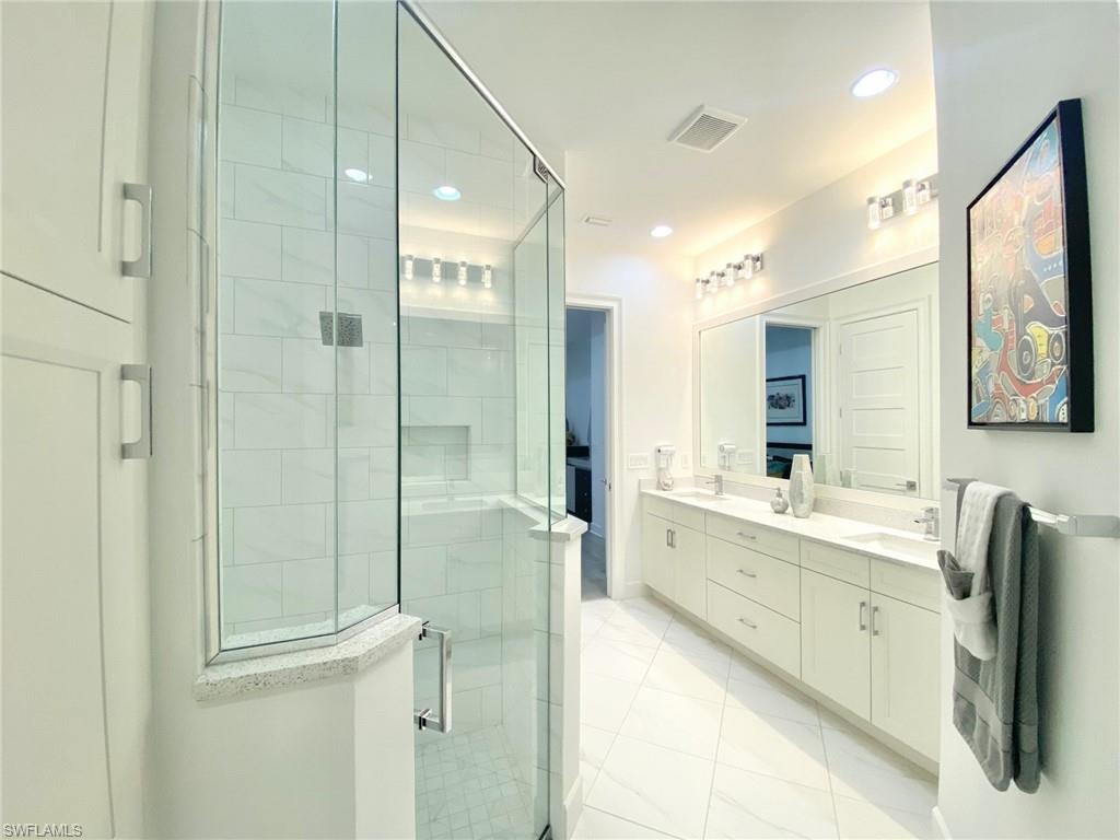 PREPARE TO BE WOWED!With over $200,000 in designer upgrades, this better-than-new, meticulously maintained Mimosa Villa offers rare privacy with sweeping water and preserve views u2014 and no homes behind you. Enjoy the spacious feel of a single-family residence with the ease of low-maintenance villa living, all within the gated, award-winning, nature-inspired community of The Isles of Collier Preserve.This 2,366 sq. ft. villa, located in a no-flood zone, radiates luxury: soaring 10u2019u201312u2019 double tray ceilings, an 85u201d custom TV wall, impact-resistant windows and doors, designer lighting and fans, quartz countertops, top-tier flooring (no carpet), custom motorized blinds, security system with wall safe, and motorized lanai storm shades. Even the laundry room has been elevated with a granite sink, custom cabinetry, and front-load washer/dryer on storage pedestals.The gourmet kitchen is a true showstopper. Featuring the largest island of all villa models, seamless raised-panel soft-close cabinets, high-end stainless steel appliances (including induction range with built-in air fryer and dual-zone wine fridge), pantry with pull-out shelves, and special-order stacked cabinetry to the ceiling with glass-front lighted uppers and crown molding. Custom stainless steel kick plates complete this one-of-a-kind culinary centerpiece.For entertaining, mix a cocktail at the built-in home bar and step out to your private tropical oasis. Relax in the heated saltwater pool and spa while savoring spectacular sunsets across your southwest-facing lanai. Surrounded by lush landscaping, water, and preserve views u2014 plus no-see-um screening u2014 youu2019ll enjoy unmatched privacy and comfort.Living at The Isles means being immersed in nature, with over half of its 2,400 acres devoted to preserves and waterways. Walk or bike eight miles of trails, kayak or paddleboard from the community launch, and enjoy pickleball, tennis, bocce, a resort-style pool with cabanas, a lap pool, dog park, state-of-the-art fitness center, year-round social events, and the waterfront Overlook Bar & Grill. This villau2019s neighborhood is the closest to all amenities u2014 so you can walk to everything!And when youu2019re ready to venture out, youu2019re adjacent to the US Open Pickleball Championships facility (with private community access), near top golf courses and yacht clubs, and just four miles from Naplesu2019 famed 5th Avenue and white-sand beaches.Move in now for the season! Donu2019t miss this one-of-a-kind preserve and waterfront villa, designed and lived in by an award-winning international artist who has created a true masterpiece for your Naples lifestyle. (Furnishings available separately.)