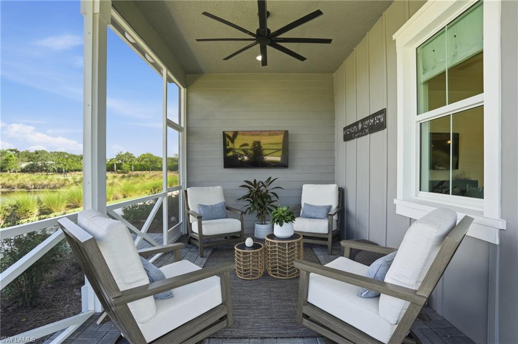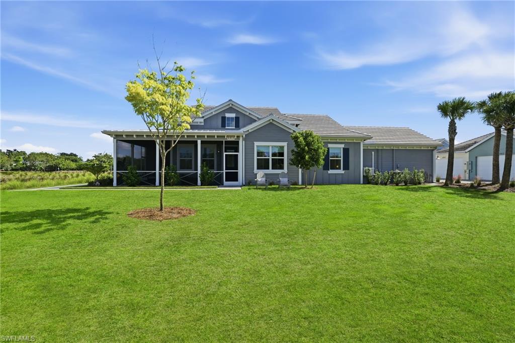 RARE oversized-lot cottage with unmatched privacy and sunset views! This designer-finished 2-bedroom + den, 2-bath coastal villa sits on a premium corner lot surrounded by long-lake and protected preserve views. Enjoy true indoor-outdoor living on your expansive wrap-around porch with west-facing sunset views and room to sip morning coffee or unwind with a glass of wine in your private outdoor living space.Built in 2024 and offered beautifully furnished (with a few exclusions), this charming home blends elevated modern finishes with cottage character at every turn. Step inside to discover a thoughtfully planned 1,411 sq ft layout with impact windows and doors, 6x36 wood-grain tile flooring throughout, soft-close cabinetry, upgraded lighting and fans, a custom primary closet, Moen fixtures, 5u00bcu201d baseboards, and a full smart-home system including Wi-Fi extender, video doorbell, keyless entry, and smart thermostat.The air-conditioned 2-car garage stands out with ceiling insulation, cabinetry, overhead hanging storage, and a utility sink. Every detail has been curated for comfort, quality, and convenienceu2014backed by a 10-year structural warranty and 5-year HVAC warranty for peace of mind.Located in the award-winning Isles community, residents enjoy world-class amenities: a resort clubhouse, fitness center, resort + lap pools, 6 tennis courts, 14 pickleball courts, kayak launches, dog park, miles of walking/biking paths, and the waterfront Overlook Bar & Grill. Every day feels like a vacationu2014yet you're just minutes from Old Naples, 5th Avenue, the Bayshore Arts District, shops, dining, and Naplesu2019 stunning white-sand beaches.A truly rare opportunity to own a cottage with privacy, charm, and sunset-soaked outdoor living in one of Naplesu2019 most sought-after communities.