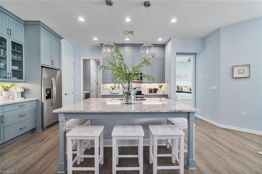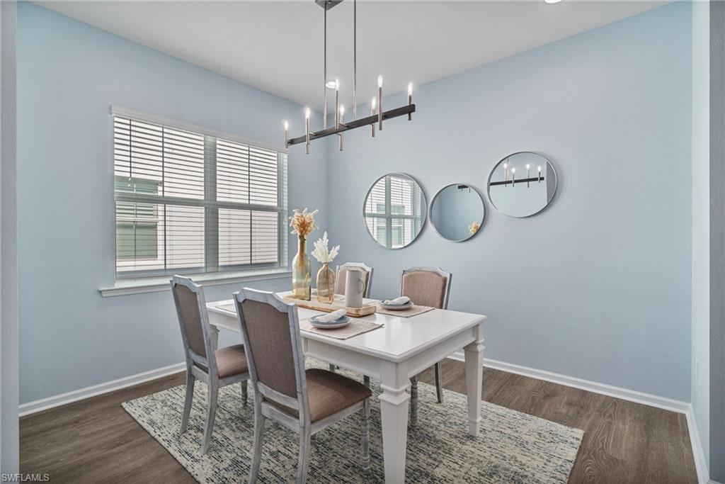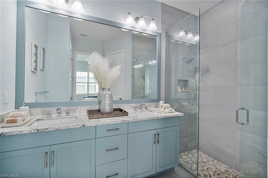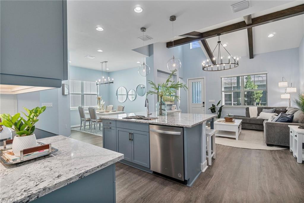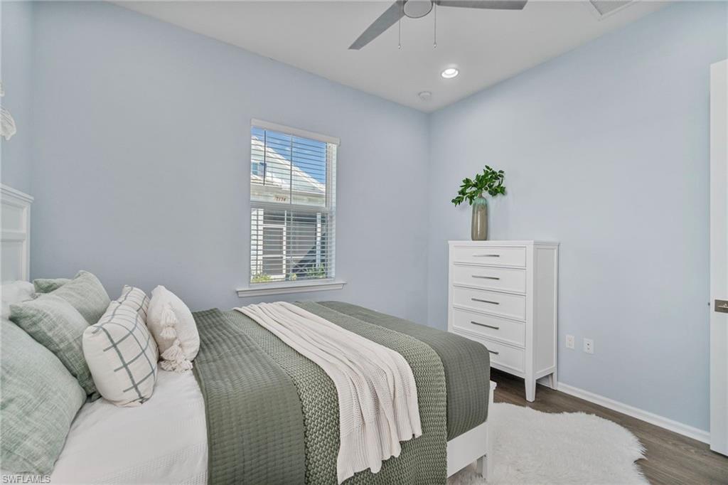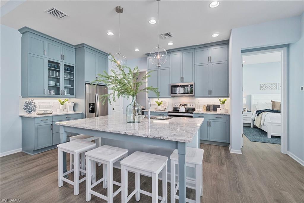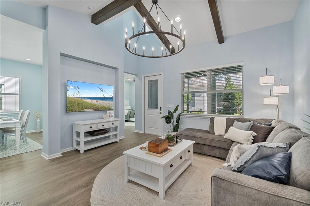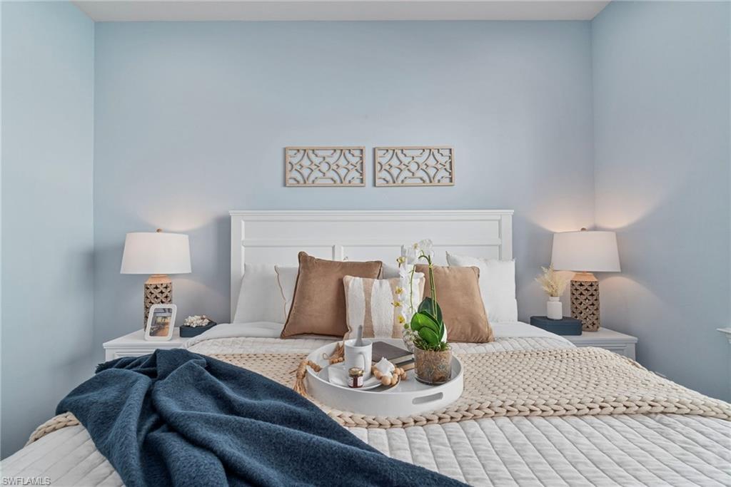 Step into tropical COASTAL ELEGANCE with this attractively FURNISHED u201cSanibel Cottageu201d u2014 an inviting, quiet retreat featuring 2 bedrooms, 2 full upgraded tile baths, and a spacious 2-car garage u2014 all complimented by soft grey blue custom cabinetry throughout. Stylish ash wood look plank flooring flows throughout the main living areas and complemented by the tike: from the warm sand & cream tone stone, modern large format tile and highlights with sparkling mosaic glass tile in both bathrooms. A seamless blend of comfort and tasteful coastal sophistication. The open gourmet kitchen shines with stunning white quartz countertops, nearly never used stainless-steel appliances, high volume ceilings for drama and an open airy layout perfect for entertaining friends and family. WITH FURNISHINGS and curated DECOR CONVEYING - the investment or snowbird value exceeds other options. The result u2014u2014 an enhanced modern coastal cottage feel that delivers a warm, relaxed, and beautifully polished atmosphere for your perfect piece of SWFL paradise!Beyond the front door, residents enjoy an unparalleled lifestyle within a secure, meticulously maintained gated community inspired by Mintou2019s award-winning coastal architecture. Indulge in and ABUNDANCE in RESORT-STYLE AMENITIES including a state-of-the-art clubhouse, fitness center, and both lap and resort pools. Outdoor enthusiasts will love access to pickleball, tennis, kayaking, paddle boarding, and over 8 miles of scenic nature trails and waterways. After a day of adventure, unwind at the EXCLUSIVE Overlook Bar & Grill RESTAURANT while taking in breathtaking views. All of this is just minutes from pristine beaches, 5th Avenue, and exceptional diningu2014offering the perfect blend of luxury, leisure, and convenience.THIS is both SERENE AND ACTIVE nature preserve living without sacrifice!