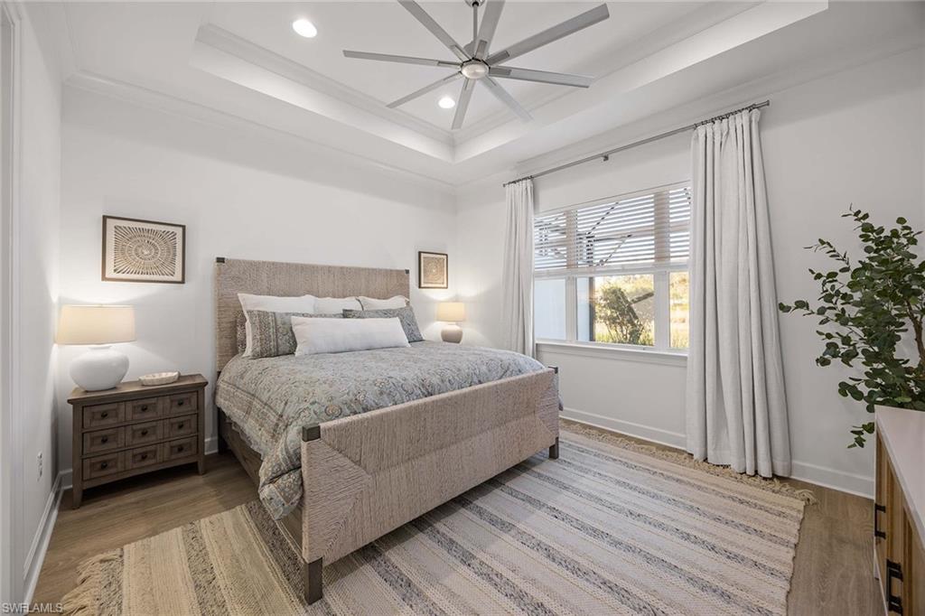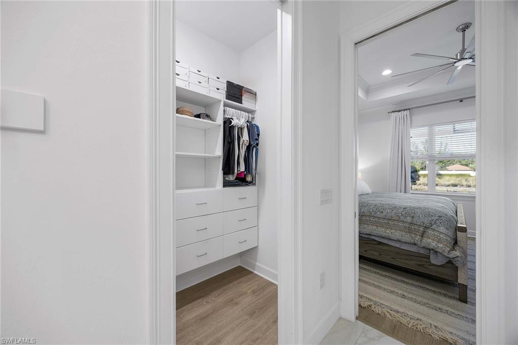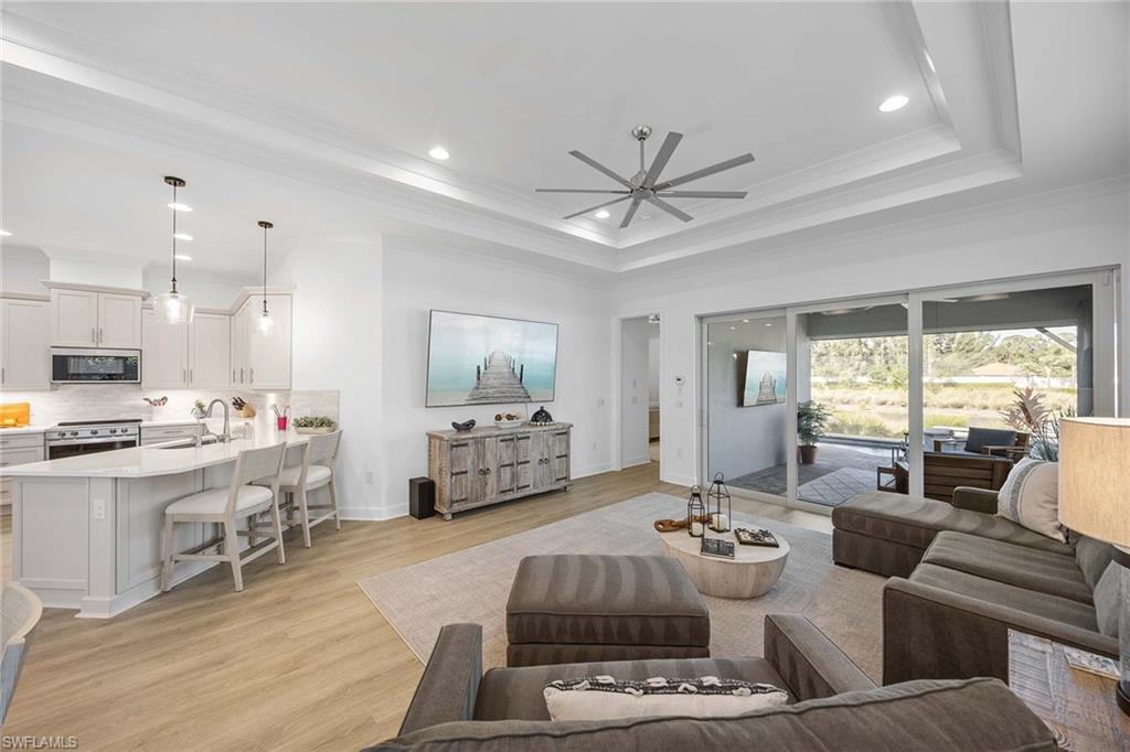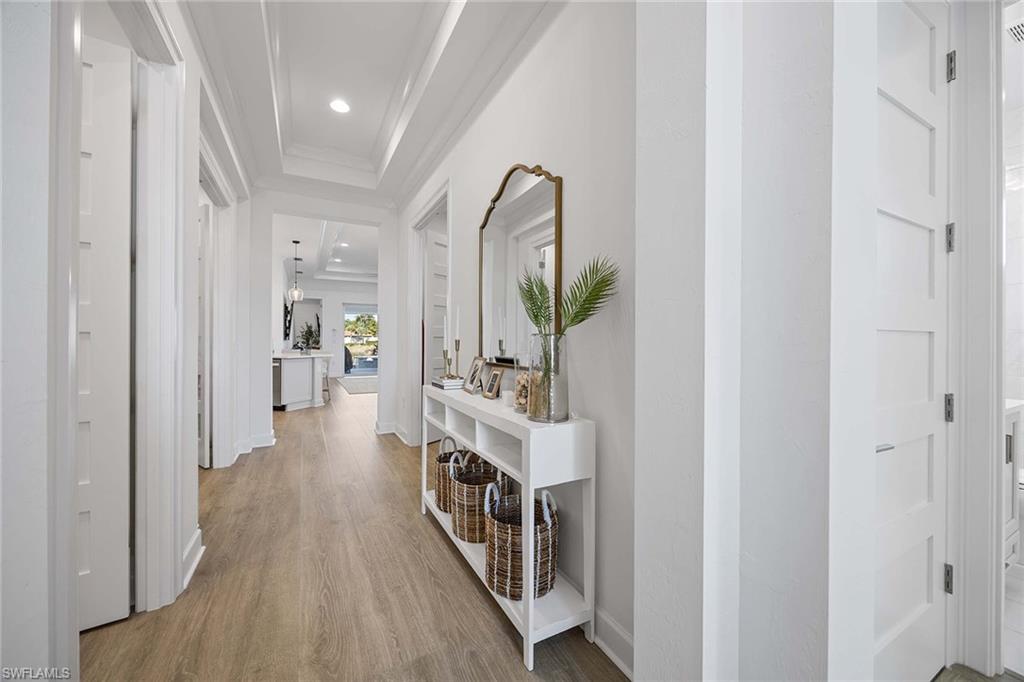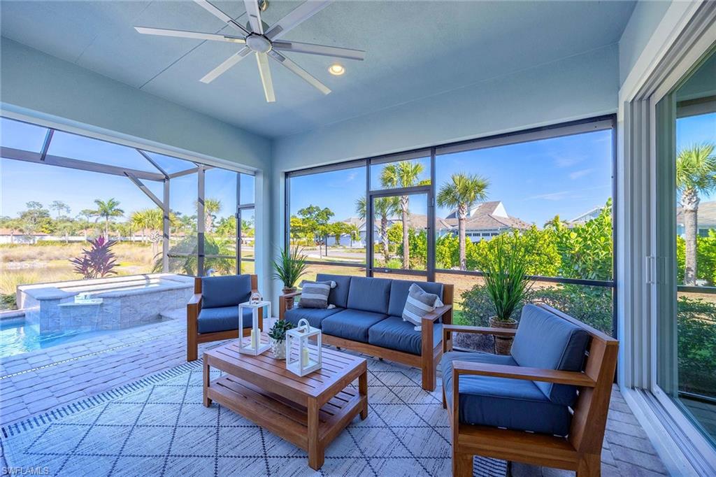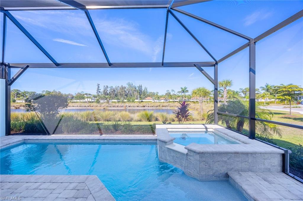 This upgraded Frezia villa offers a wide lake view in The Isles of Collier Preserve. Stunning coastal contemporary home features three bedrooms, two baths plus a den, with soaring ceilings ranging from 10 to 11 feet, accented by elegant crown molding. The home showcases impact-resistant glass, upgraded landscaping with LED lighting and a gourmet kitchen complete with upgraded cabinetry, quartz countertops and under-cabinet lighting. The laundry room includes upper cabinets and matching quartz countertops. Additional highlights include custom window blinds, a spacious primary bath and custom closets in the primary suite. Notable upgrades continue throughout the home with a water softener and reverse-osmosis water filtration system, upgraded lighting, a custom entry feature wall and an air-conditioned garage with epoxy flooring. The saltwater pool and spa are enhanced with auto-fill functionality, while Storm Smart hurricane shutters and a security and camera system provide peace of mind. Surrounded by 2,400 acres of pristine natural preserve, residents enjoy an exceptional lifestyle with resort-style amenities including six tennis courts, 14 pickleball courts, four bocce courts, a lap pool, a resort pool with the Overlook Bar & Grill, seven-plus miles of recreational and biking trails, paddleboarding and kayaking, a dog park, and a state-of-the-art fitness center with locker rooms and saunas. Ideally just minutes from Old Naples 5th Avenue, offering world-class dining, shopping, theater and Naples, and renowned white sand beaches. Hamilton Yacht Club is also conveniently accessible through back gates of the community.