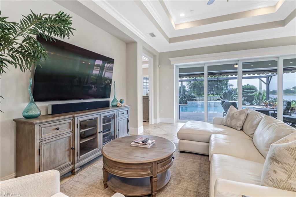 Spend the off-season at Isles of Collier in one of the best located homes with long peaceful water views & abundance of upgrades! This unique turnkey residence is your dream rental home. Well maintained and exquisite, it features 2 bedrooms, plus a den, & 2.5 baths in its professionally designed 2,225 sqft. & a plethora of upgrades & new appliances, including a new A/C unit, new lights, whole house generator, whole house water filter system, central vac, 500-gal LP gas tank, plantation shutters, & a new washer, dryer, refrigerator, oven, microwave, & induction stovetop. Youu2019ll love the expansive outdoor area, w/an outdoor kitchen (& an extra Weber grill), heated saltwater pool & an entrance fountain. The screened lanai has a new electric roll down so you can enjoy your westerly views without the sun in your eyes. When you are enjoying our gorgeous weather, you can also enjoy the 129 ft of water frontage that allows for gorgeous sunsets over the water. Enjoy the growing list of Isles of Collier Preserve amenities, including a beautiful clubhouse, a resort-style swimming pool, tennis & pickleball courts, state-of-the-art fitness equipment, dining, biking, hiking, and walking along the trails.