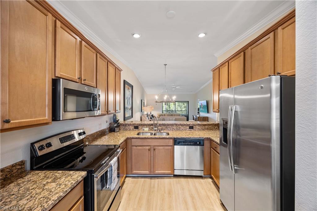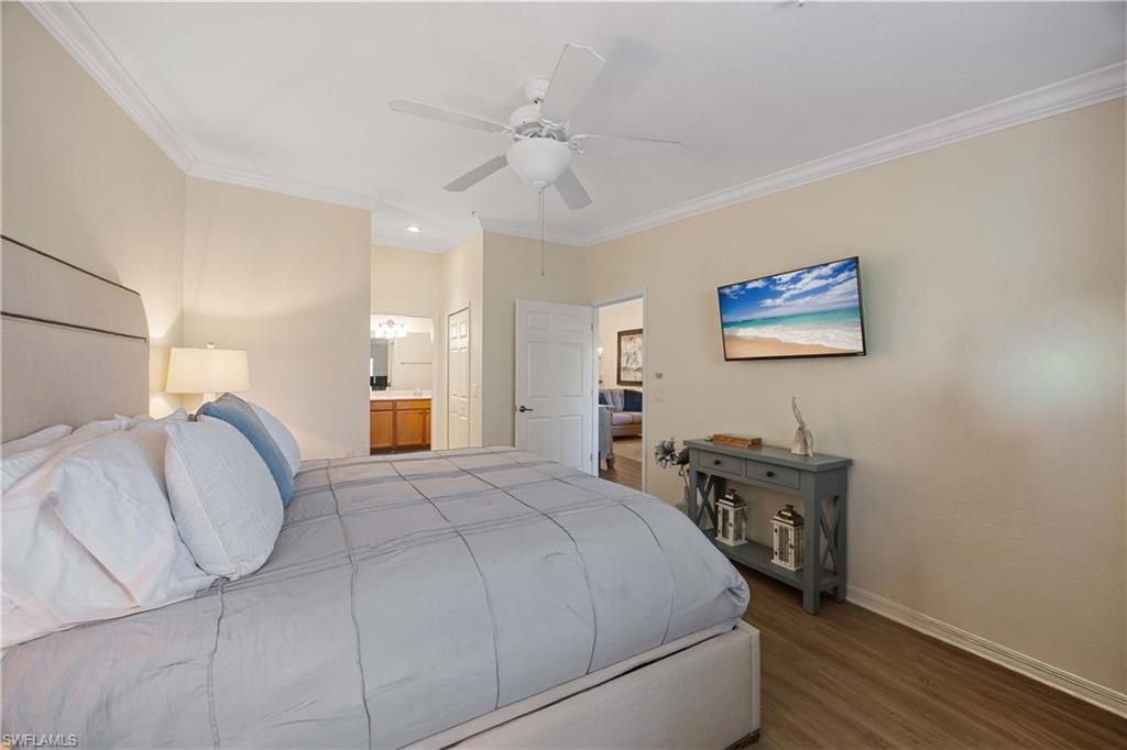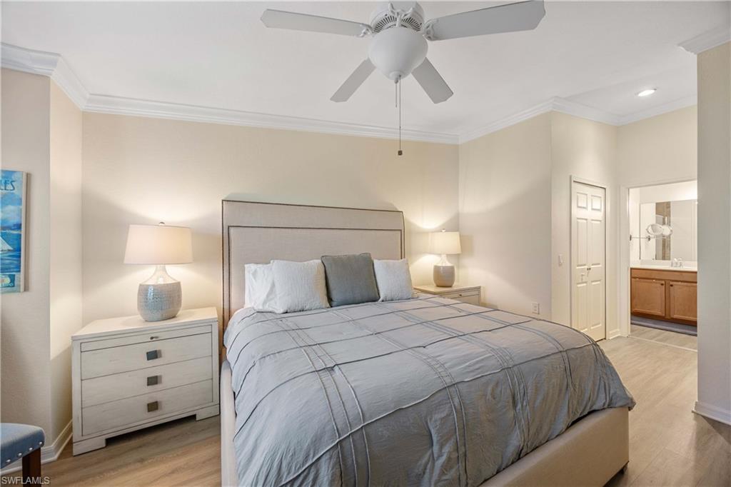 Treviso Bay u2013 Venezia Veranda! Welcome to this beautiful 2-bedroom plus den, 2-bath Bromelia model Veranda with detached 1-car garage located in the sought-after Venezia neighborhood of Treviso Bay. This non-golf unit is the perfect opportunity to enjoy the resort lifestyle without the golf membership. This 2nd/top floor home features vinyl flooring throughout the main living areas and bedrooms, providing both style and easy maintenance. Both the front and rear lanais are finished with tile flooring, ideal for relaxing or entertaining while enjoying the Florida lifestyle. The versatile den offers space for a home office, media room, or guest accommodations, adding to the homeu2019s flexibility. The Veranda I Board enforces hot water tank replacement at year 10 - hot water tank new in 2025. All plastic valves have been replaced with metal valves and steel braided supply lines with metal connections. Immediately adjacent to the front of the home is the Venezia community pool which provides a perfect place to quietly enjoy the Southwest Florida sunshine. Treviso Bay is renowned for its amenities-rich resort living, including a resort-style pool, fitness center, spa, tennis, pickleball, bocce, on-site dining, and moreu2014all surrounded by lush landscaping and serene lake views. Venezia offers a tranquil setting with convenient access to everything Treviso Bay has to offer. Donu2019t miss your chance to own a stylish veranda in one of Naplesu2019 premier communitiesu2014schedule your private showing today! Agents please see the file titled `Furniture` in supplements for information regarding the transfer of personal property.