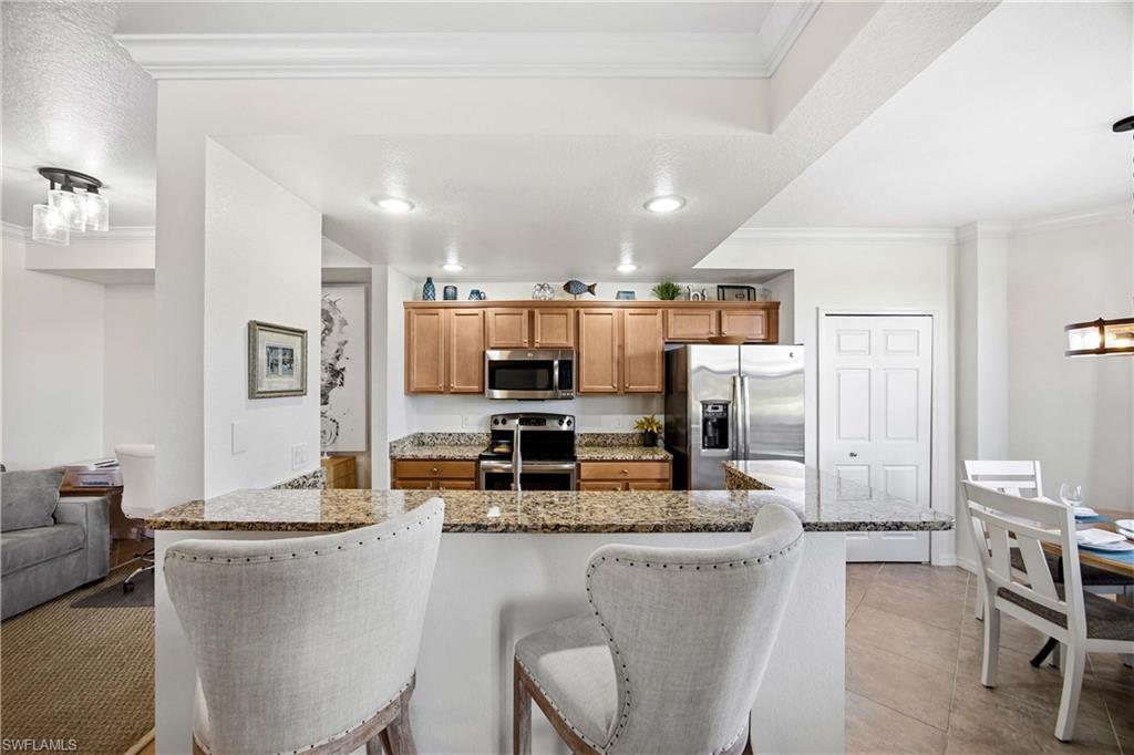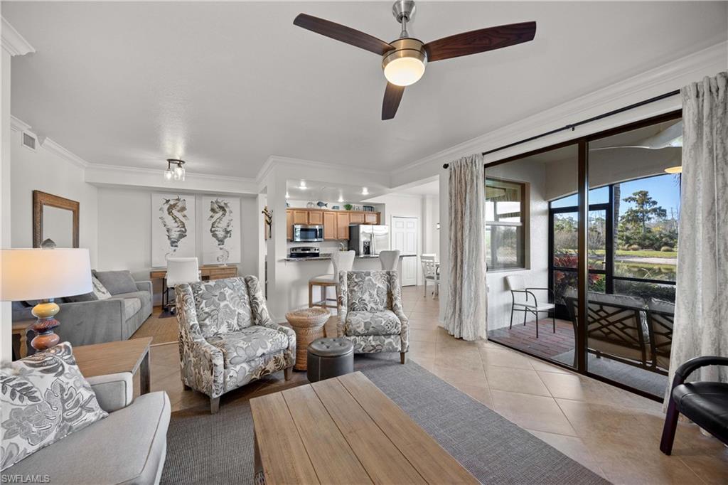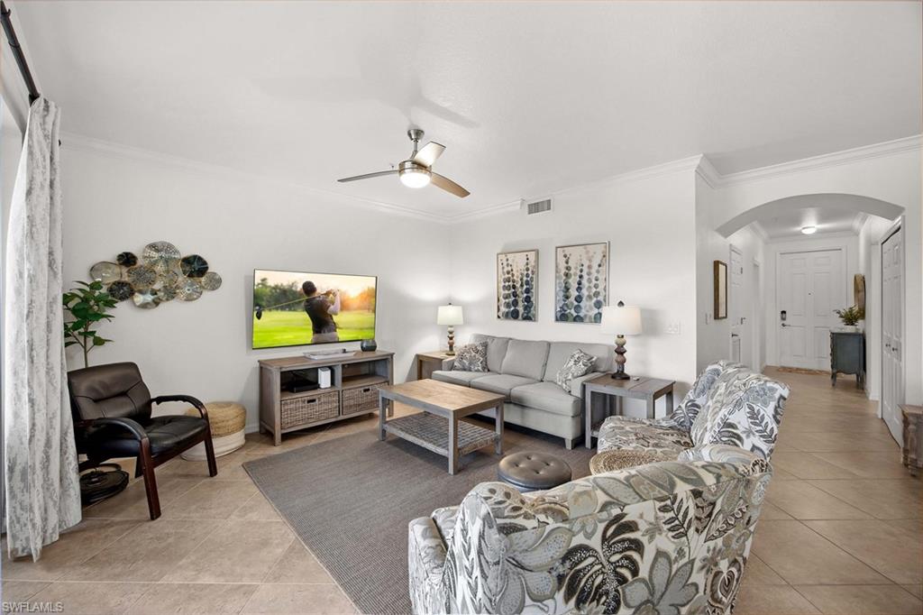 Discover effortless resort-style living in this Bellini-model, 2-bedroom, 2-bath condominium located in the desirable Giaveno neighborhood of Treviso Bay in Naples, Florida. Offered turnkey furnished with tasteful decor and accessories, this first-floor residence is ideal as a full-time home, seasonal retreat, or investment property. The open-concept floor plan features tile flooring throughout the main living areas and carpeted bedrooms for added comfort. The kitchen flows seamlessly into the dining and living spaces, creating a welcoming environment for relaxing or entertaining. Step out onto the lanai and enjoy northwest exposure with tranquil views of the lake and preserve, offering beautiful sunsets and a peaceful, private setting. A standout feature of this property is the deeded TPC Treviso Bay GOLF MEMBERSHIP, granting owners full access to the championship TPC golf courseu2014a rare and highly sought-after benefit that significantly enhances both lifestyle and value. Additional conveniences include a radon mitigation system, deeded storage closet outside the front door and assigned parking in a detached carport, along with the ease of first-floor livingu2014no stairs and quick access to community amenities. Treviso Bay is a premier, gated community known for its world-class amenities, including golf, resort-style pools, fitness center, spa, tennis, pickleball, dining, and an active social calendaru2014all just minutes from downtown Naples beaches, shopping, and dining. Seller changed out all plastic water supply valves with metal connections as required by the condo association and replaced the hot water heater in 2025. This is a fantastic opportunity to own a golf-deeded, turnkey condo in one of Naplesu2019 most popular resort communities. The property has a lease agreement in place for February & March, which must be honored, but will provide immediate income for the new owners.